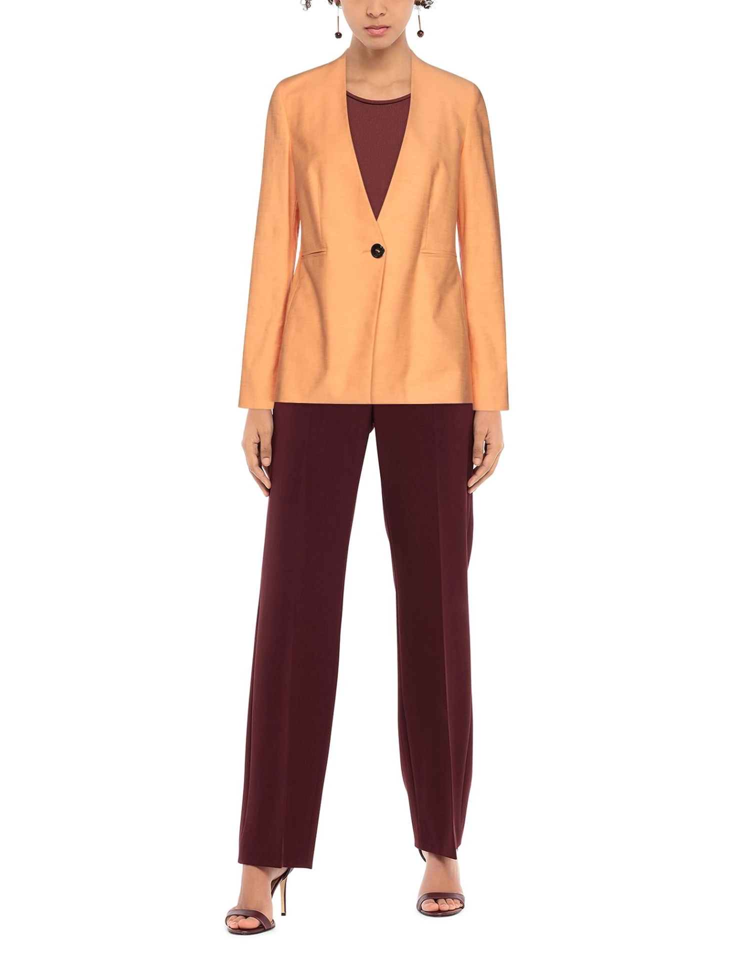 plain weave, no appliqués, solid color, v-neck, single-breasted , long sleeves, fully lined, 1 button, multipockets, with shoulder pad, stretch