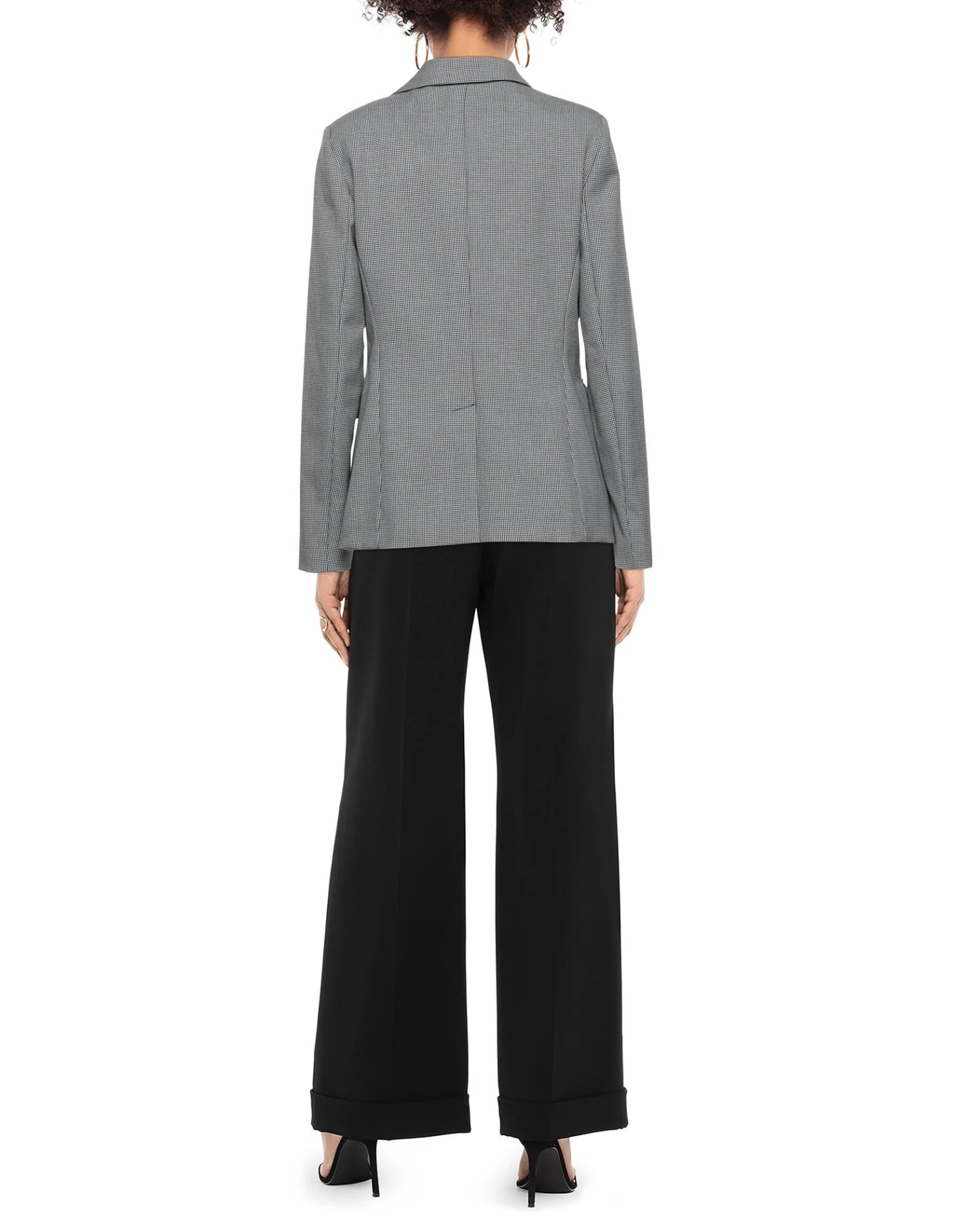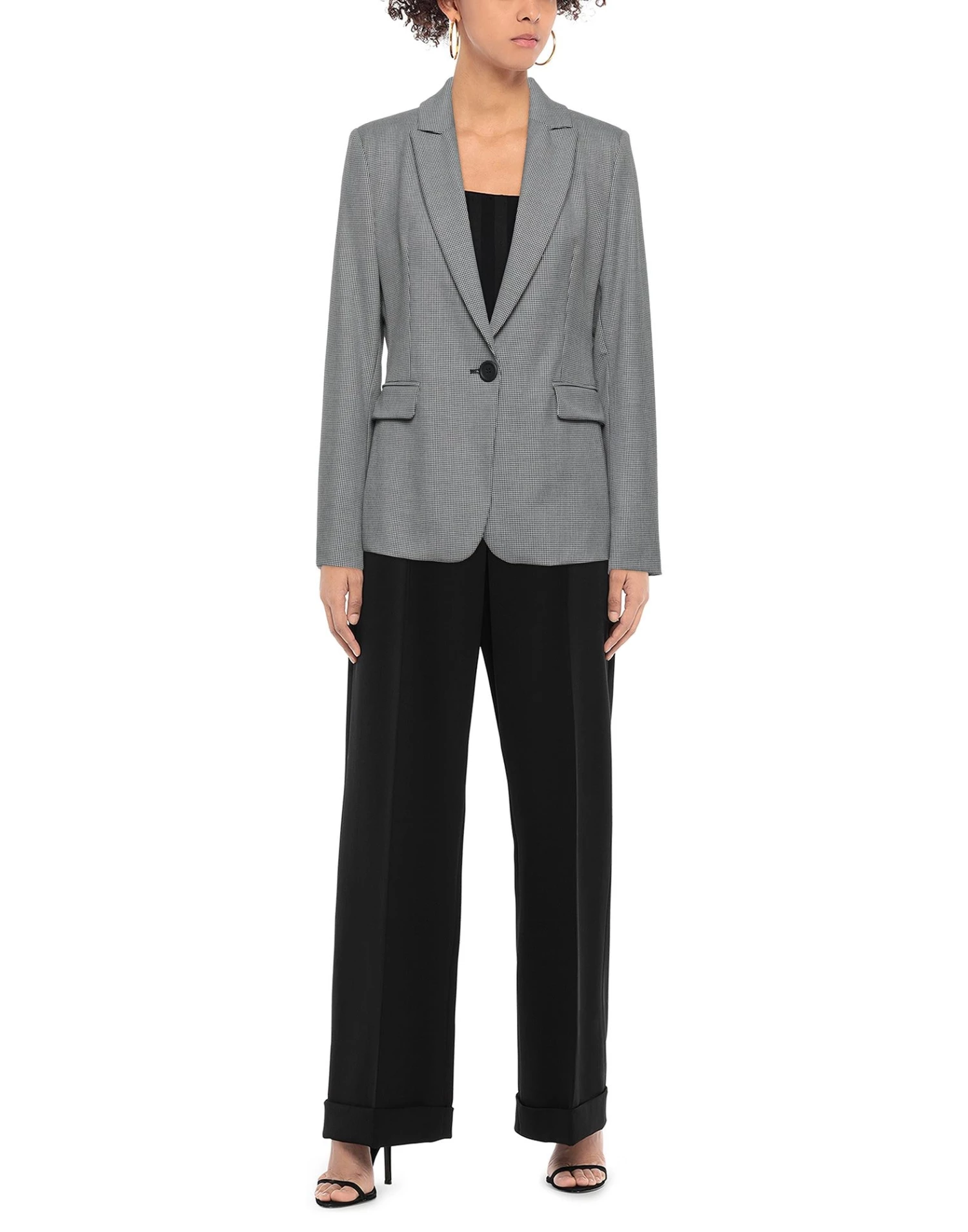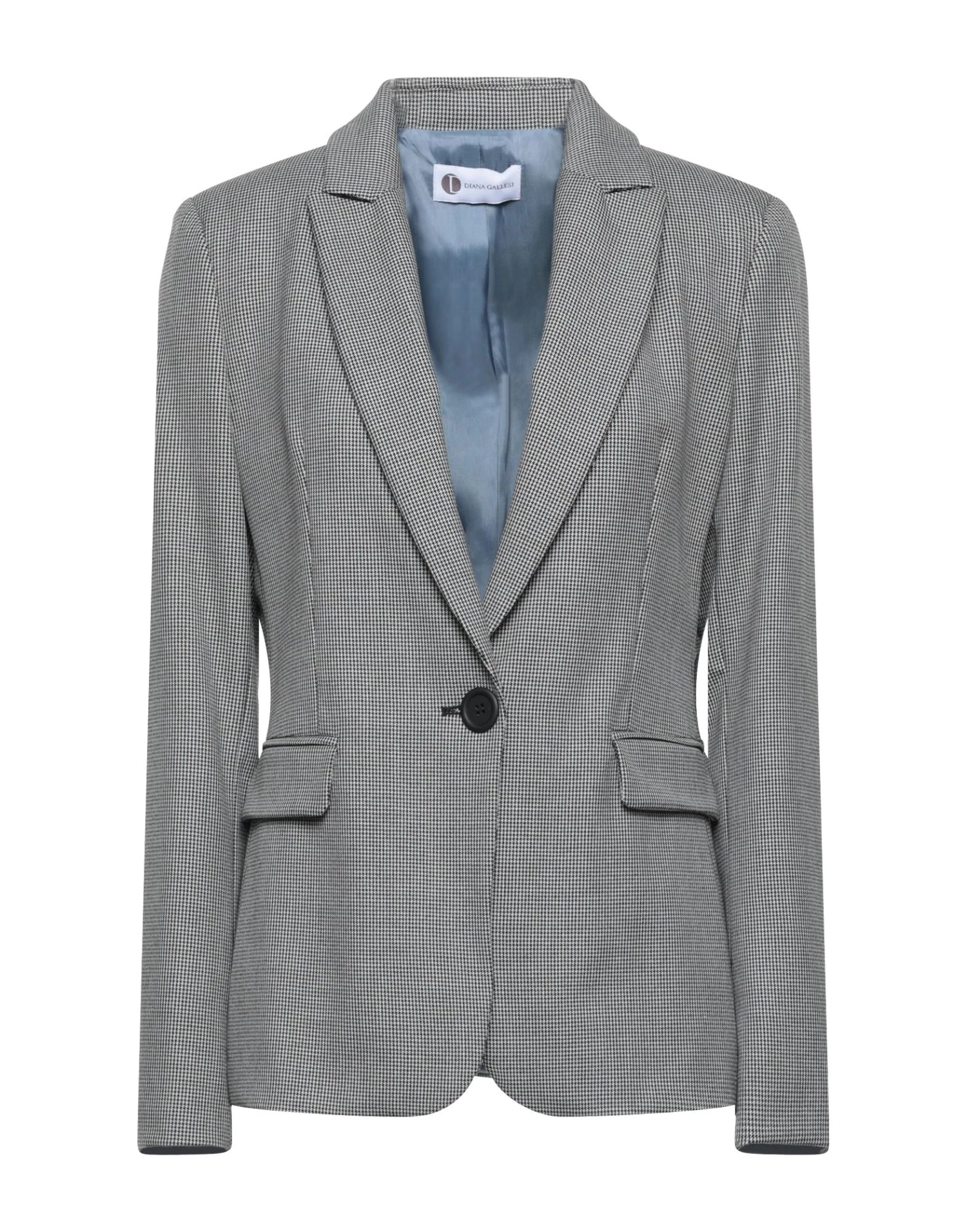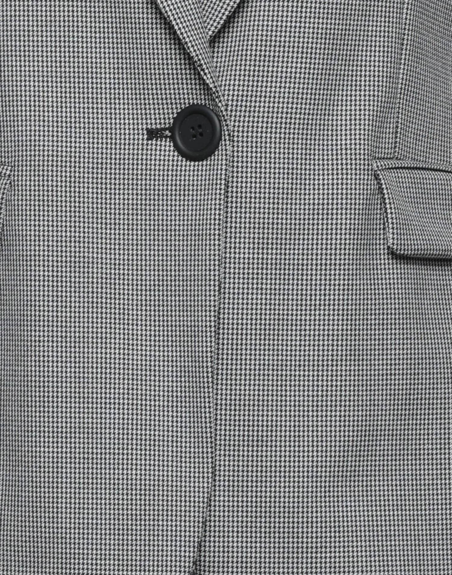 plain weave, no appliqués, houndstooth, lapel collar, single-breasted , long sleeves, fully lined, 1 button, multipockets, pocket with flap, rear slit, with shoulder pad, stretch