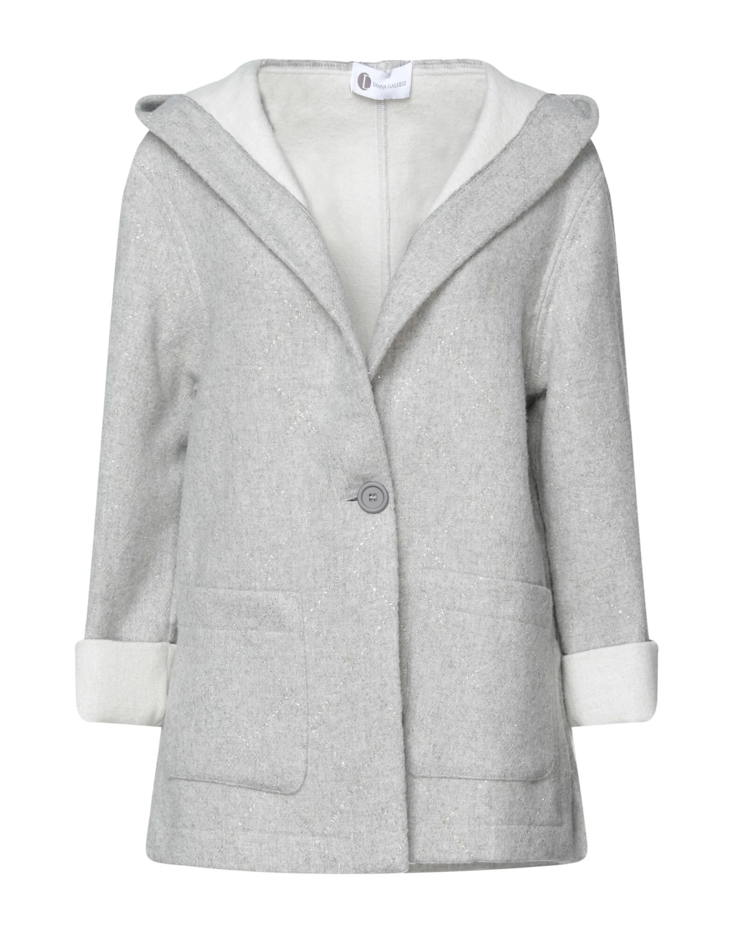 tweed, lamé, geometric design, no appliqués, single-breasted , hooded collar, long sleeves, 1 button, multipockets, unlined