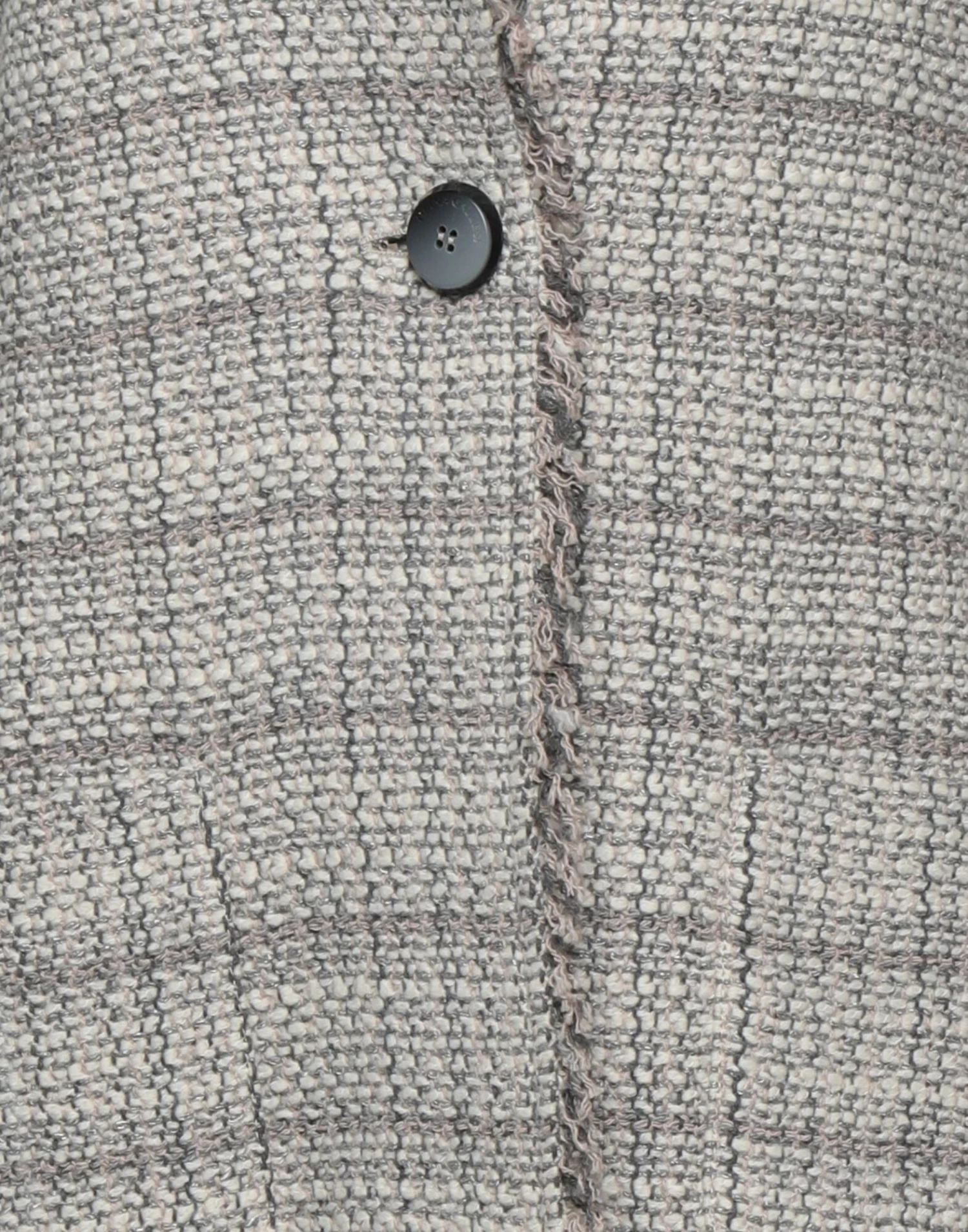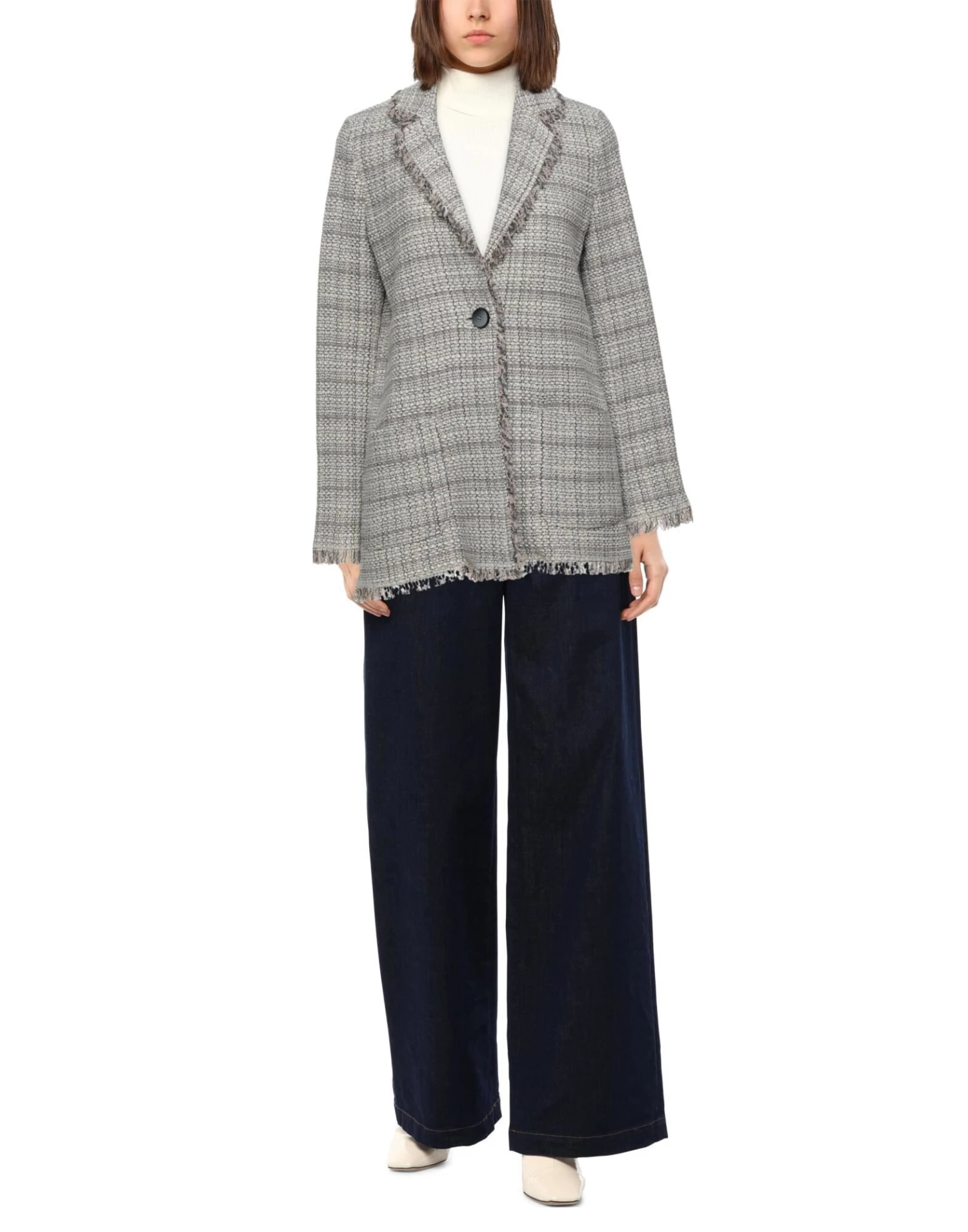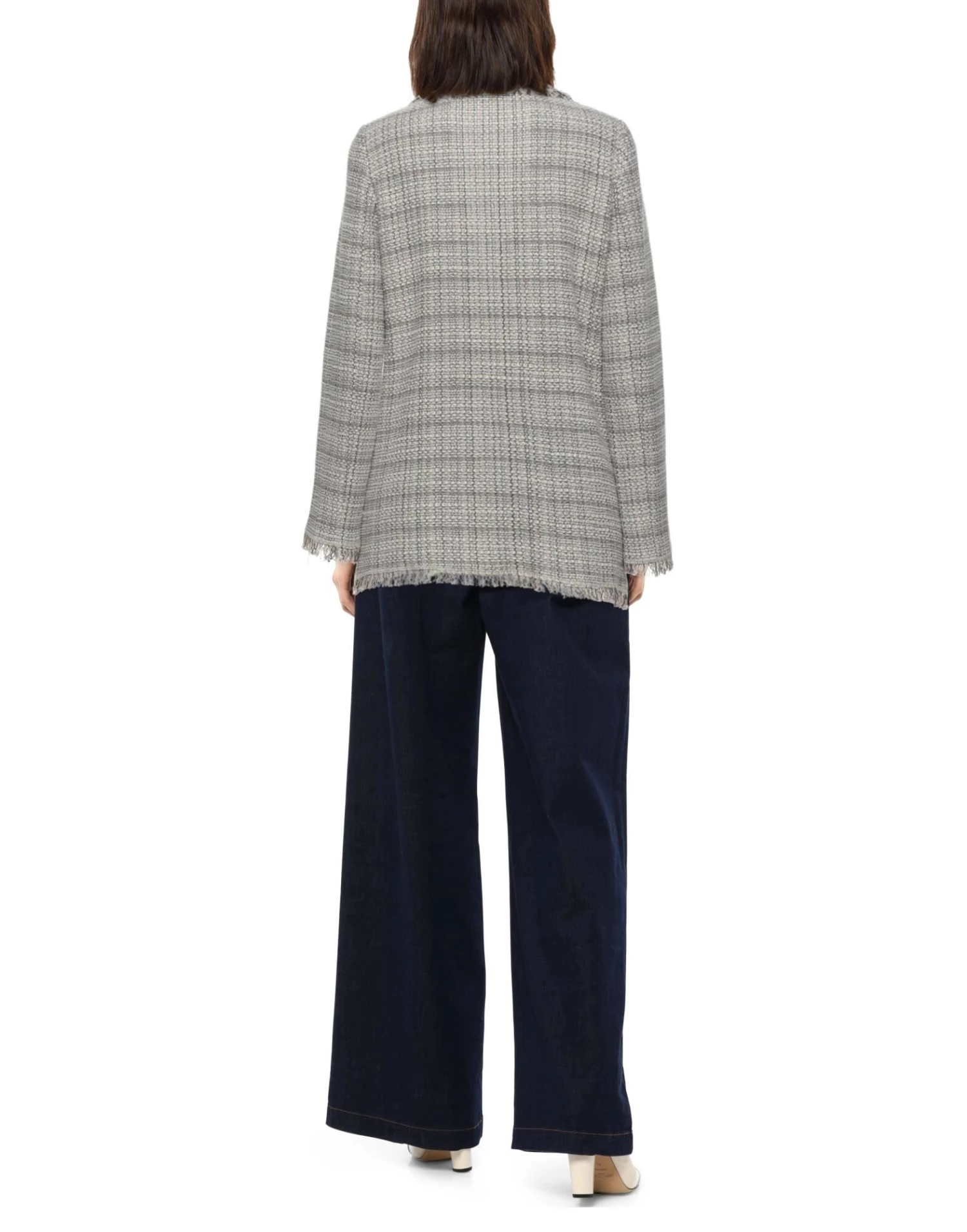 tweed, fringed, multicolor pattern, single-breasted , lapel collar, long sleeves, unlined, button closing, multipockets