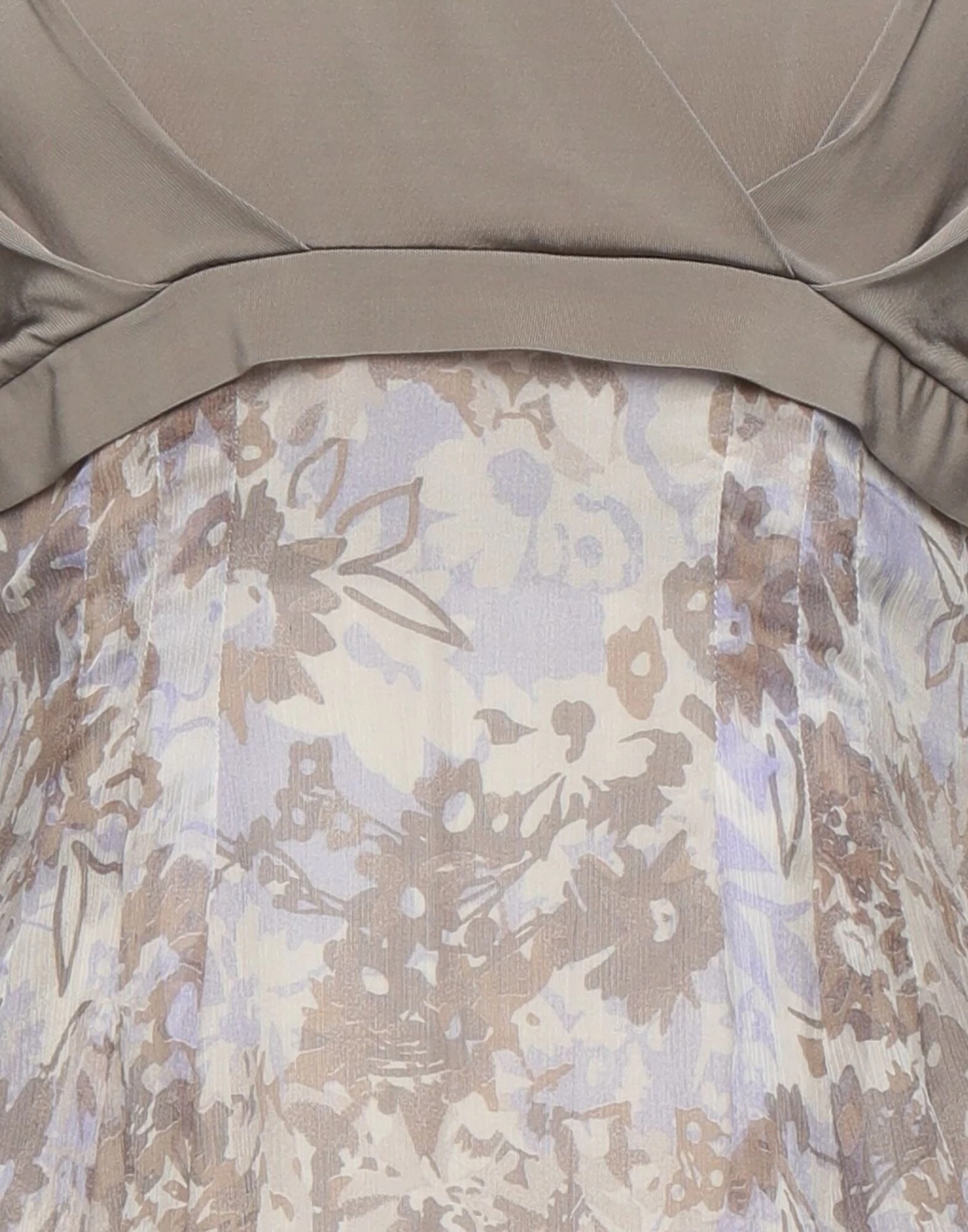 chiffon, synthetic jersey, no appliqués, floral design, v-neck, short sleeves, no pockets