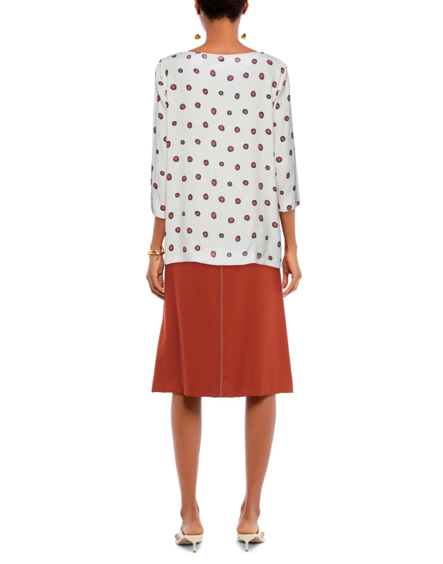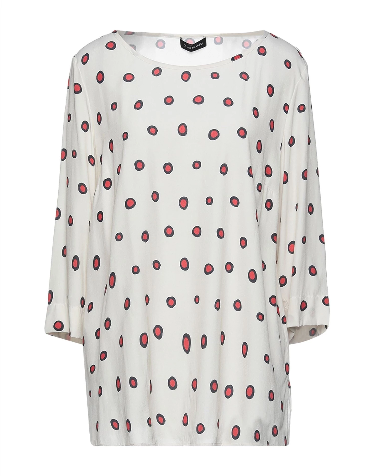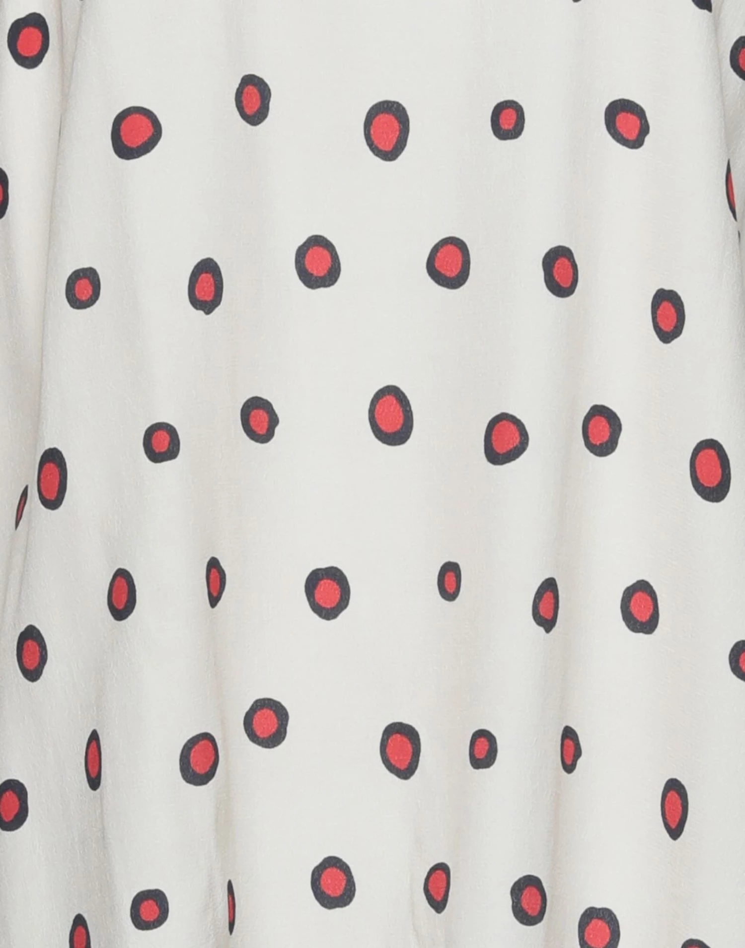 crepe, no appliqués, polka-dot, round collar, 3/4 length sleeves, no pockets