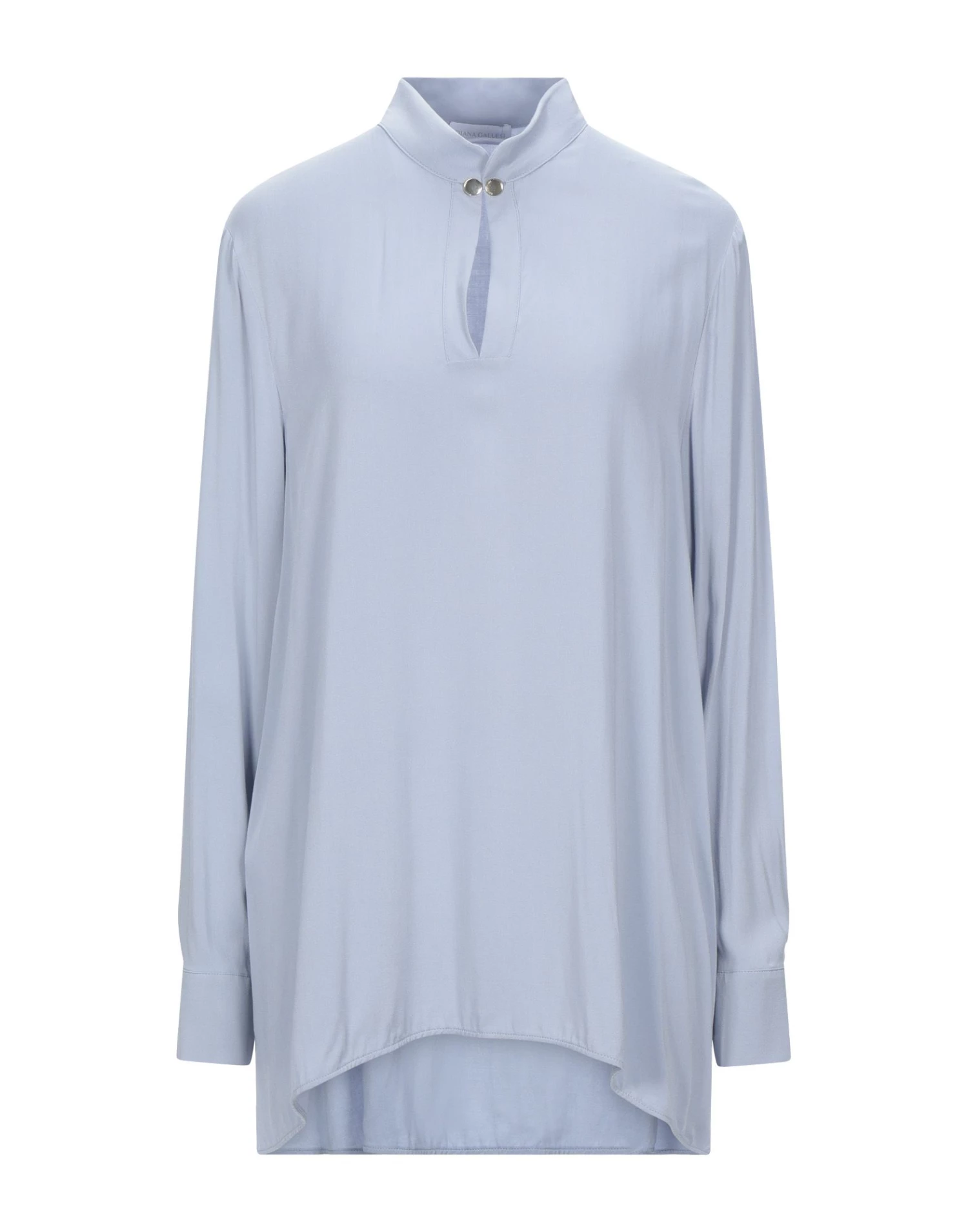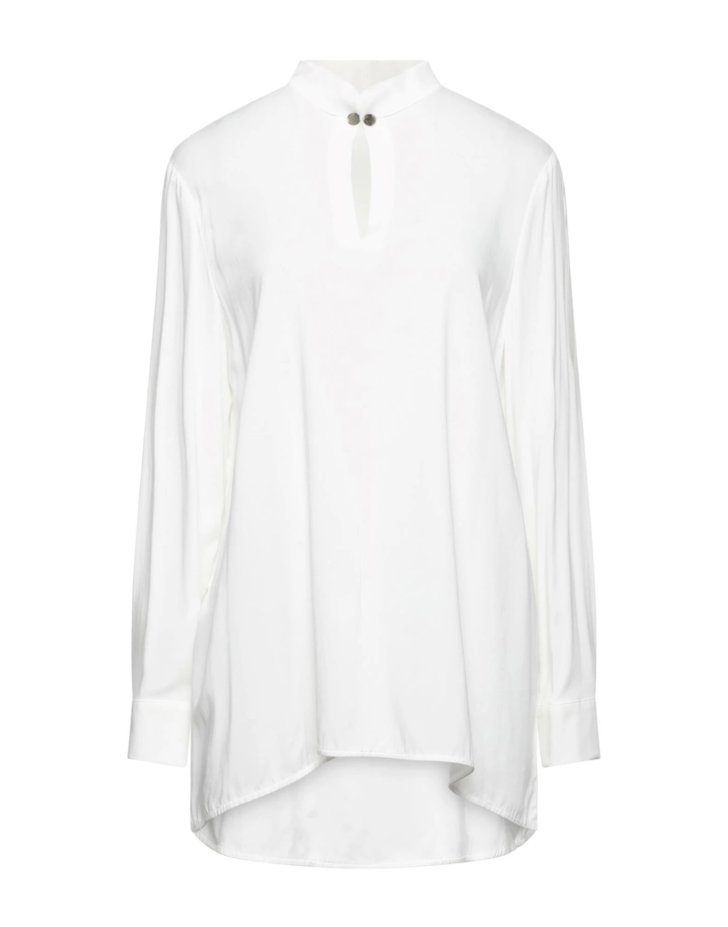 twill, no appliqués, basic solid color, front closure, button closing, long sleeves, buttoned cuffs, mandarin collar, no pockets, stretch