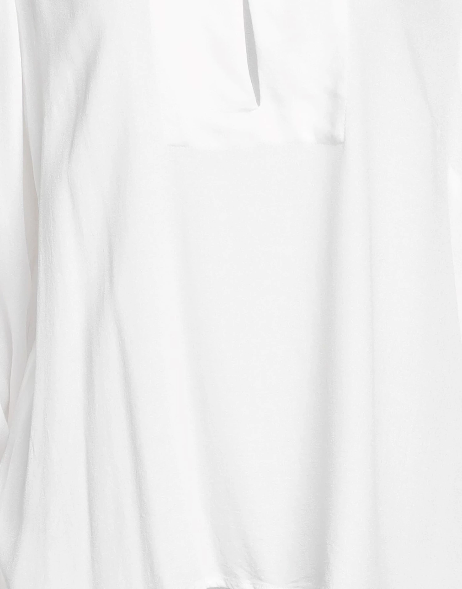 coated fabric, crepe, no appliqués, two-tone, v-neck, long sleeves, no pockets
