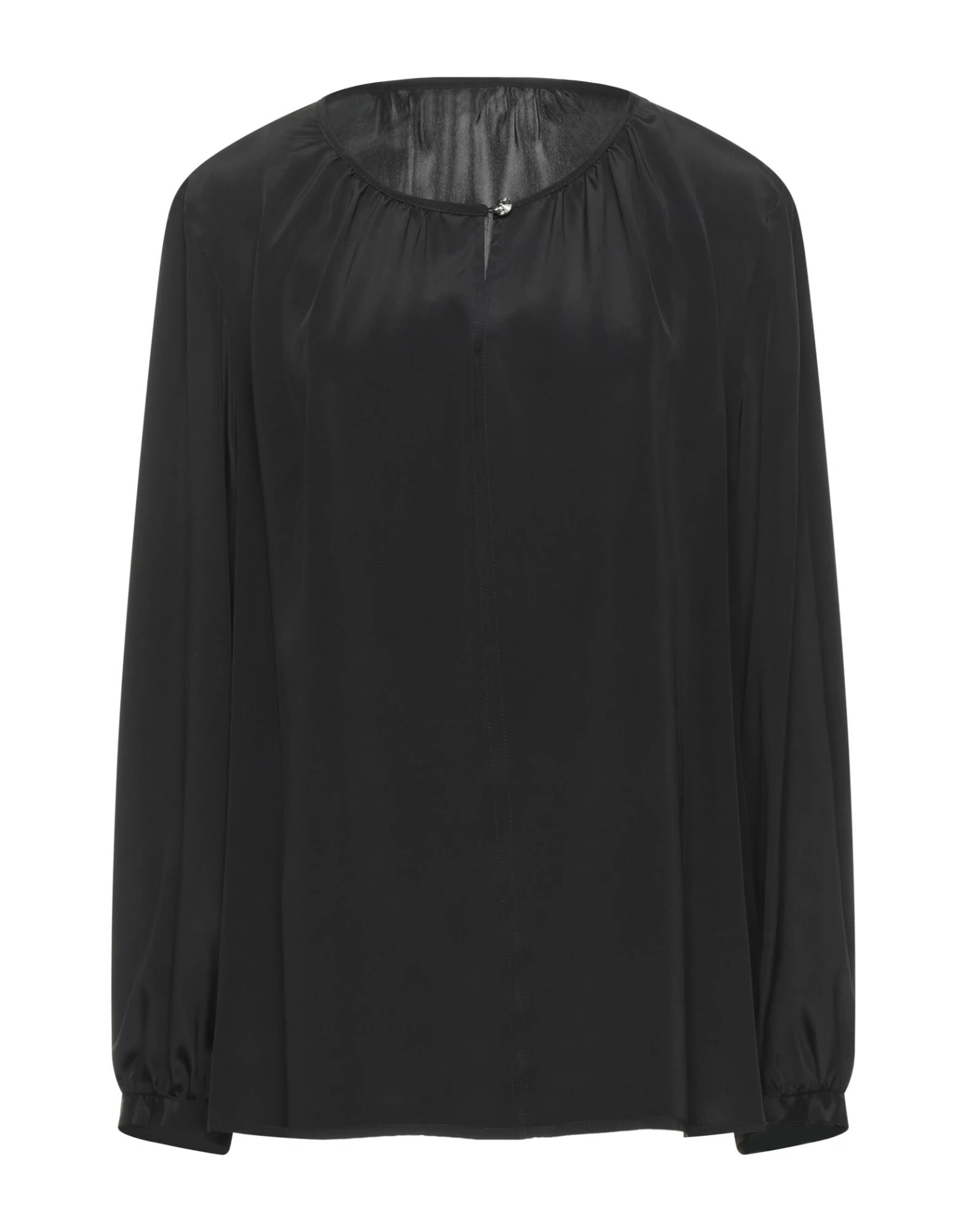 crepe, no appliqués, long sleeves, button closing, solid color, round collar