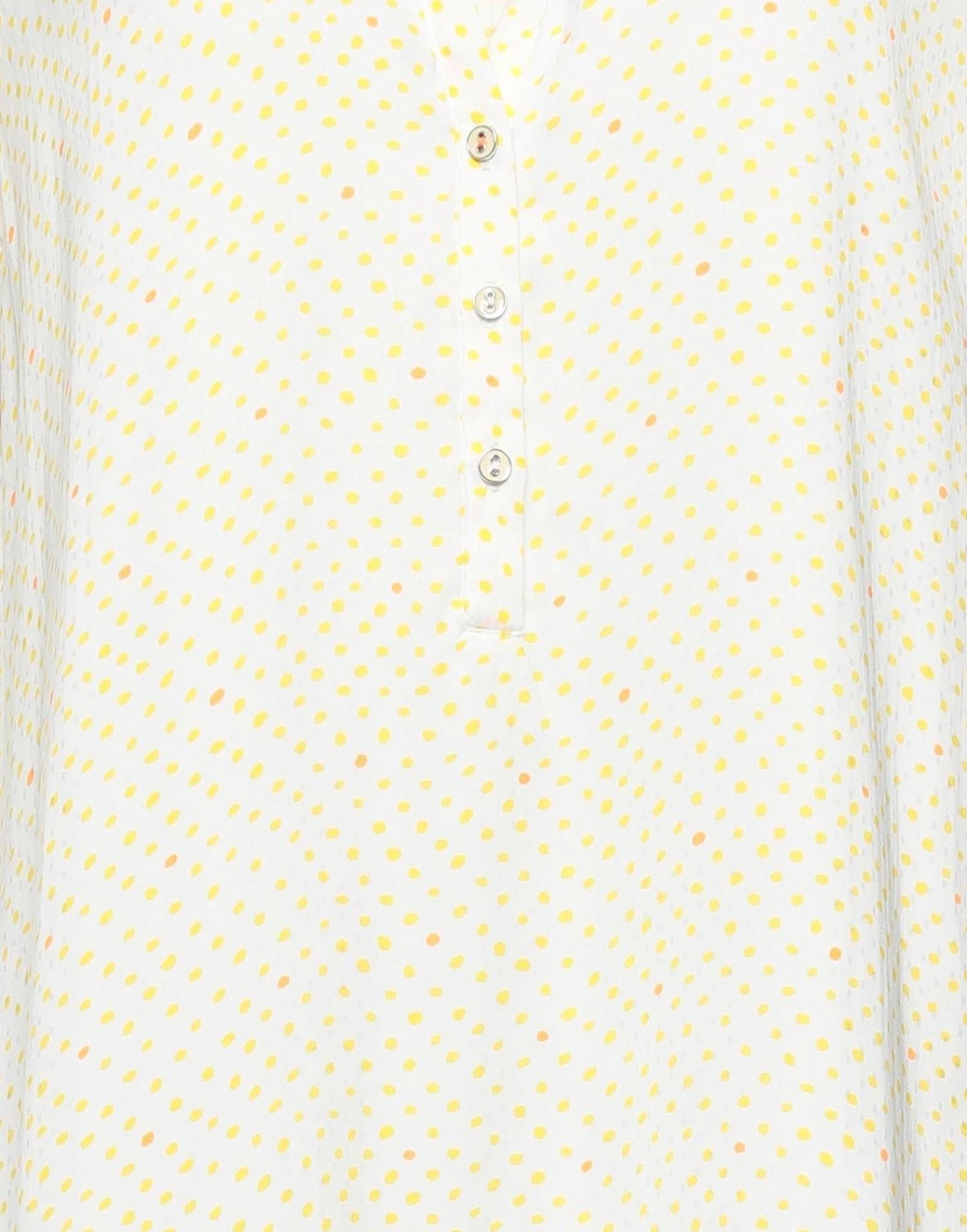 plain weave, no appliqués, polka-dot, v-neck, short sleeves, no pockets