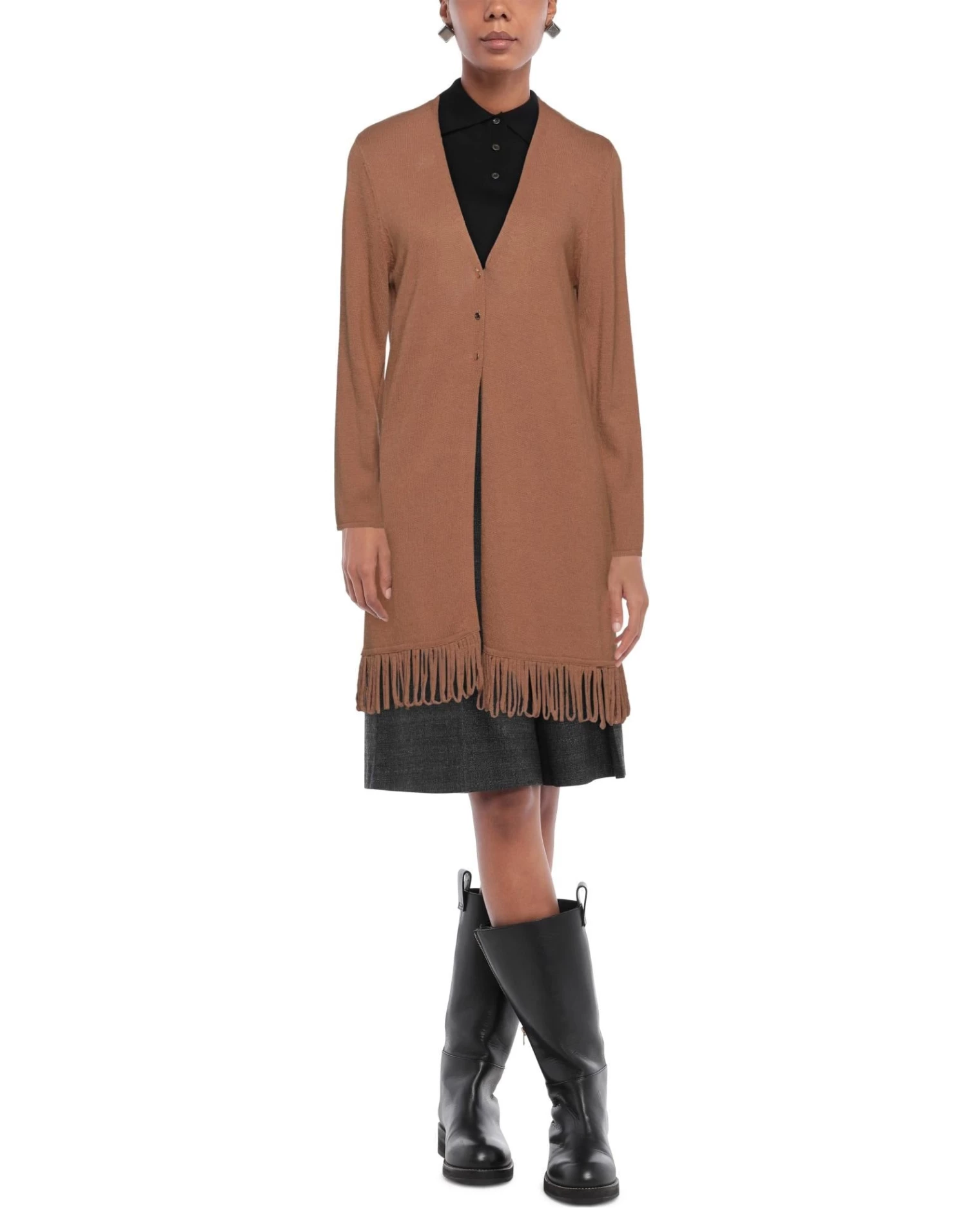 knitted, lightweight knit, fringes, solid color, v-neck, long sleeves, button closing, no pockets