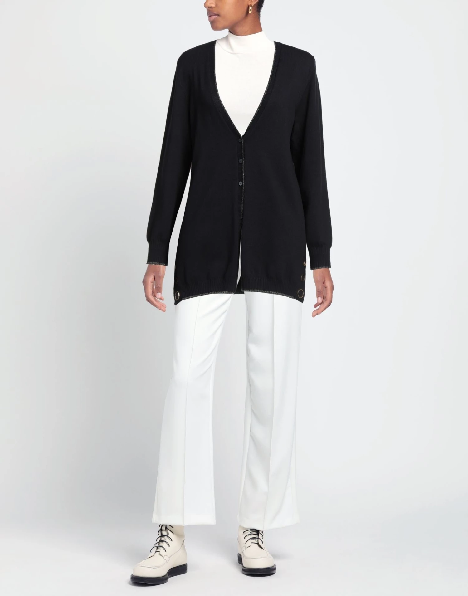 knitted, lamé, no appliqués, solid color, v-neck, long sleeves, button closing, no pockets, lightweight knit