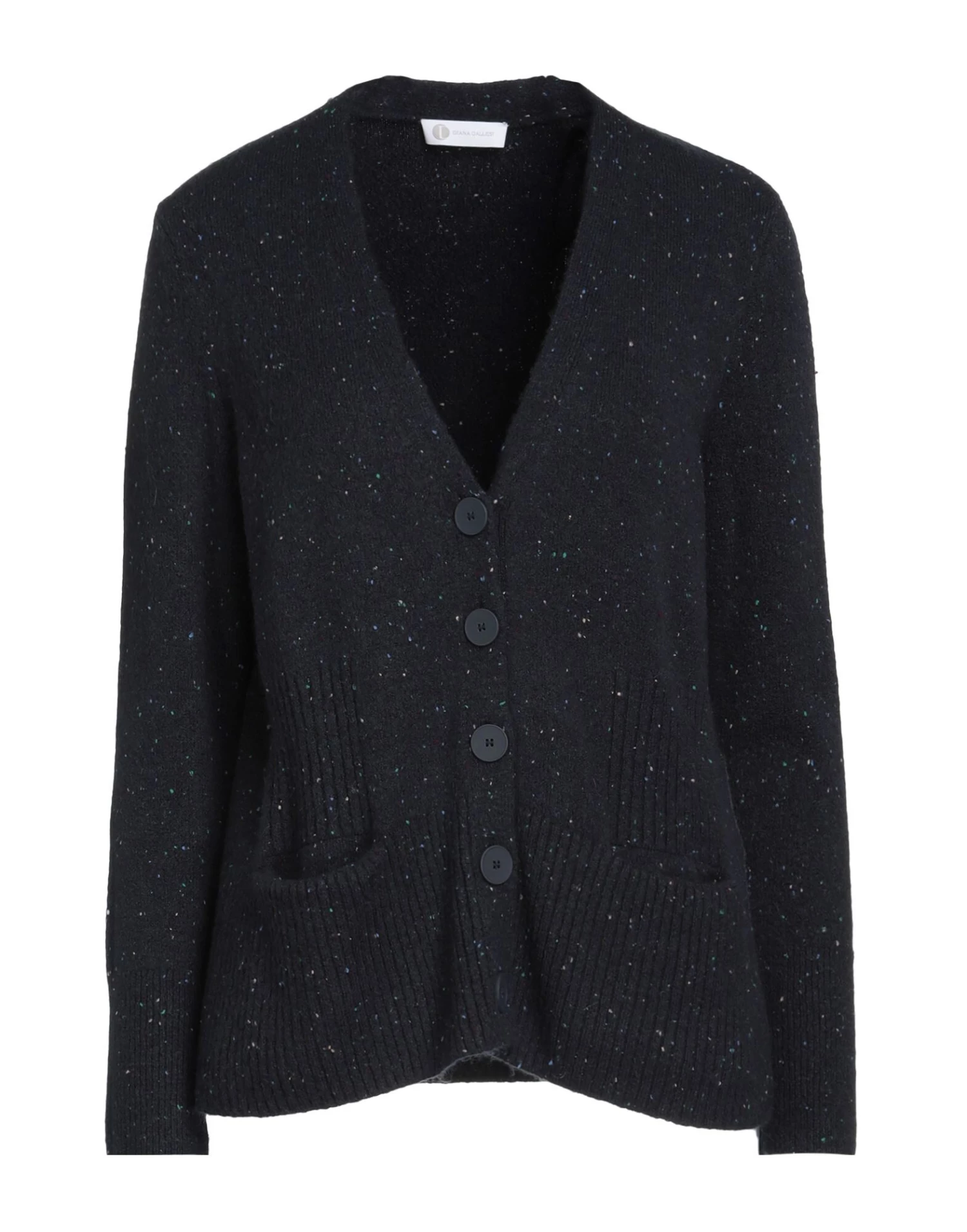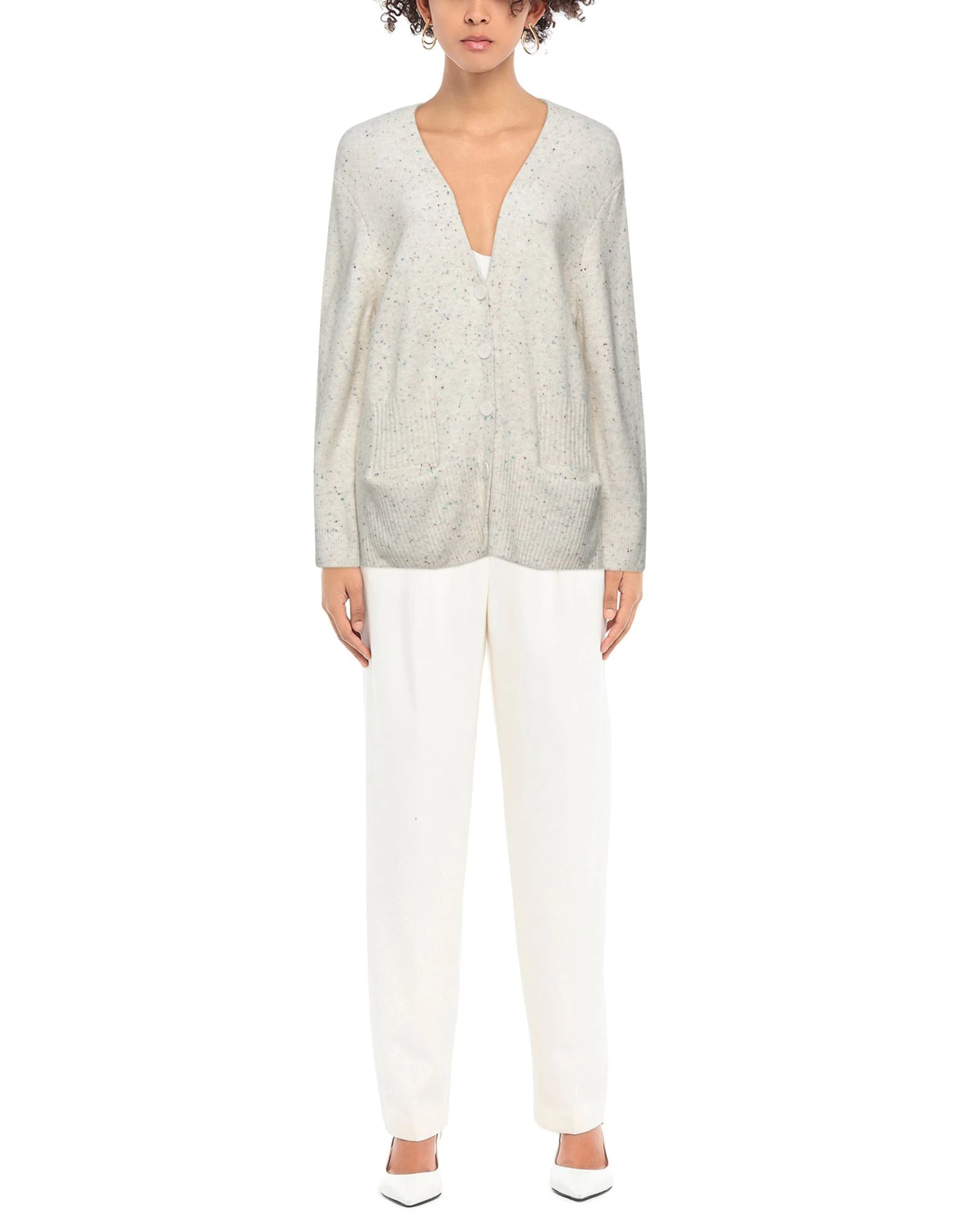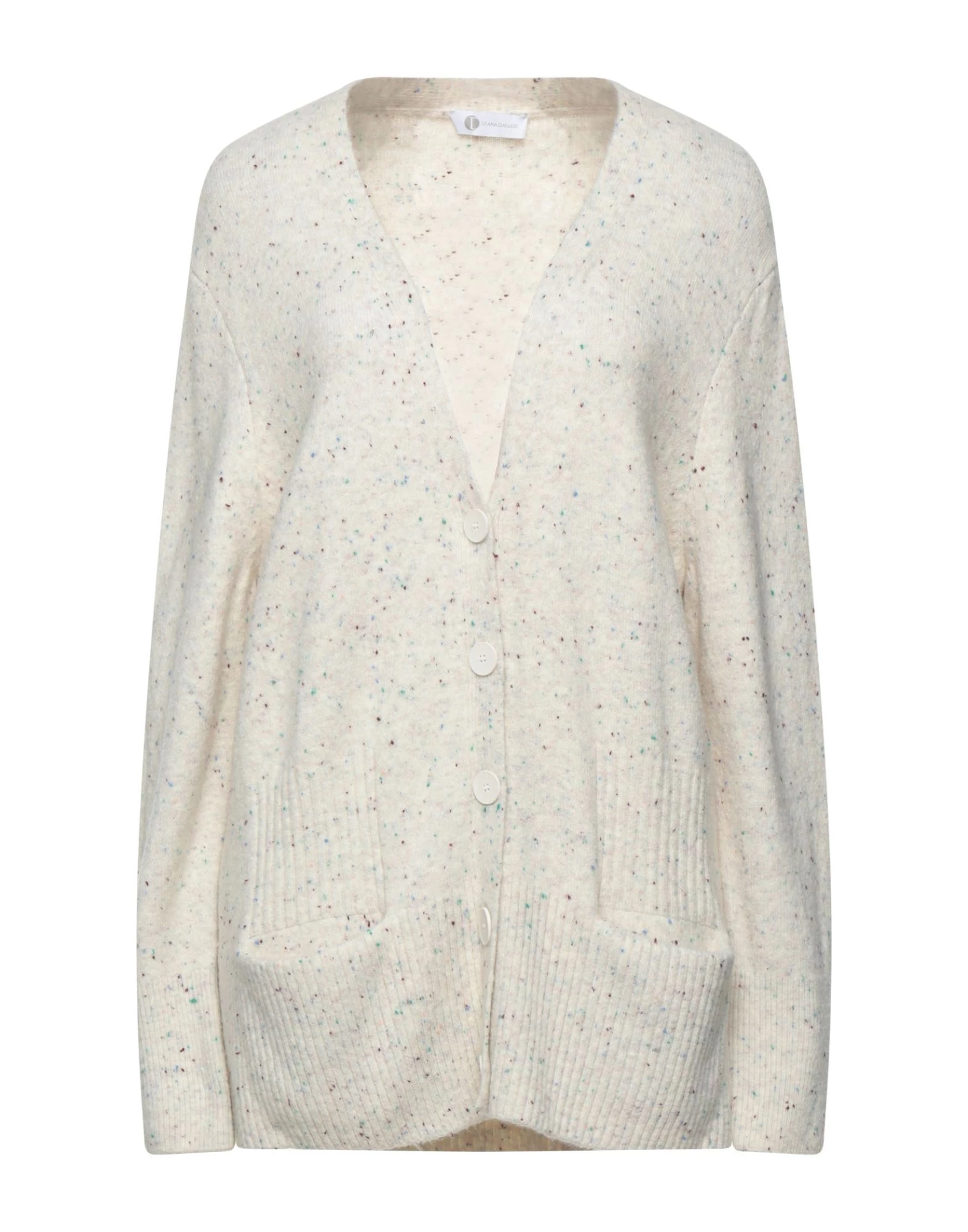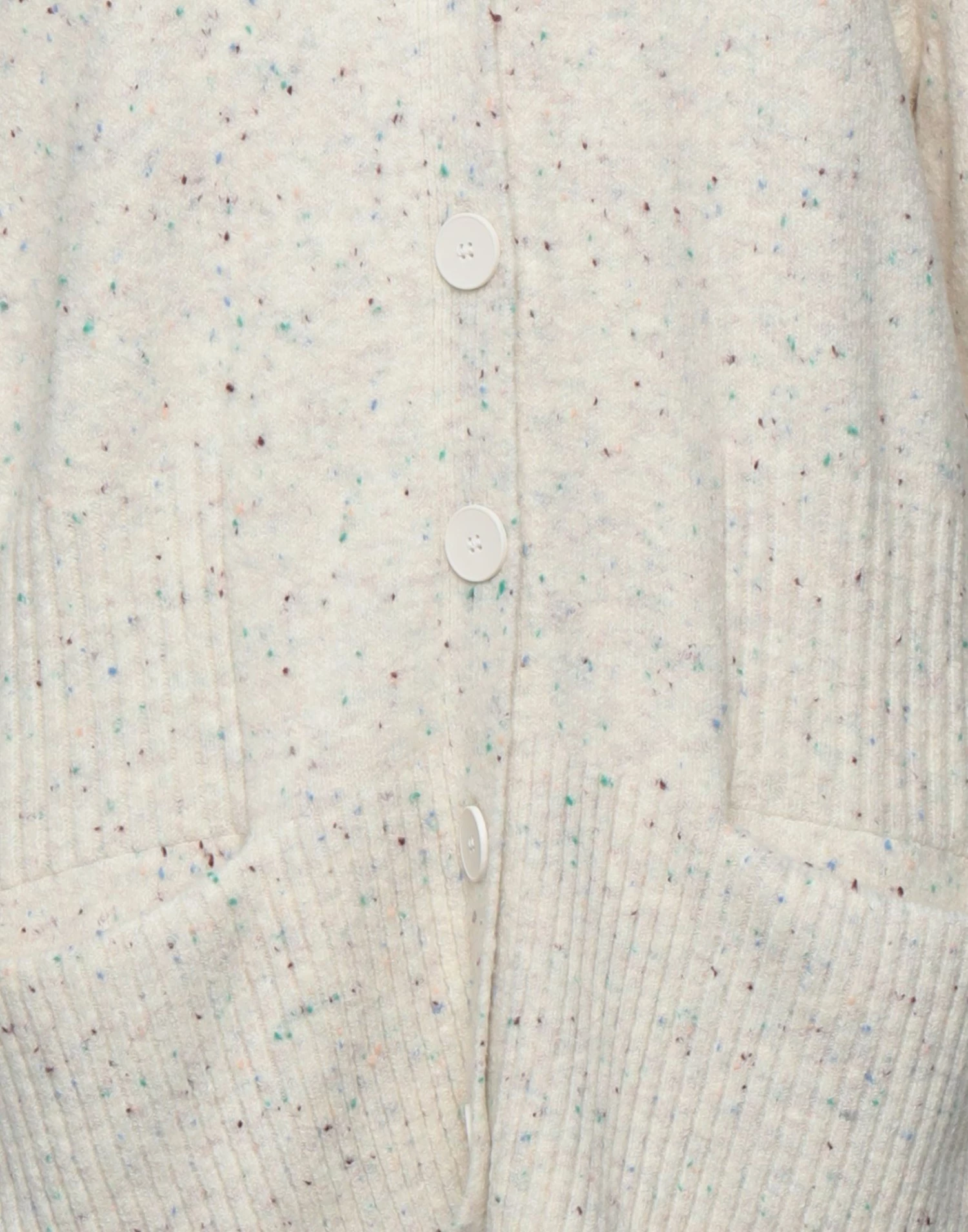 knitted, medium-weight knit, mélange, no appliqués, multicolor pattern, v-neck, long sleeves, button closing, multipockets, stretch