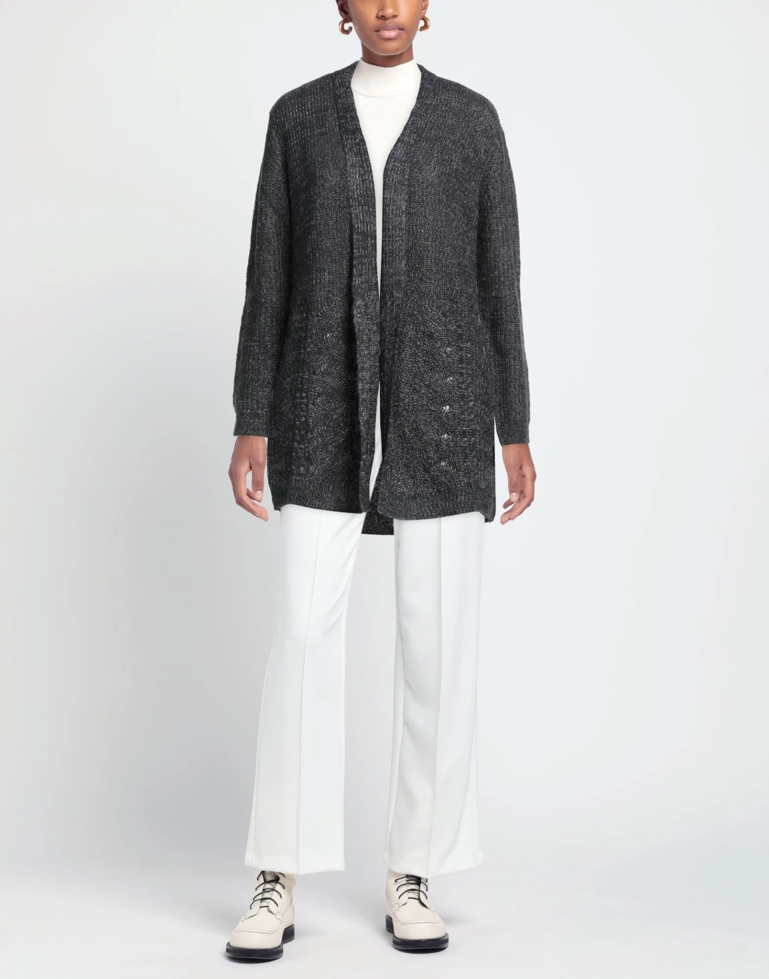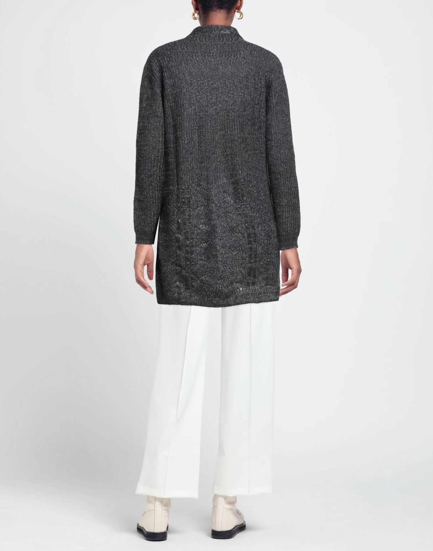 knitted, mélange, lightweight knit, no appliqués, two-tone, deep neckline, long sleeves, no pockets