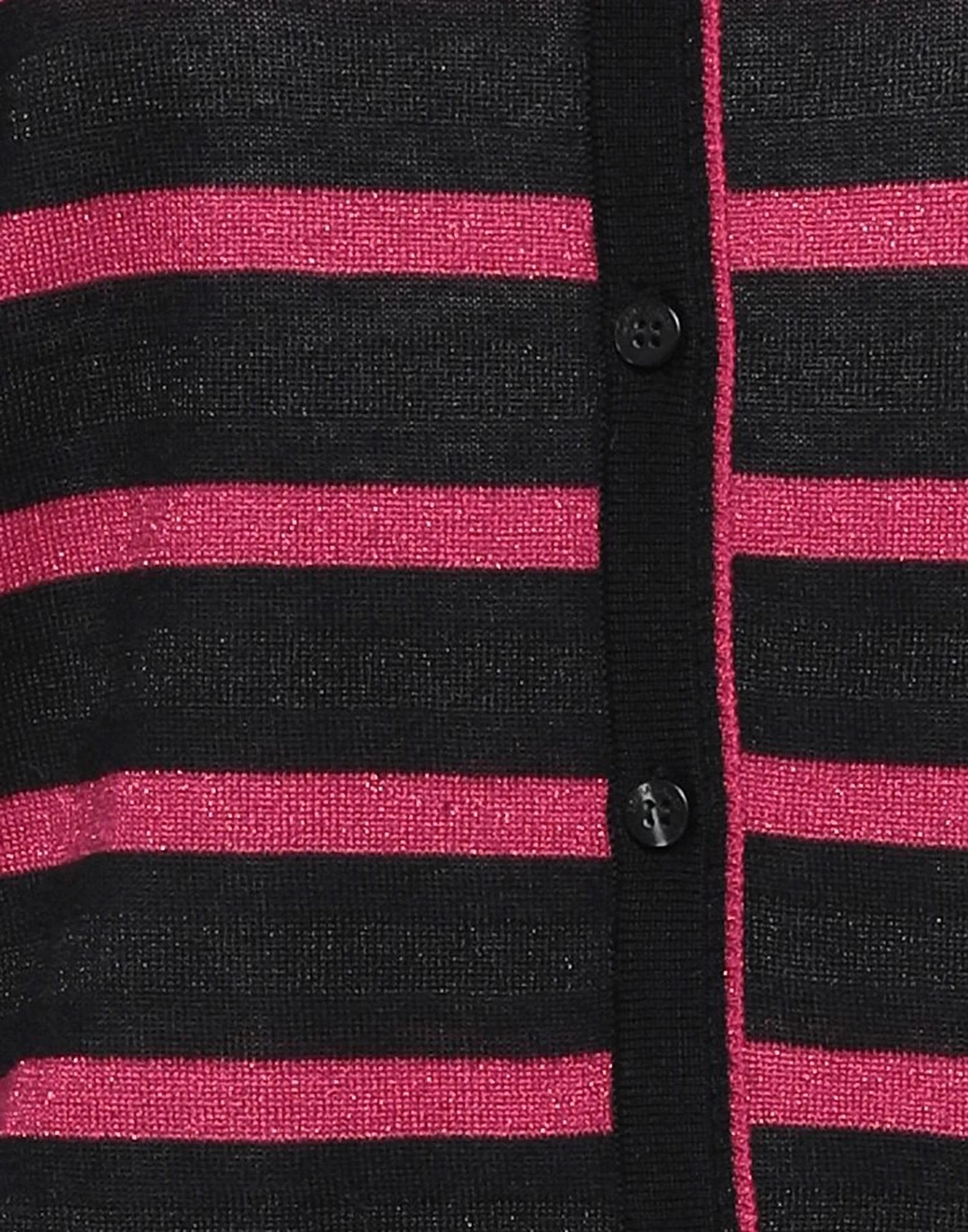 knitted, lamé, lightweight knit, no appliqués, stripes, round collar, long sleeves, button closing, no pockets