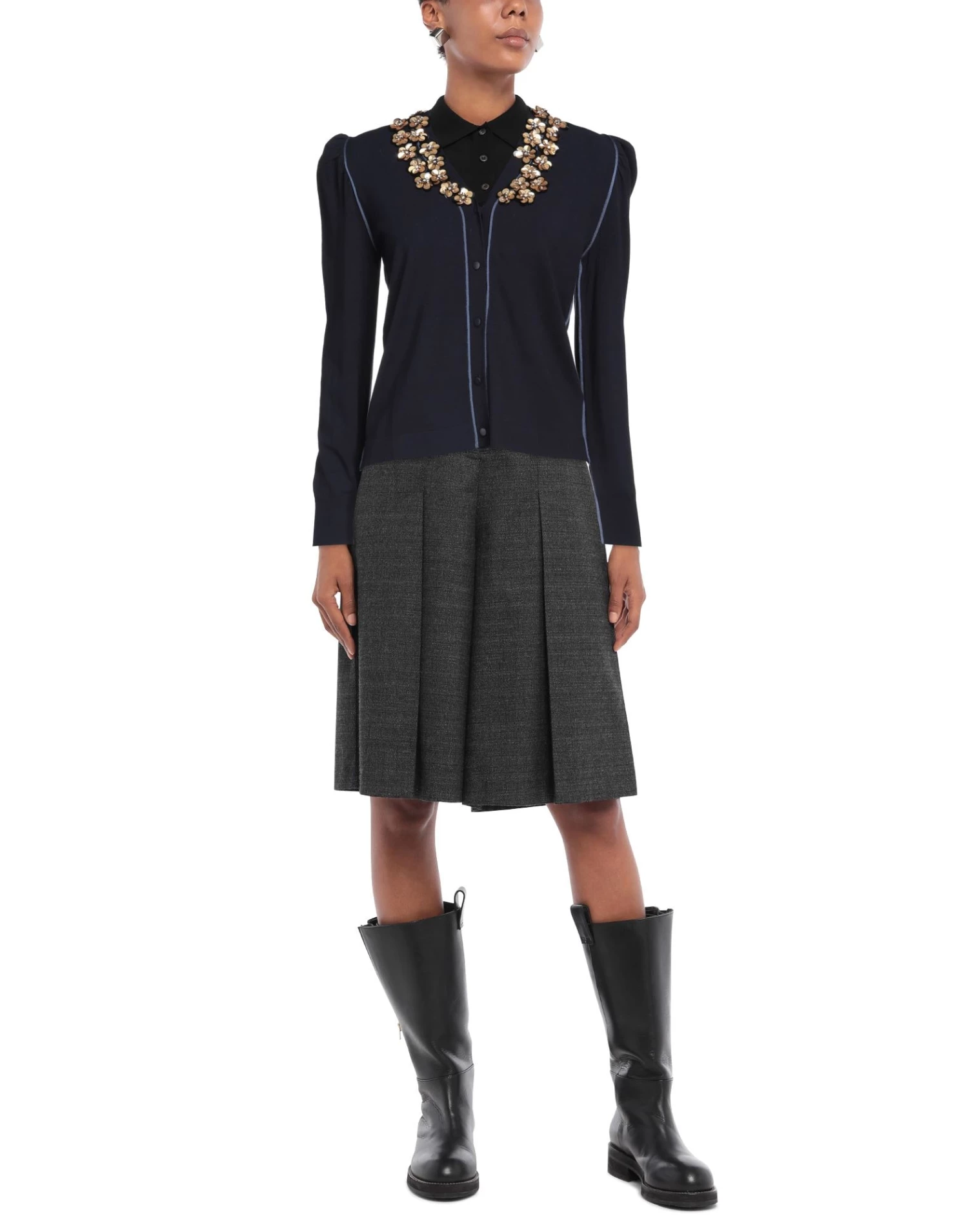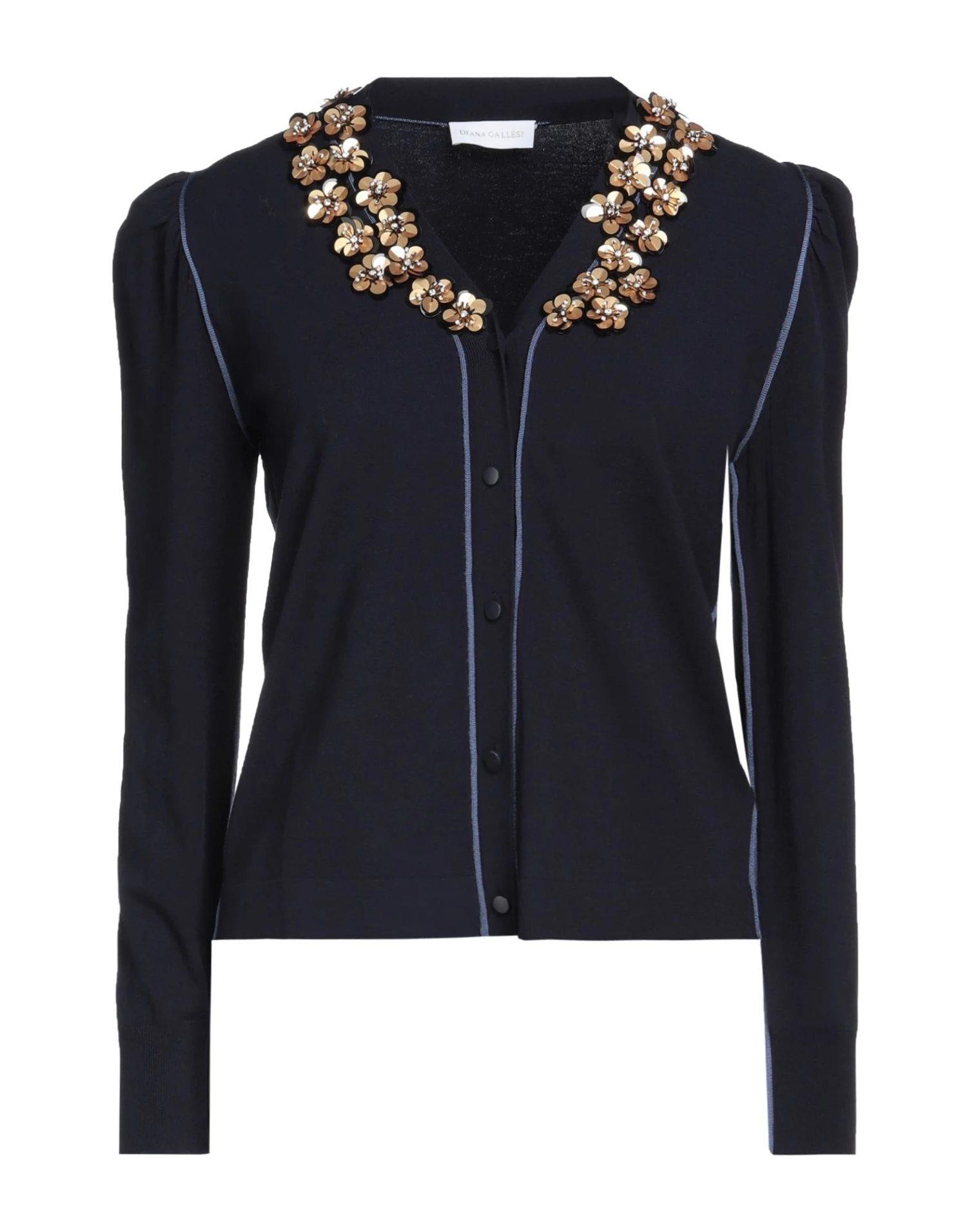knitted, lightweight knit, flower application, multicolor pattern, v-neck, long sleeves, button closing, no pockets