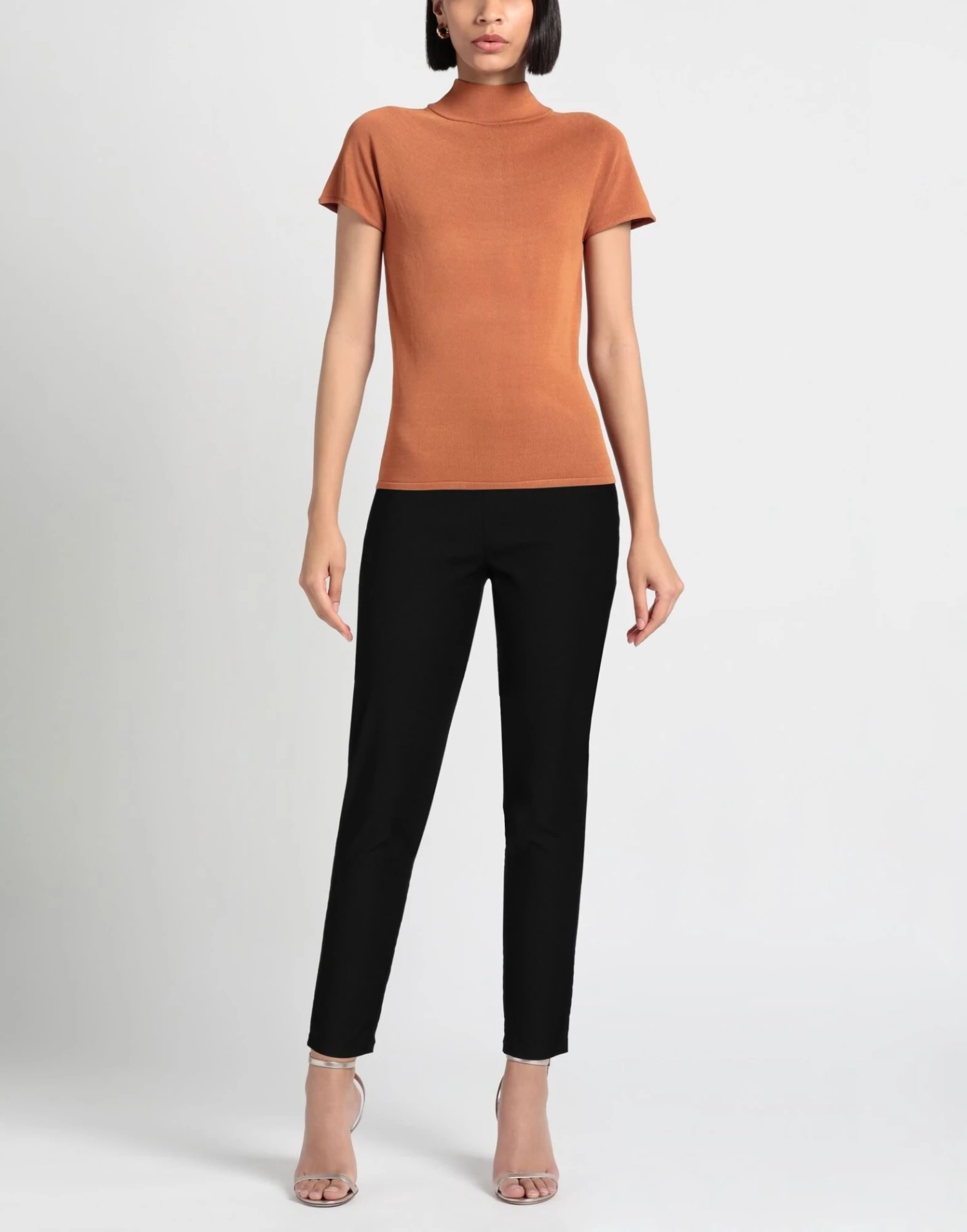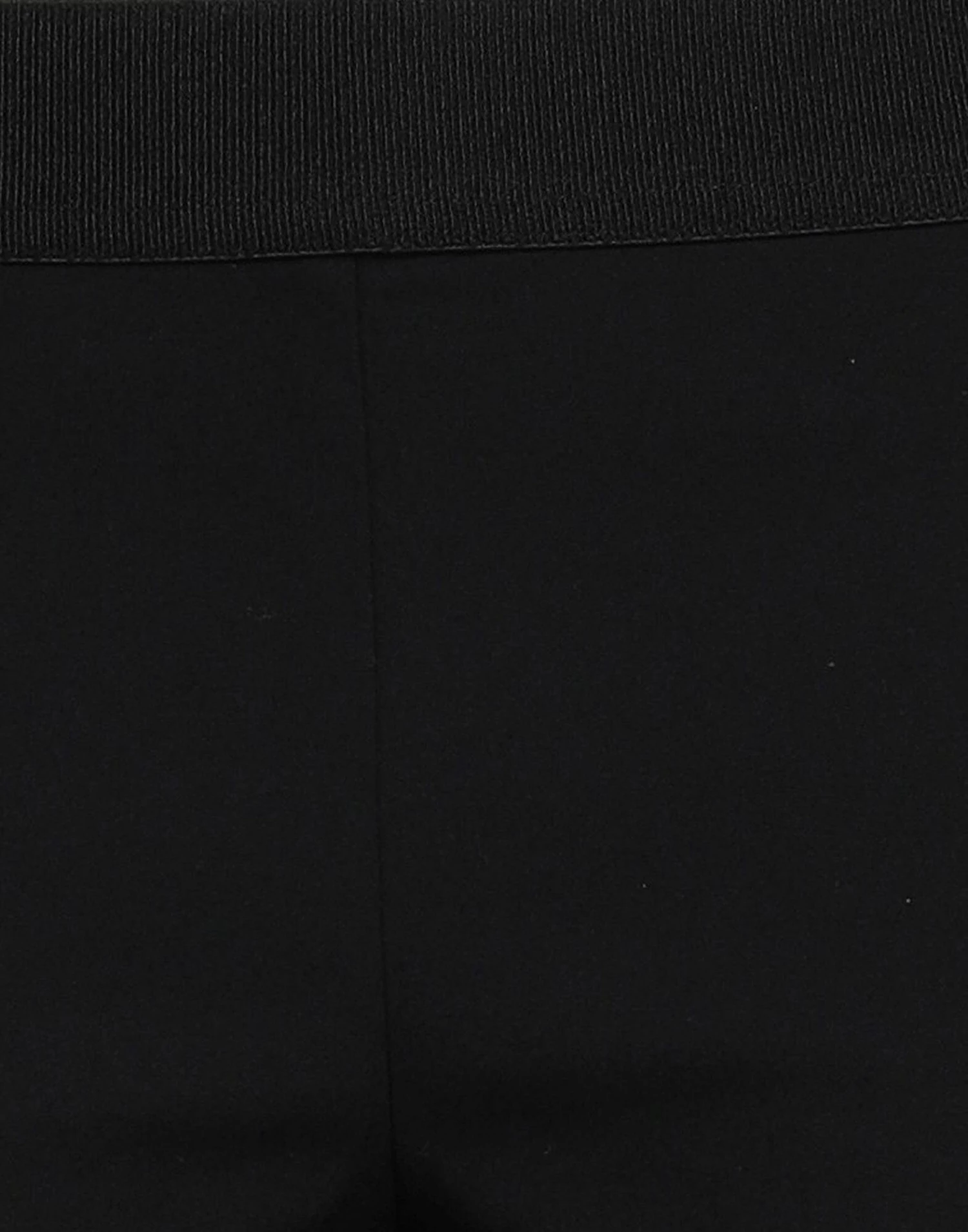 plain weave, no appliqués, solid color, mid rise, elasticized waist, tapered leg, slim-leg pants, no pockets, stretch