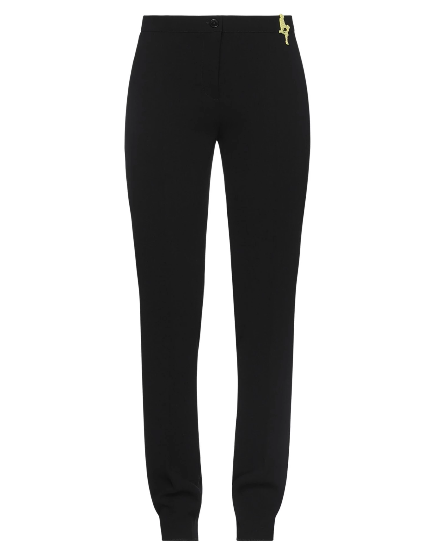 crepe, detachable application, solid color, mid rise, straight leg, regular fit, zipper closure, 1 button, no pockets