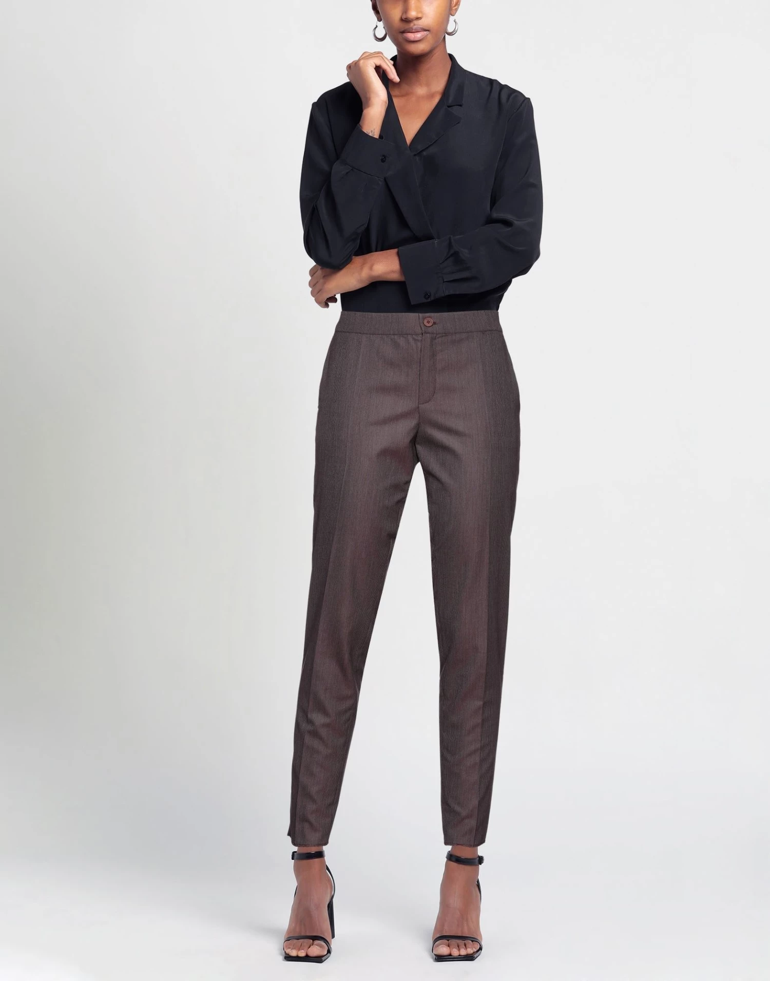 plain weave, no appliqués, stripes, mid rise, tapered leg, slim-leg pants, zipper closure, 1 button, multipockets, stretch