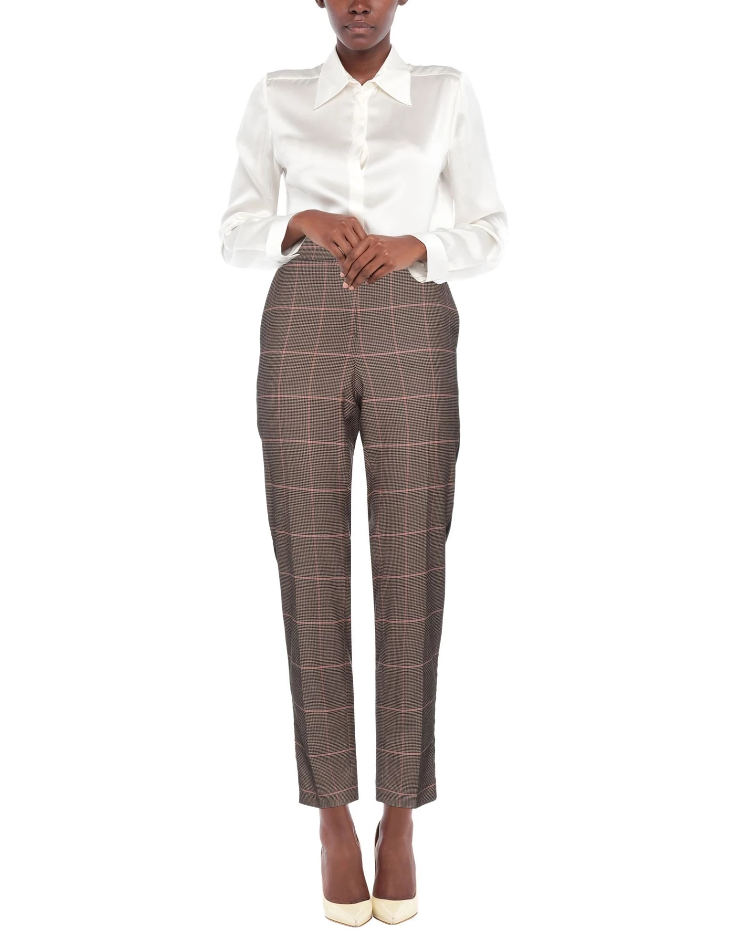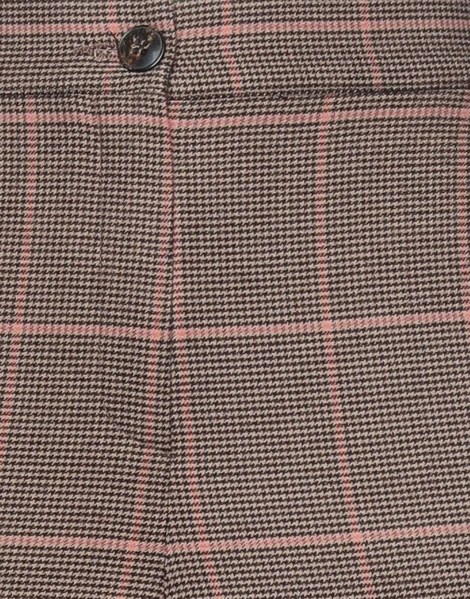 flannel, side seam stripes, houndstooth, high waisted, tapered leg, regular fit, button closing, zipper closure, multipockets, stretch