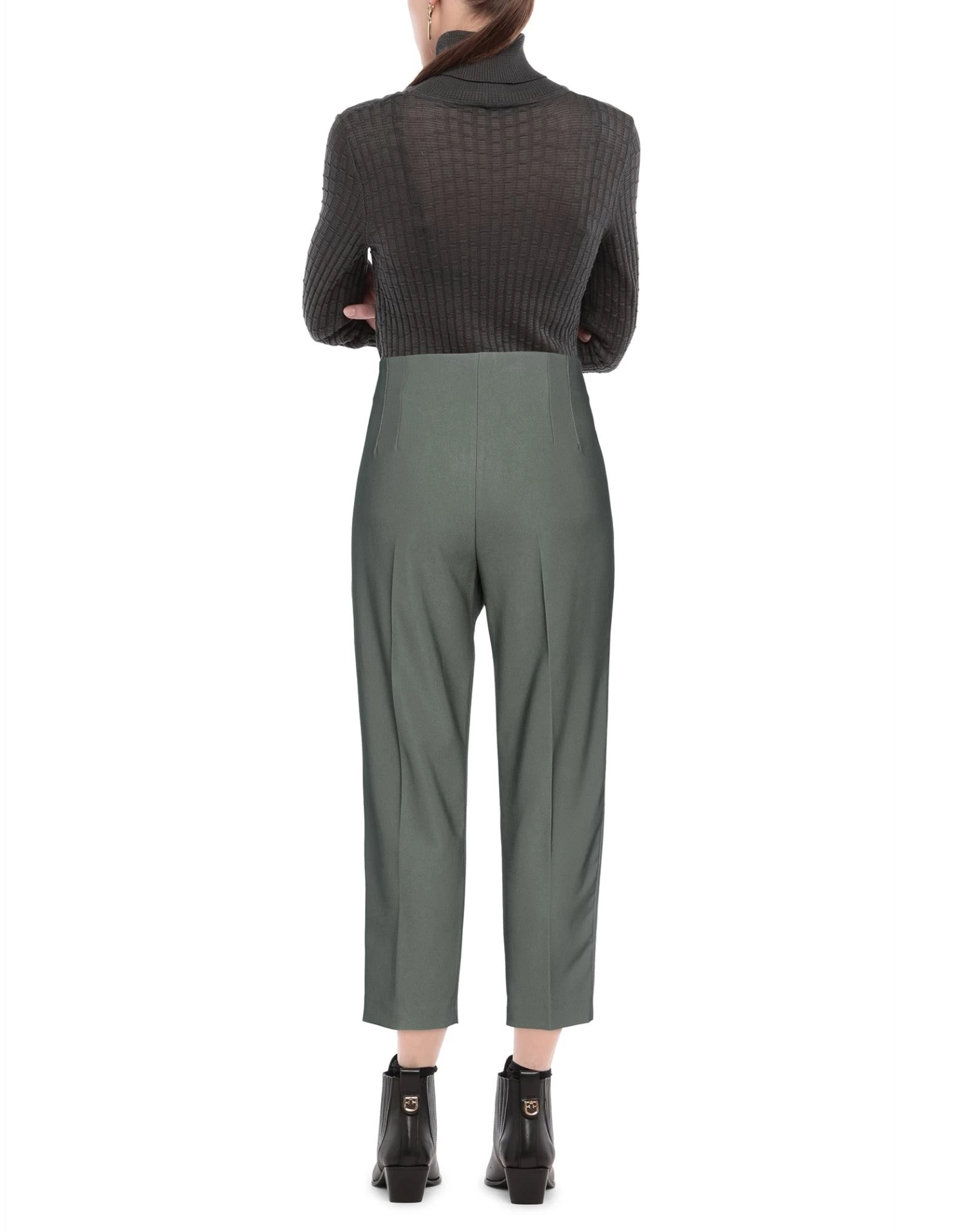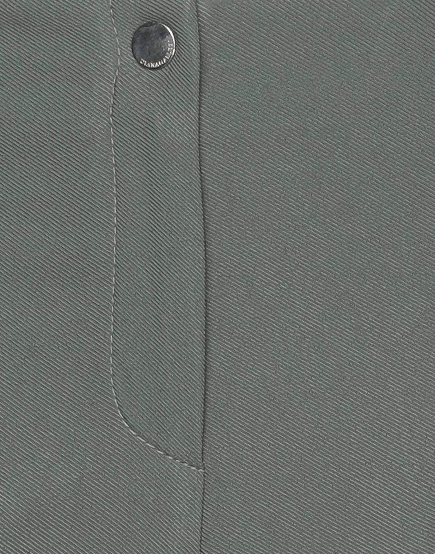 twill, solid color, high waisted, snap buttons fastening, zipper closure, multipockets, no appliqués, stretch, tapered leg, regular fit