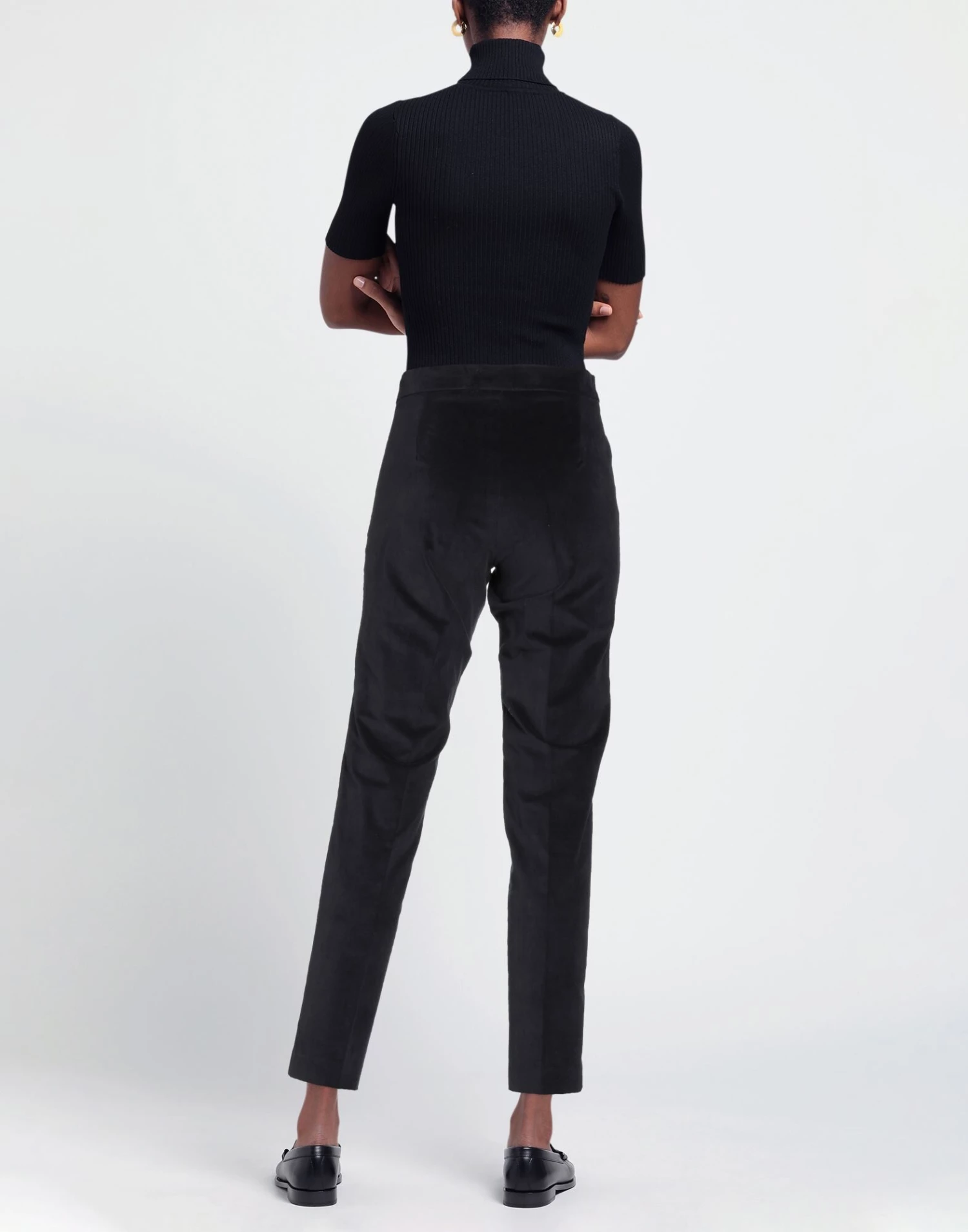 velvet, no appliqués, solid color, mid rise, straight leg, regular fit, 1 button, zipper closure, no pockets, stretch, pants
