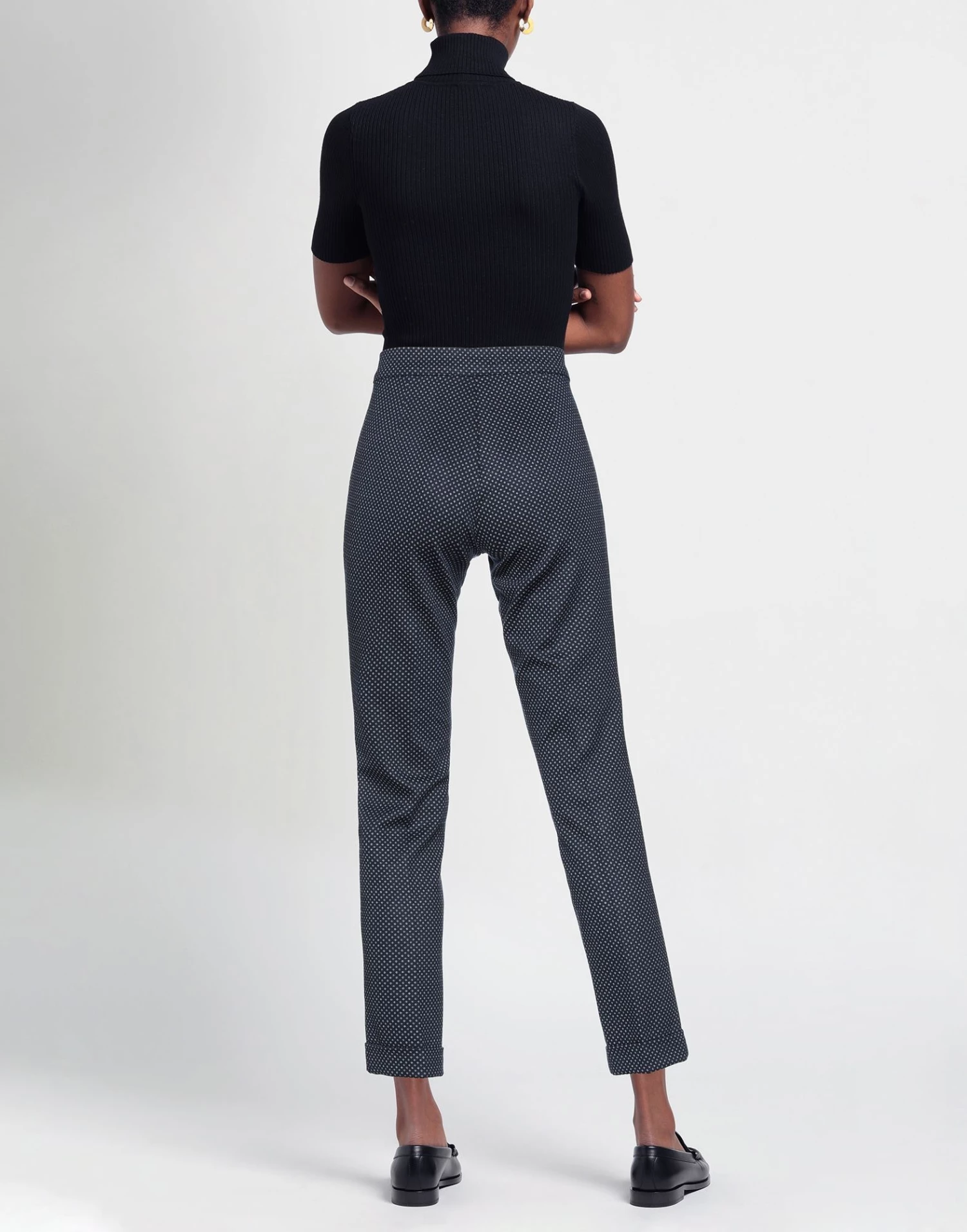jersey, no appliqués, two-tone, mid rise, tapered leg, regular fit, zipper closure, button closing, multipockets, stretch, cuffed hems