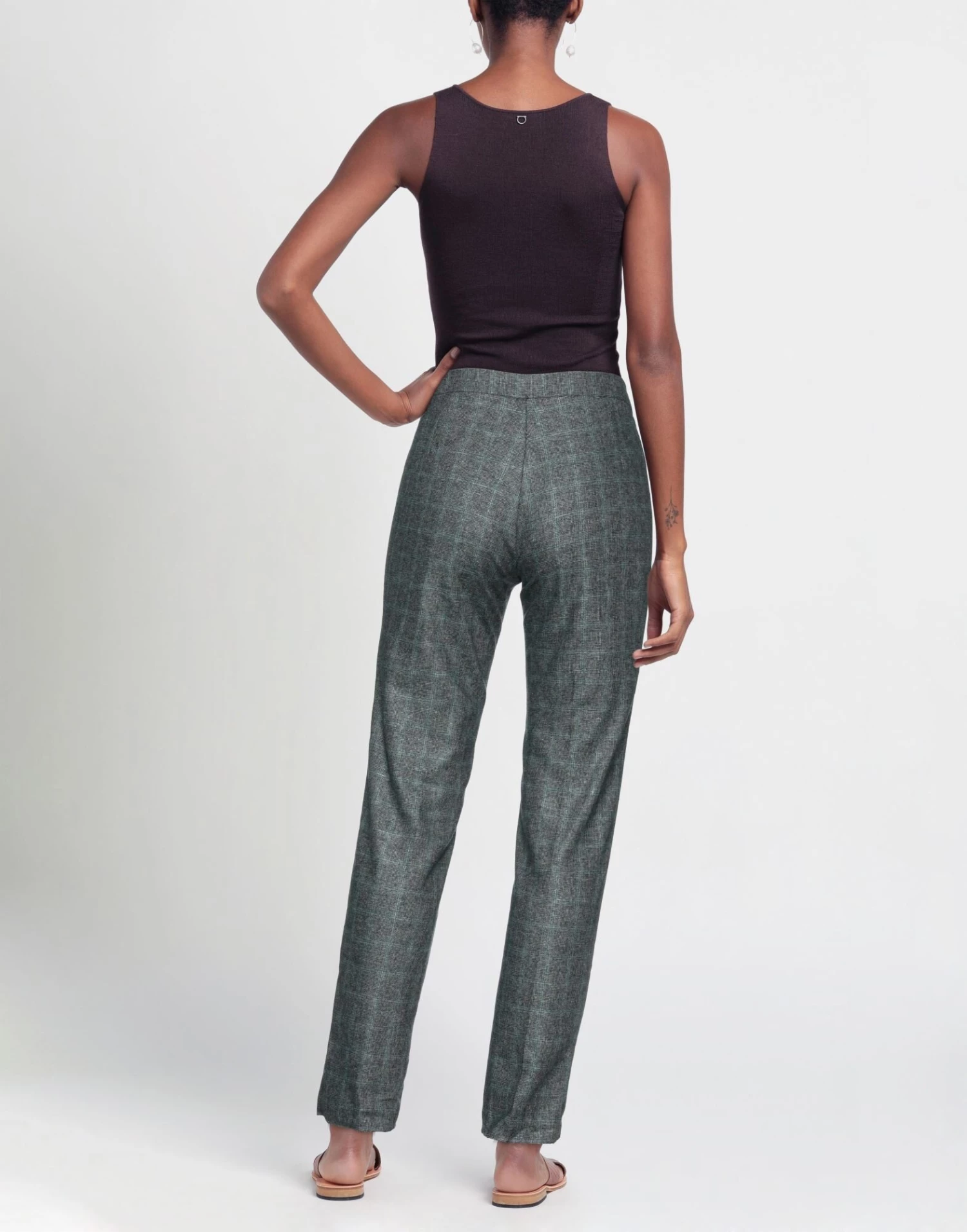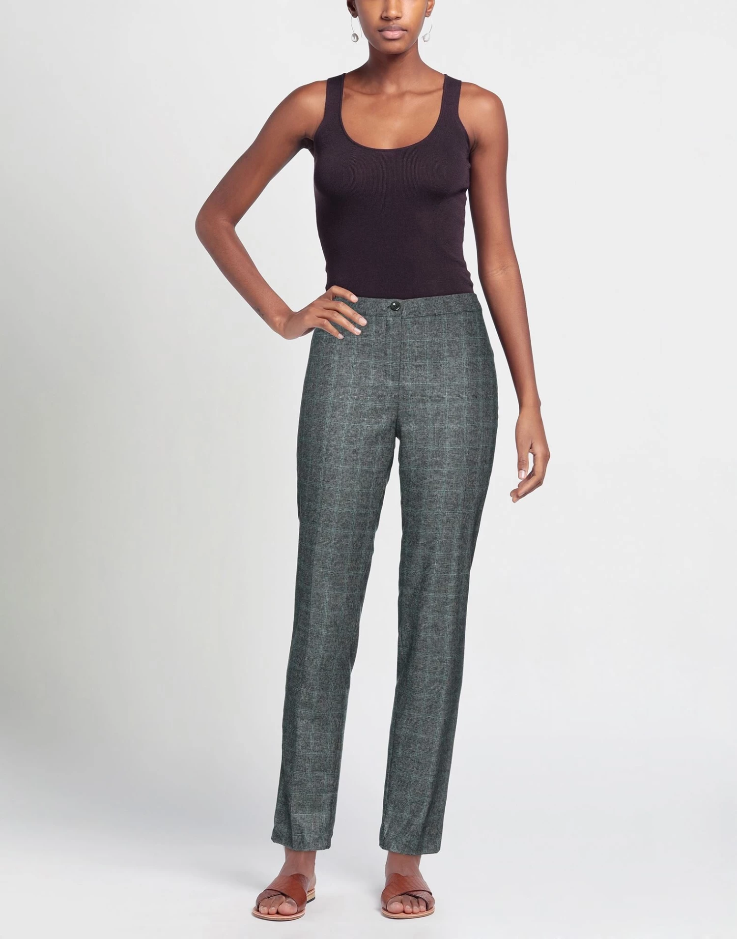 plain weave, lamé, no appliqués, tartan pattern, mid rise, tapered leg, regular fit, button closing, zipper closure, multipockets