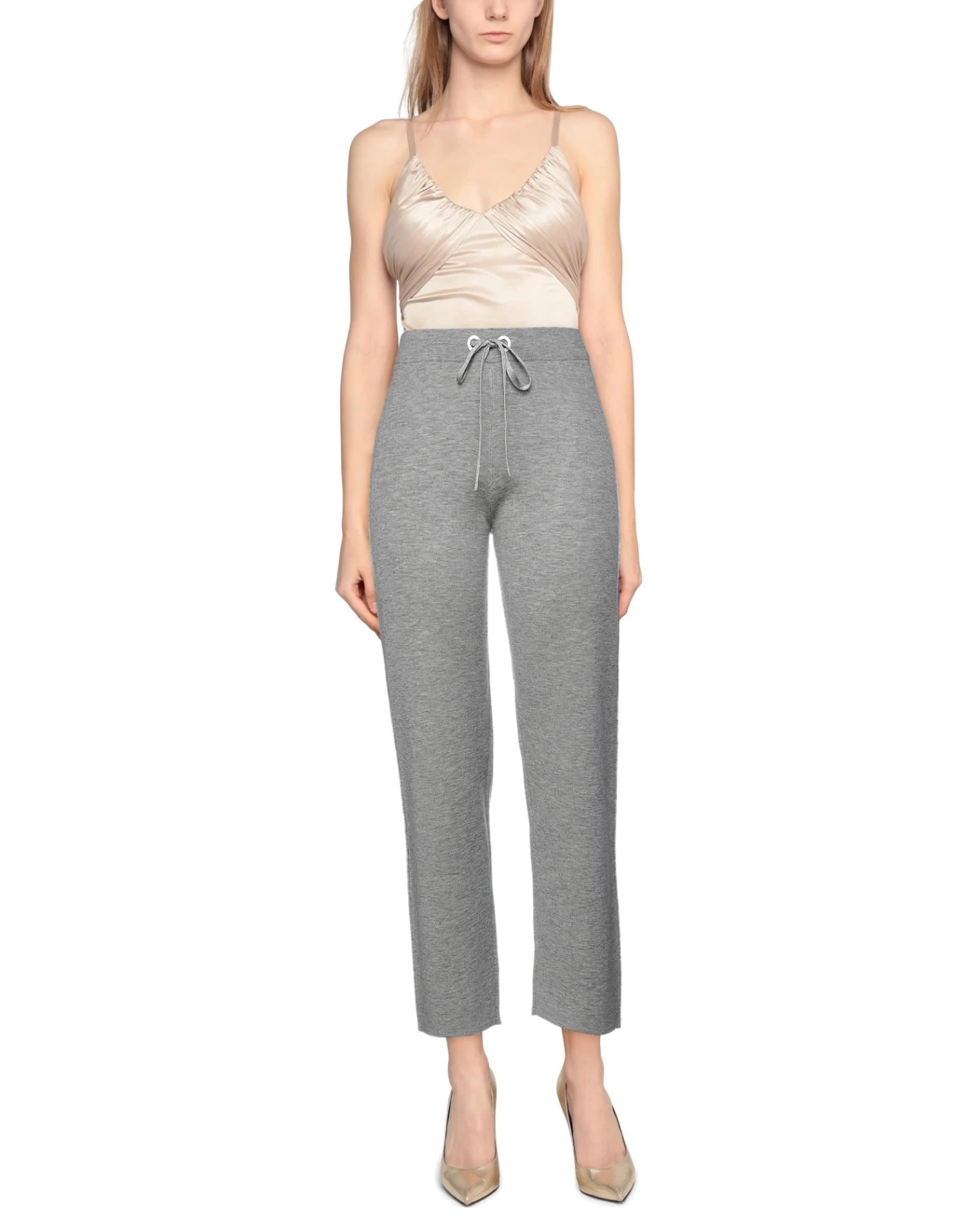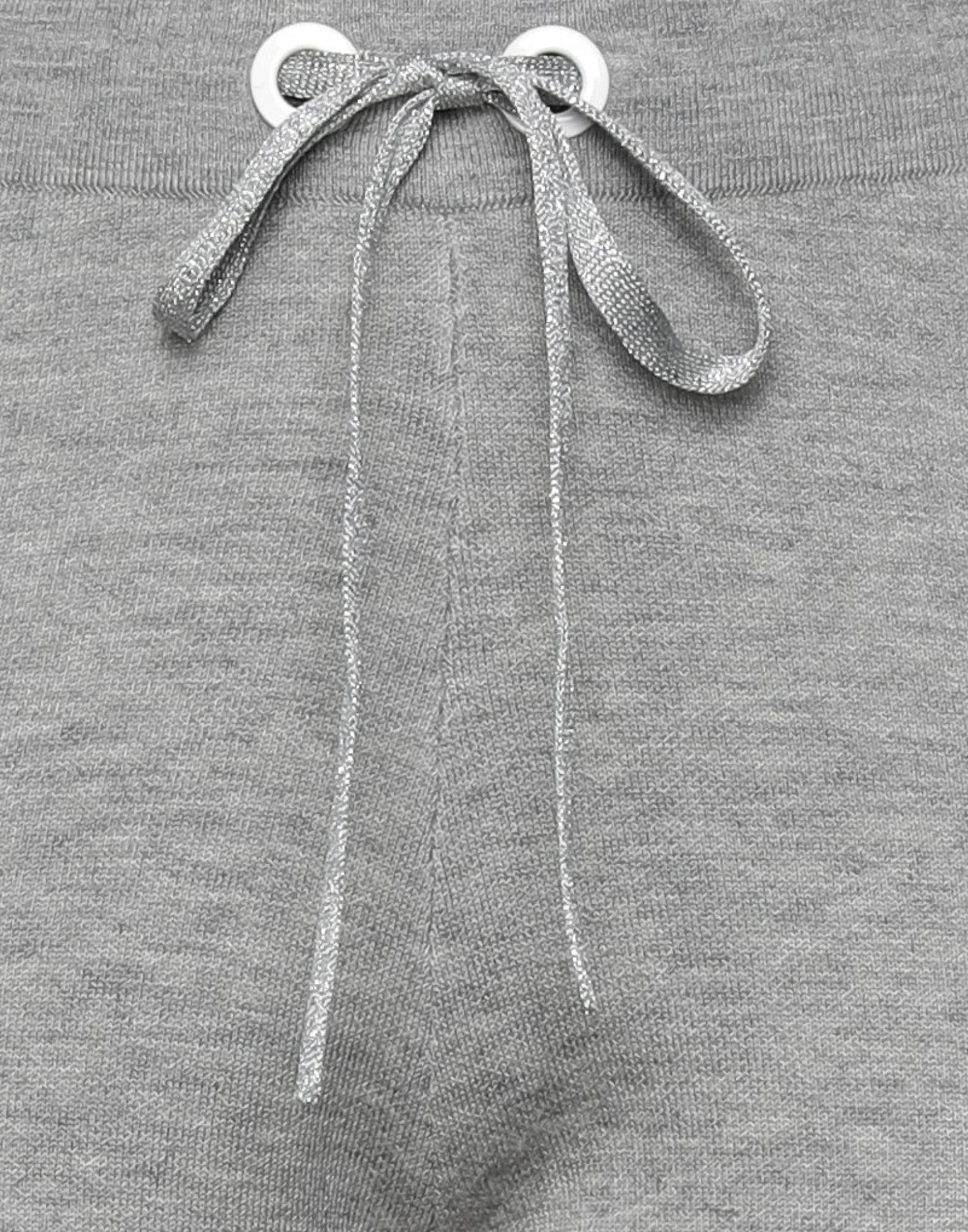 knitted, mélange, no appliqués, high waisted, lightweight knit, elasticized waist, solid color, comfort fit, straight leg, drawstring closure, no pockets