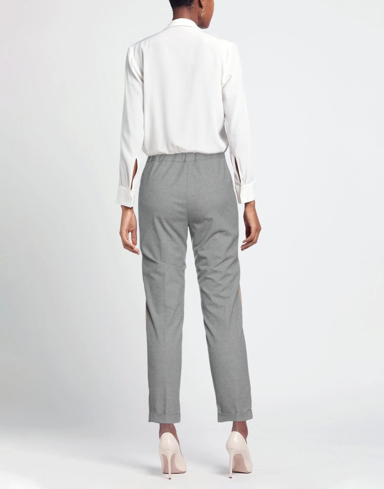 flannel, side seam stripes, solid colour with appliqués, elasticized waist, mid rise, tapered leg, regular fit, drawstring closure, cuffed hems, multipockets, stretch