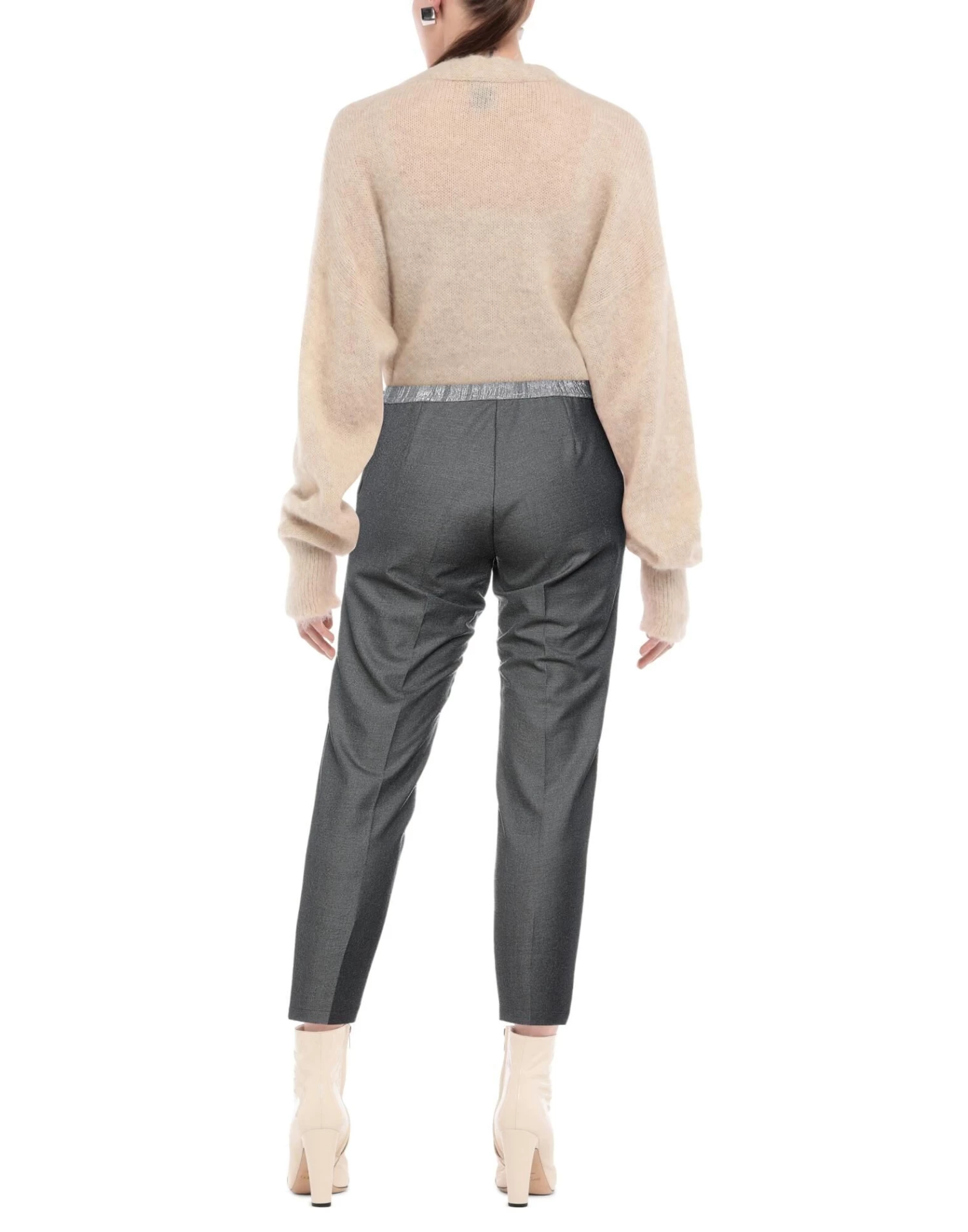 flannel, no appliqués, lamé, mid rise, solid color, elasticized waist, regular fit, tapered leg, zipper closure, multipockets, stretch