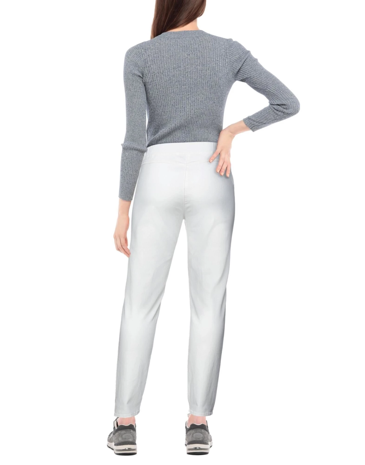 gabardine, no appliqués, high waisted, solid color, elasticized waist, regular fit, tapered leg, no pockets, unlined, stretch