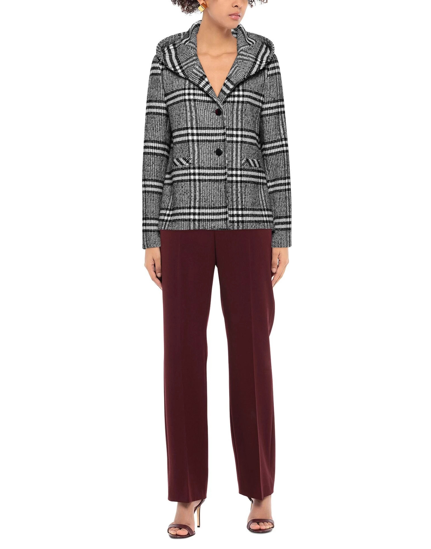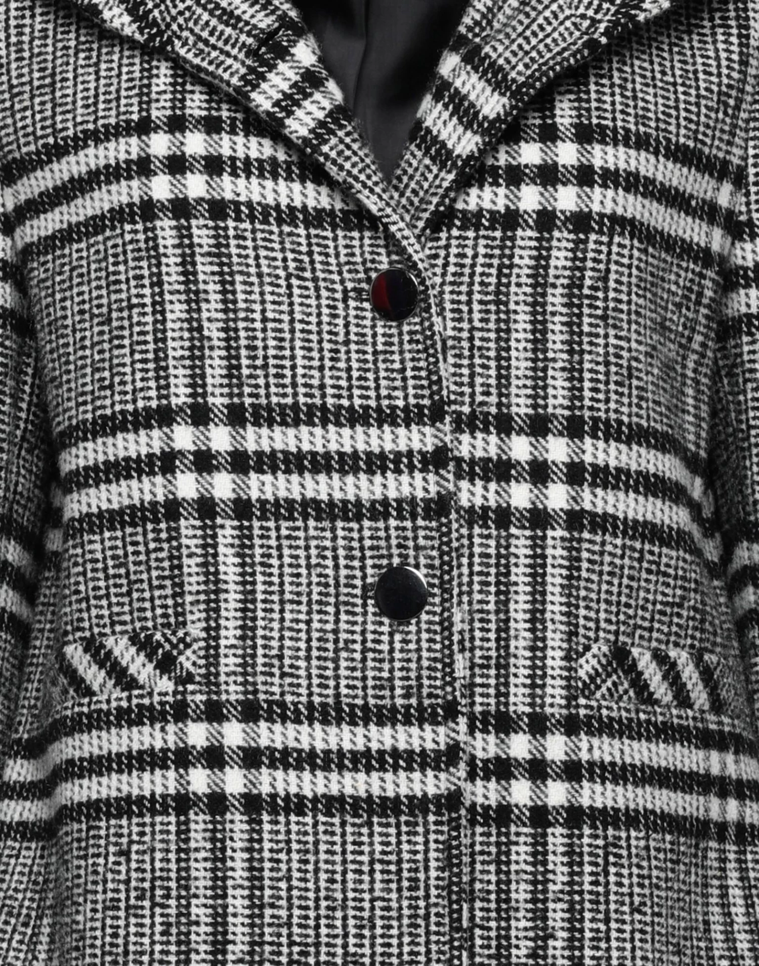 tweed, no appliqués, glen plaid, hooded collar, single-breasted , long sleeves, fully lined, button closing, multipockets
