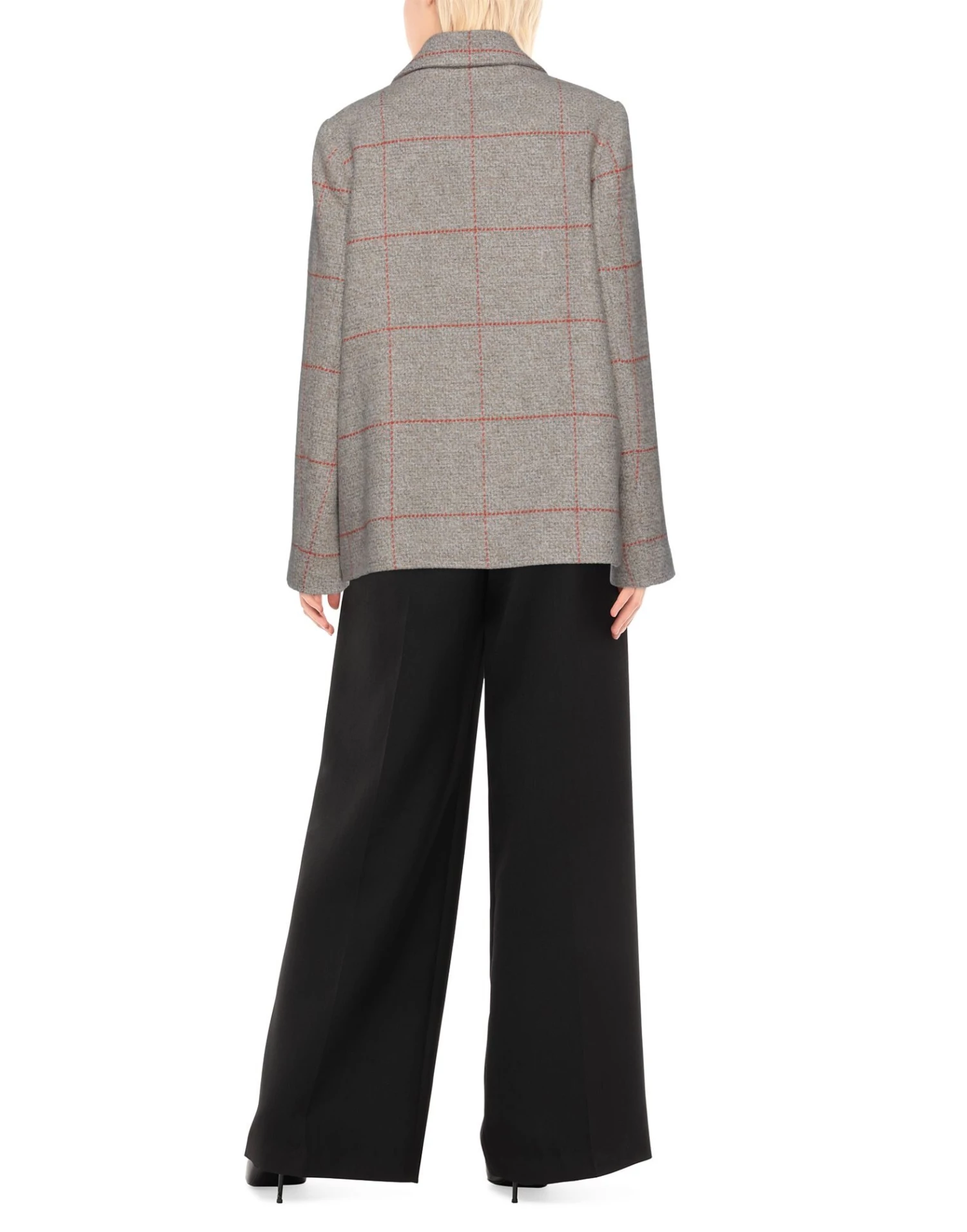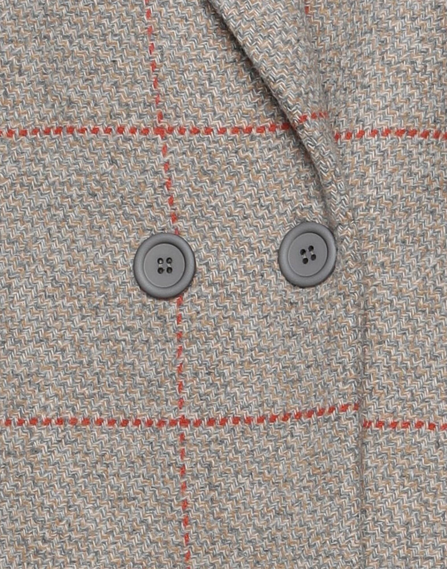 flannel, no appliqués, checked, lapel collar, double-breasted, long sleeves, fully lined, button closing, multipockets