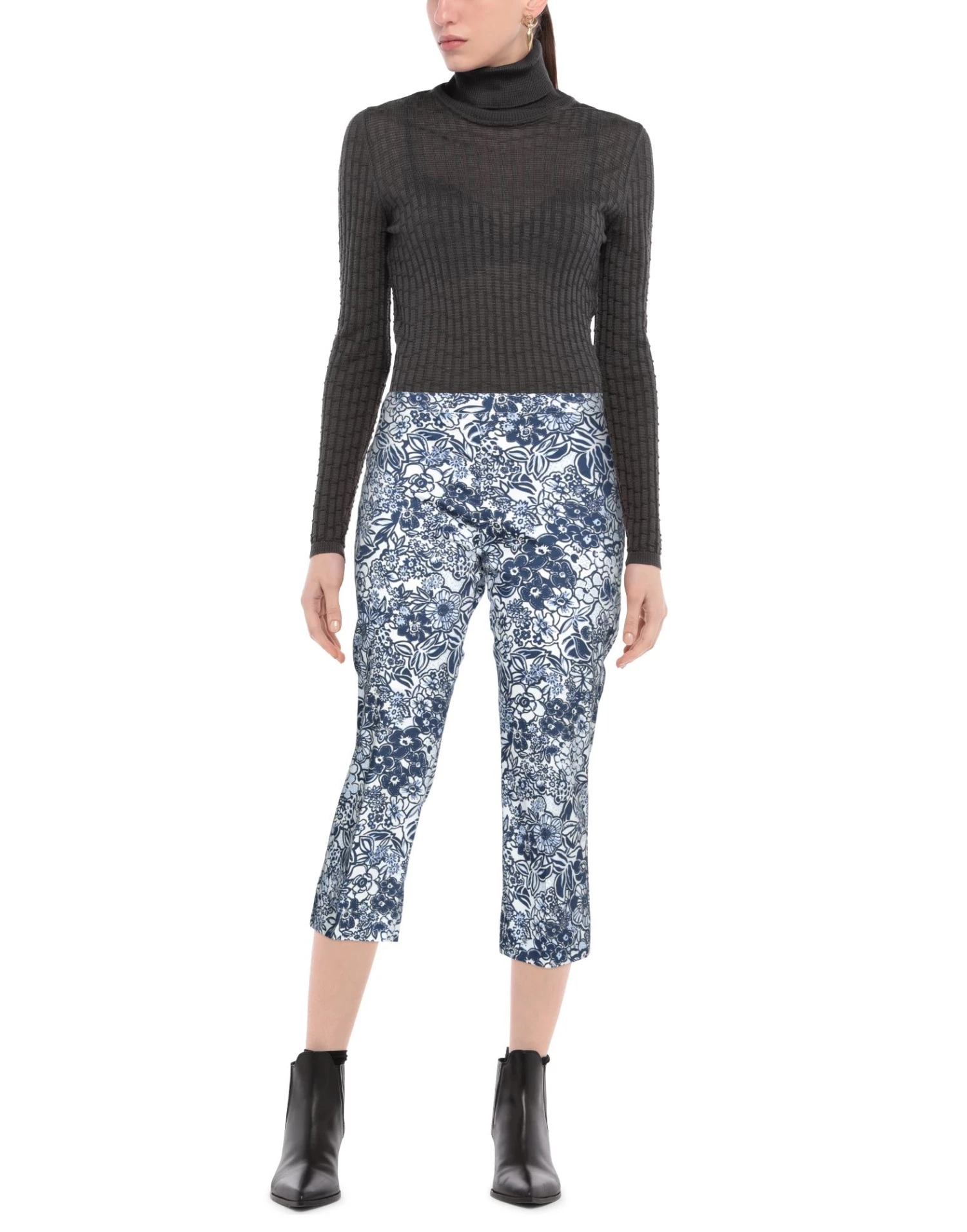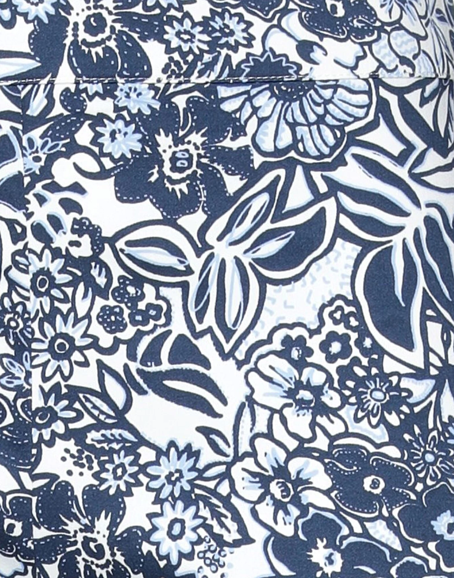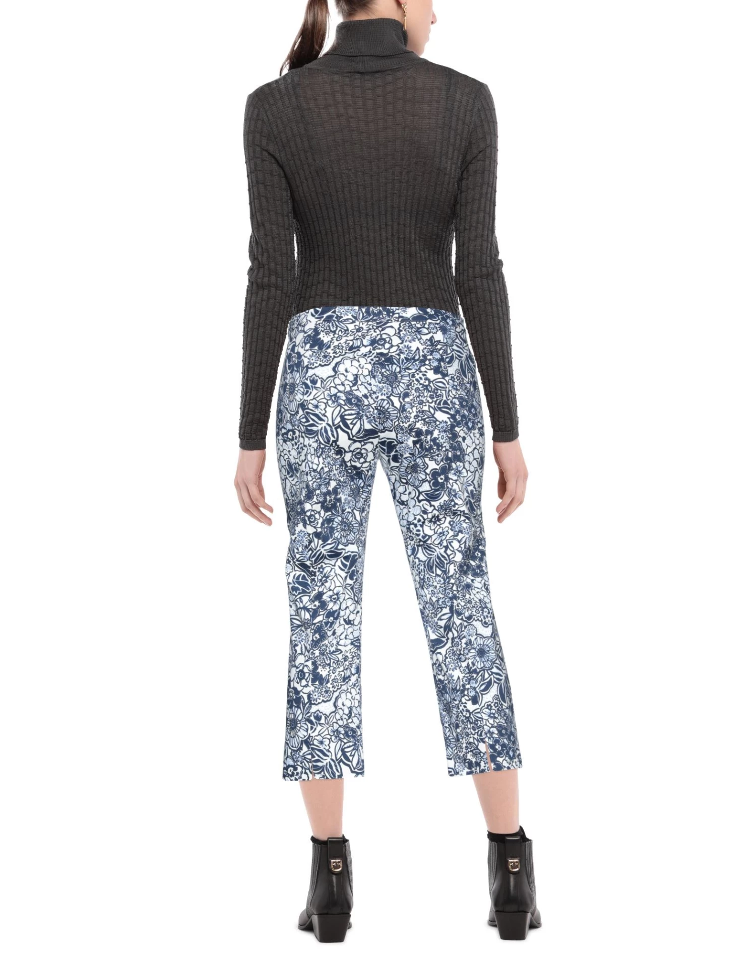 plain weave, no appliqués, floral design, high waisted, straight leg, regular fit, zipper closure, no pockets, side slit hemline, stretch