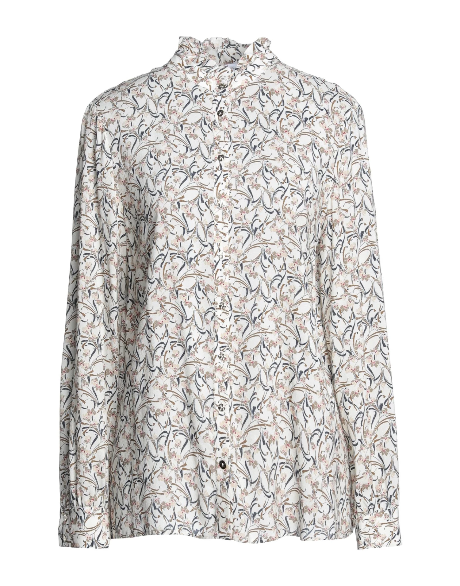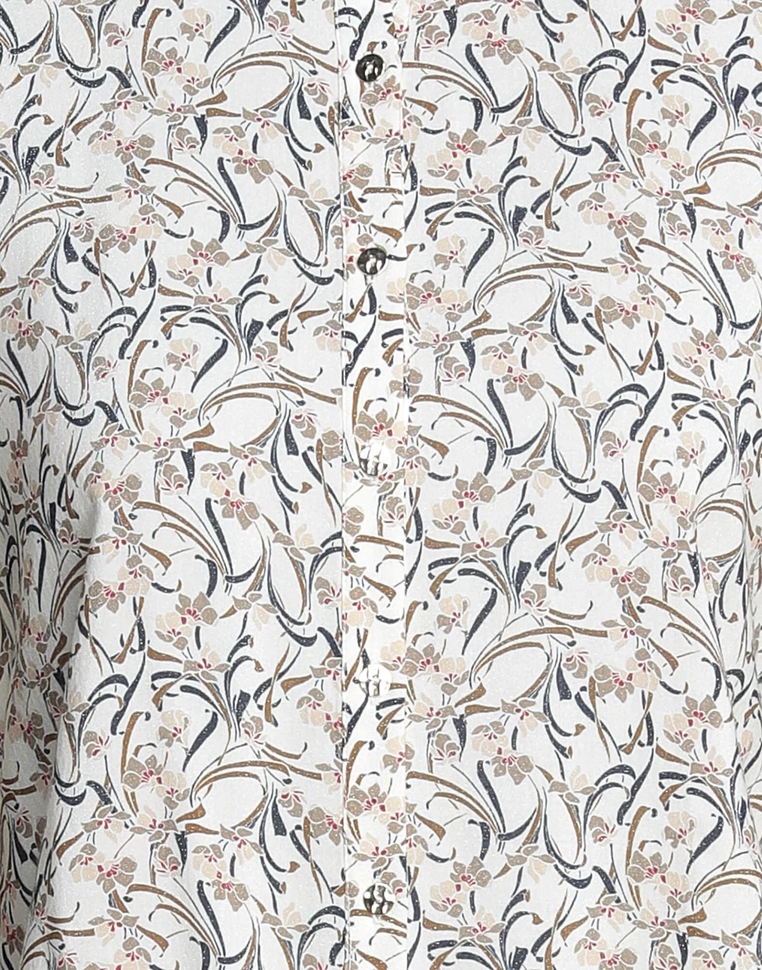 plain weave, lamé, no appliqués, floral design, mandarin collar, long sleeves, button closing, no pockets