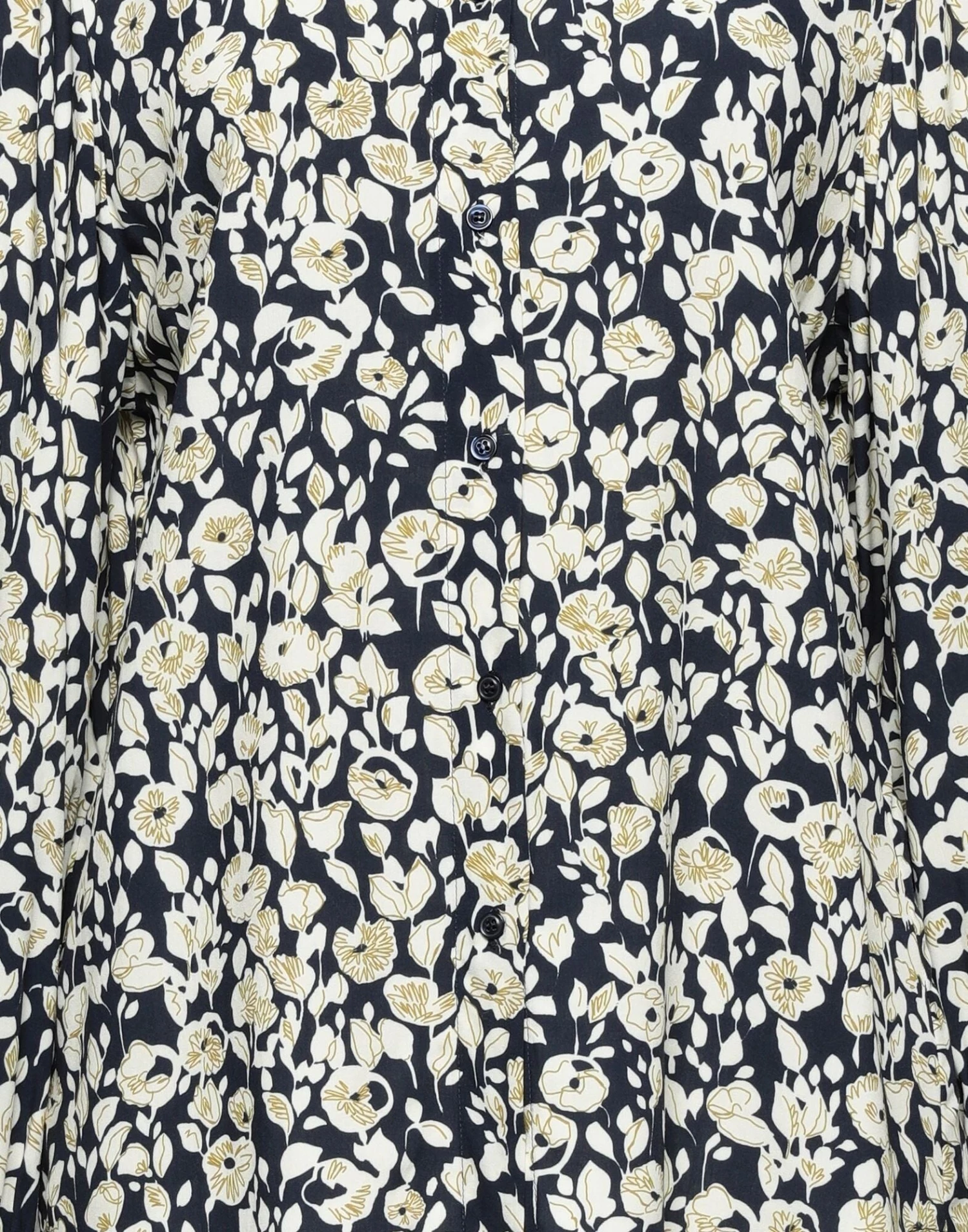 plain weave, no appliqués, floral design, classic neckline, long sleeves, buttoned cuffs, button closing, no pockets