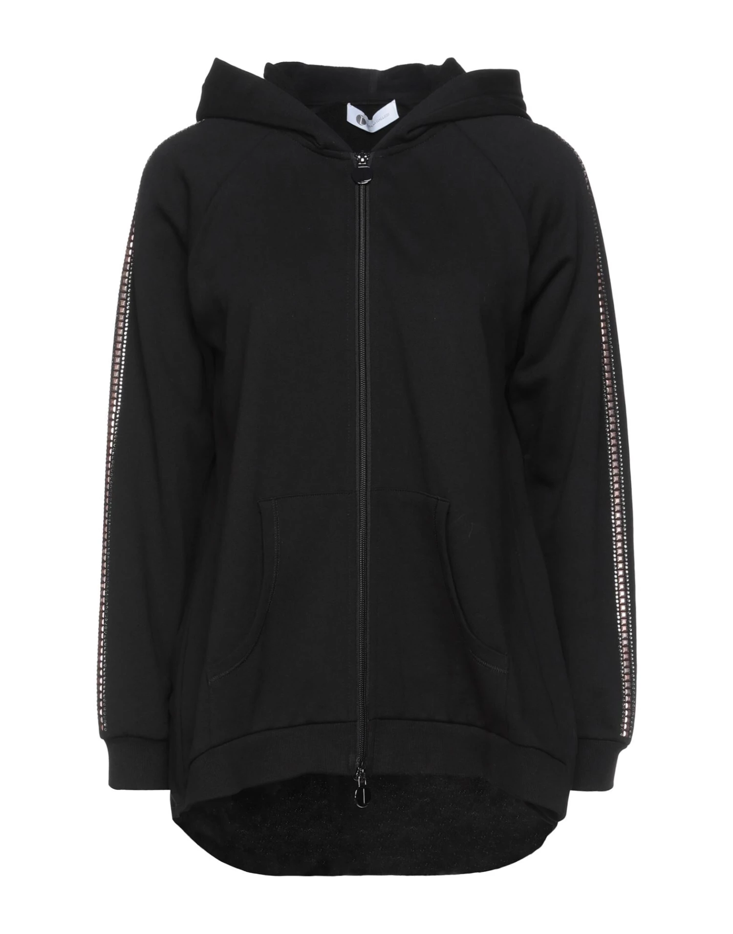 sweatshirt fleece, rhinestones, studs, solid colour with appliqués, hooded collar, long sleeves, zipper closure, two breast pockets, french terry lining