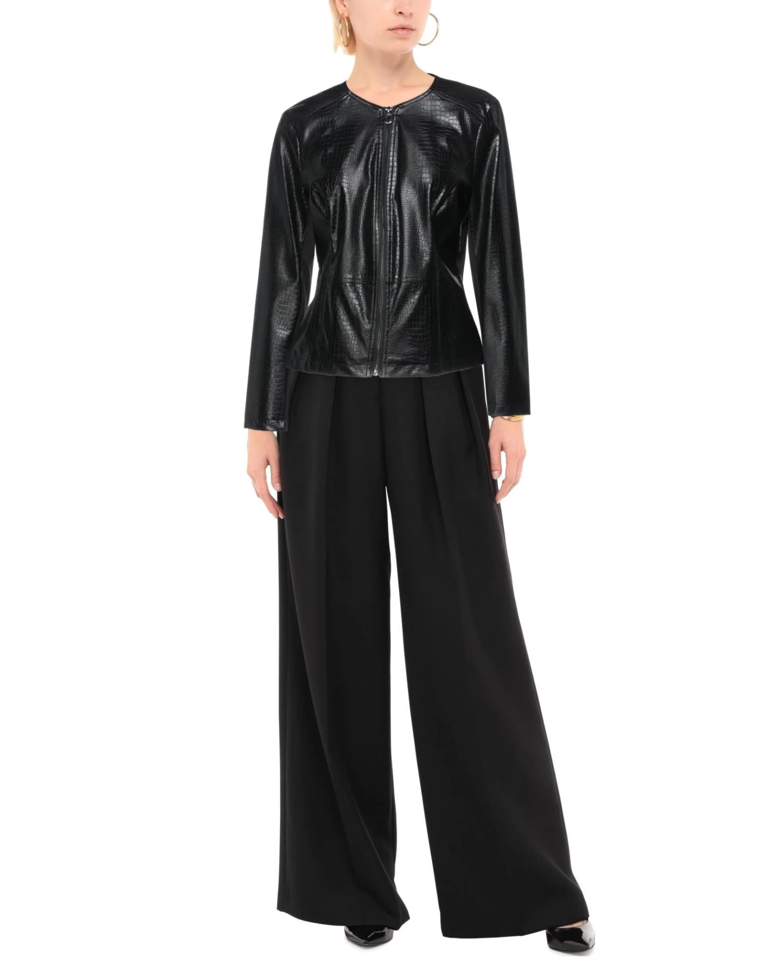 jersey, coated fabric, brand logo, solid color, single-breasted , round collar, long sleeves, zipper closure, multipockets, fully lined, zipped cuffs