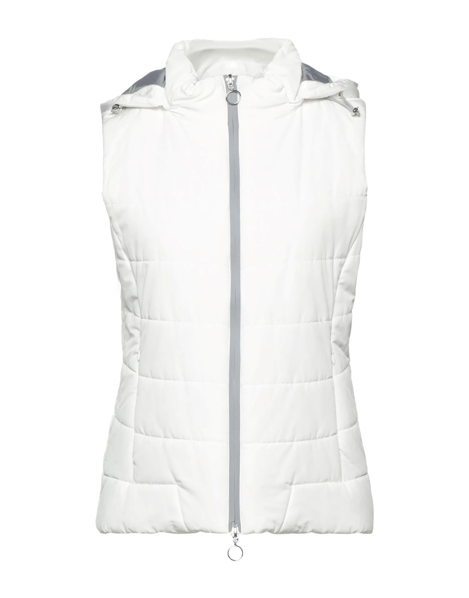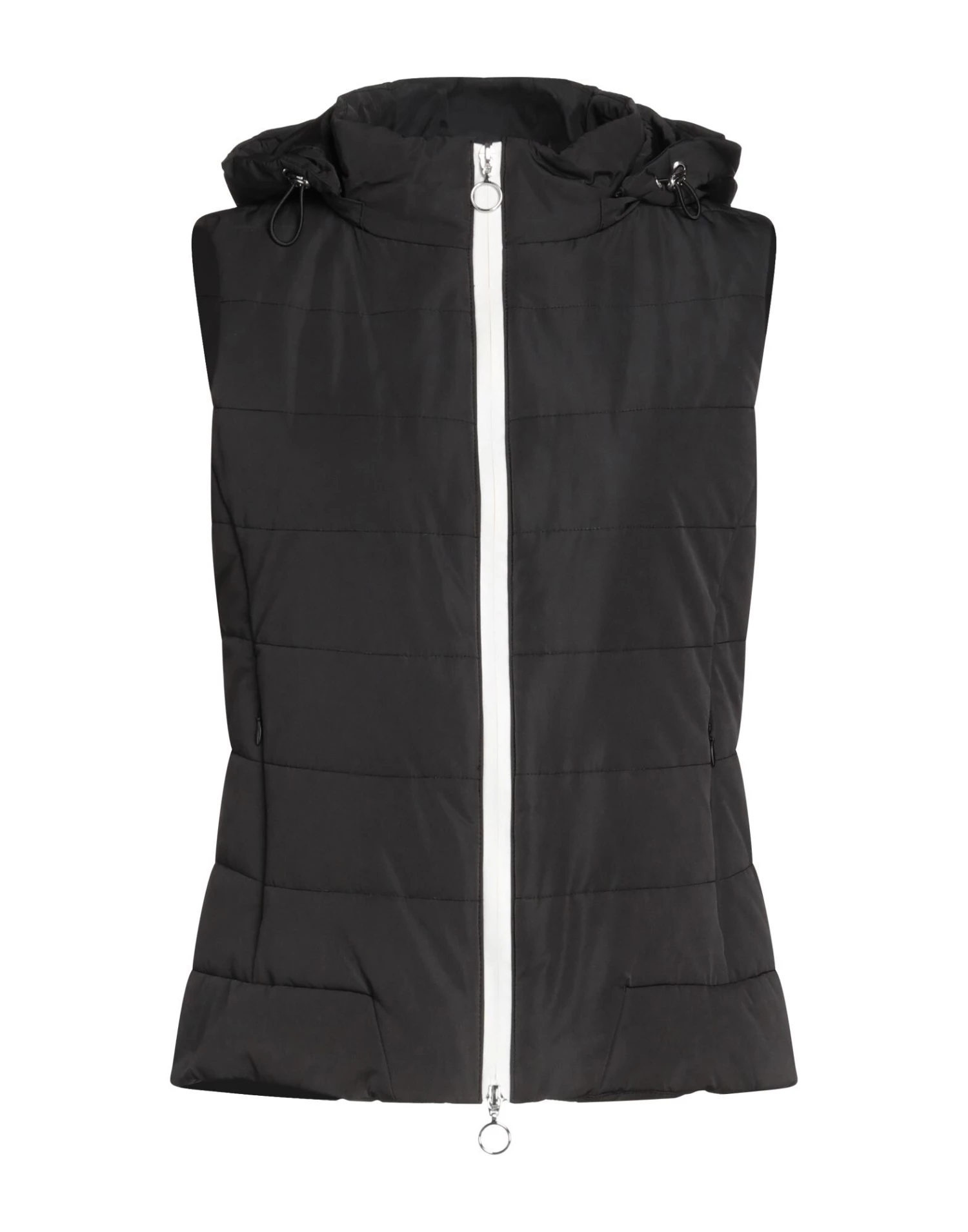 techno fabric, no appliqués, two-tone, hooded collar, single-breasted , sleeveless, internal padding, zipper closure, multipockets
