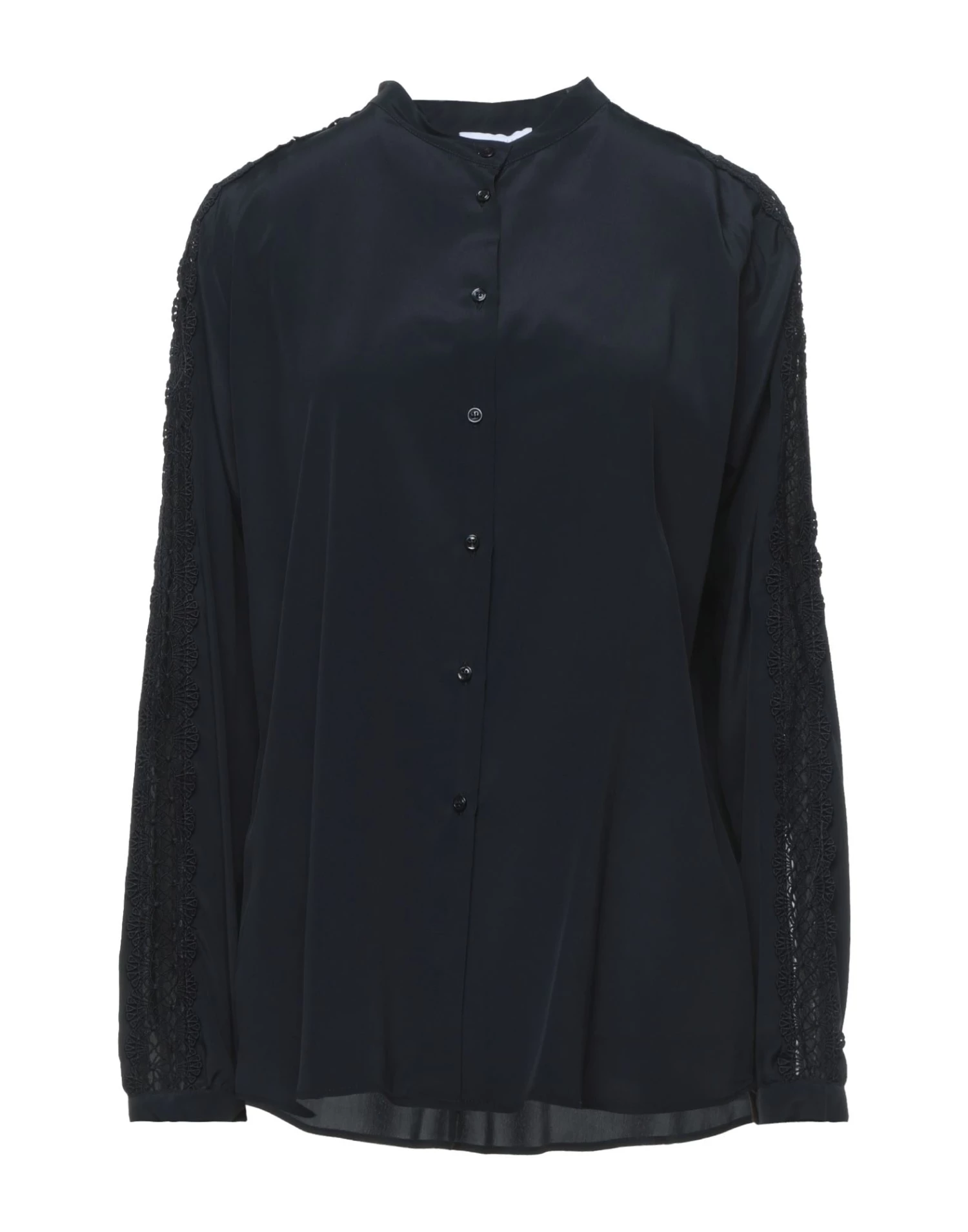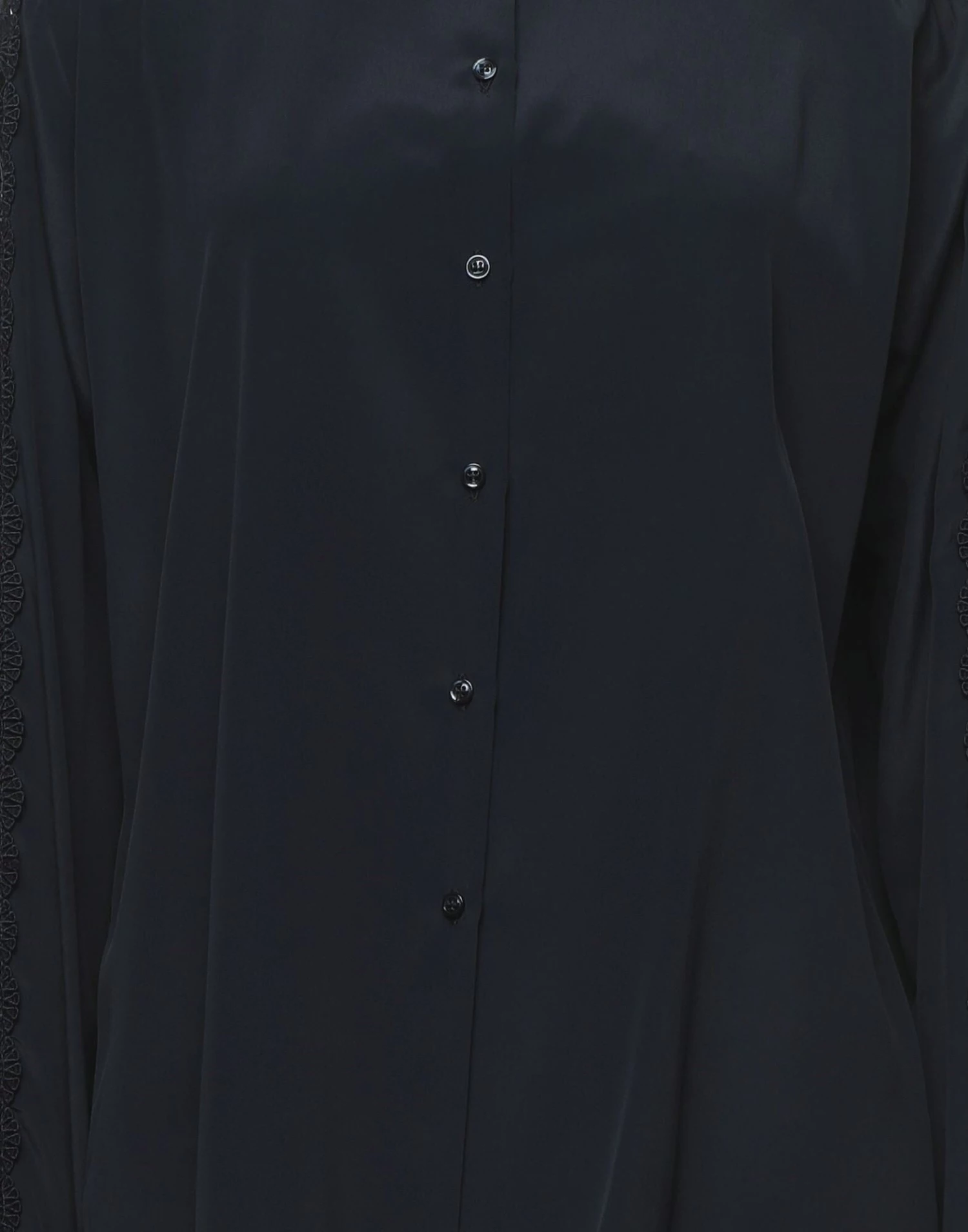 lace, crepe, no appliqués, basic solid color, front closure, button closing, long sleeves, buttoned cuffs, mandarin collar, no pockets