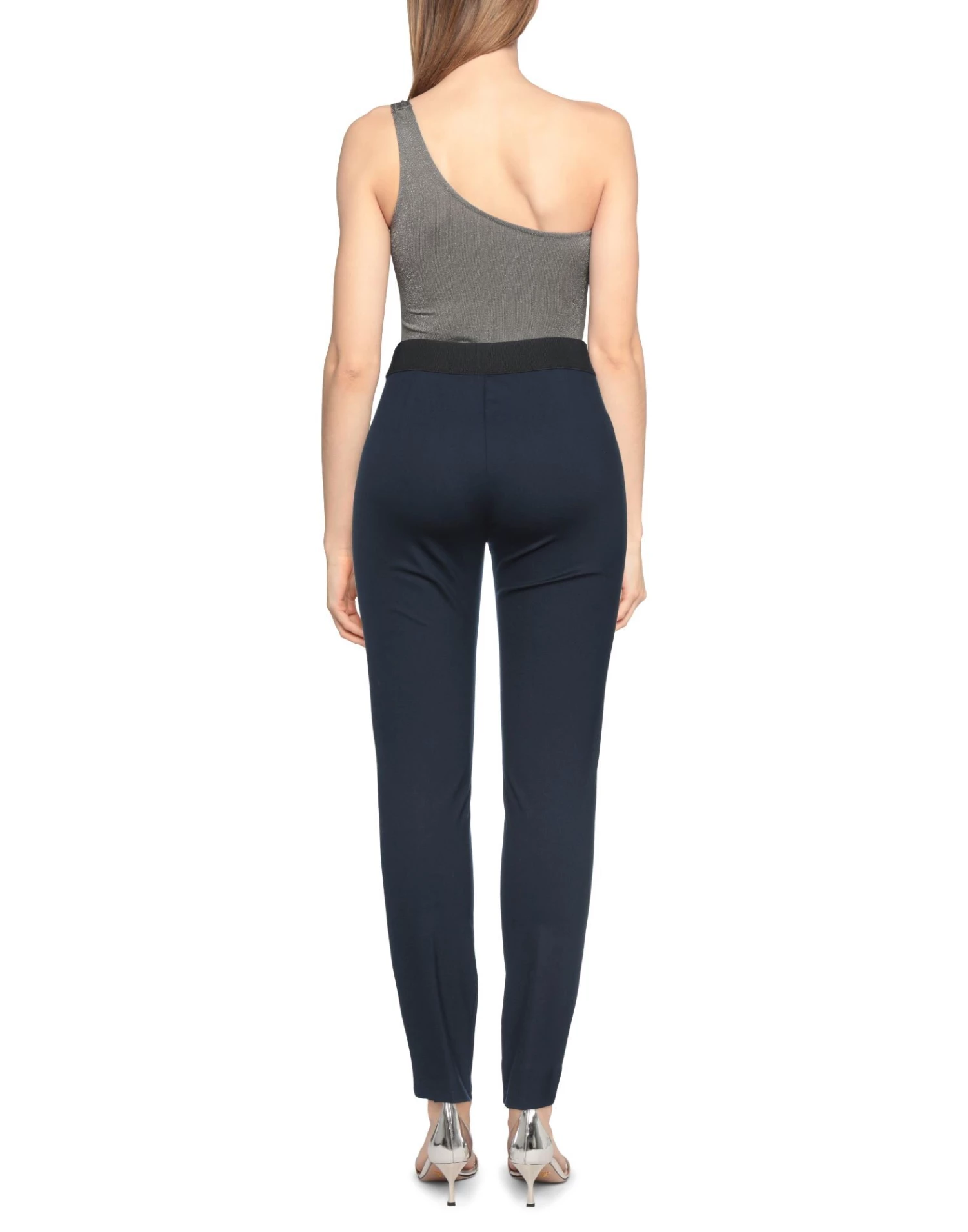 jersey, no appliqués, solid color, elasticized waist, mid rise, tapered leg, slim-leg pants, no pockets, stretch
