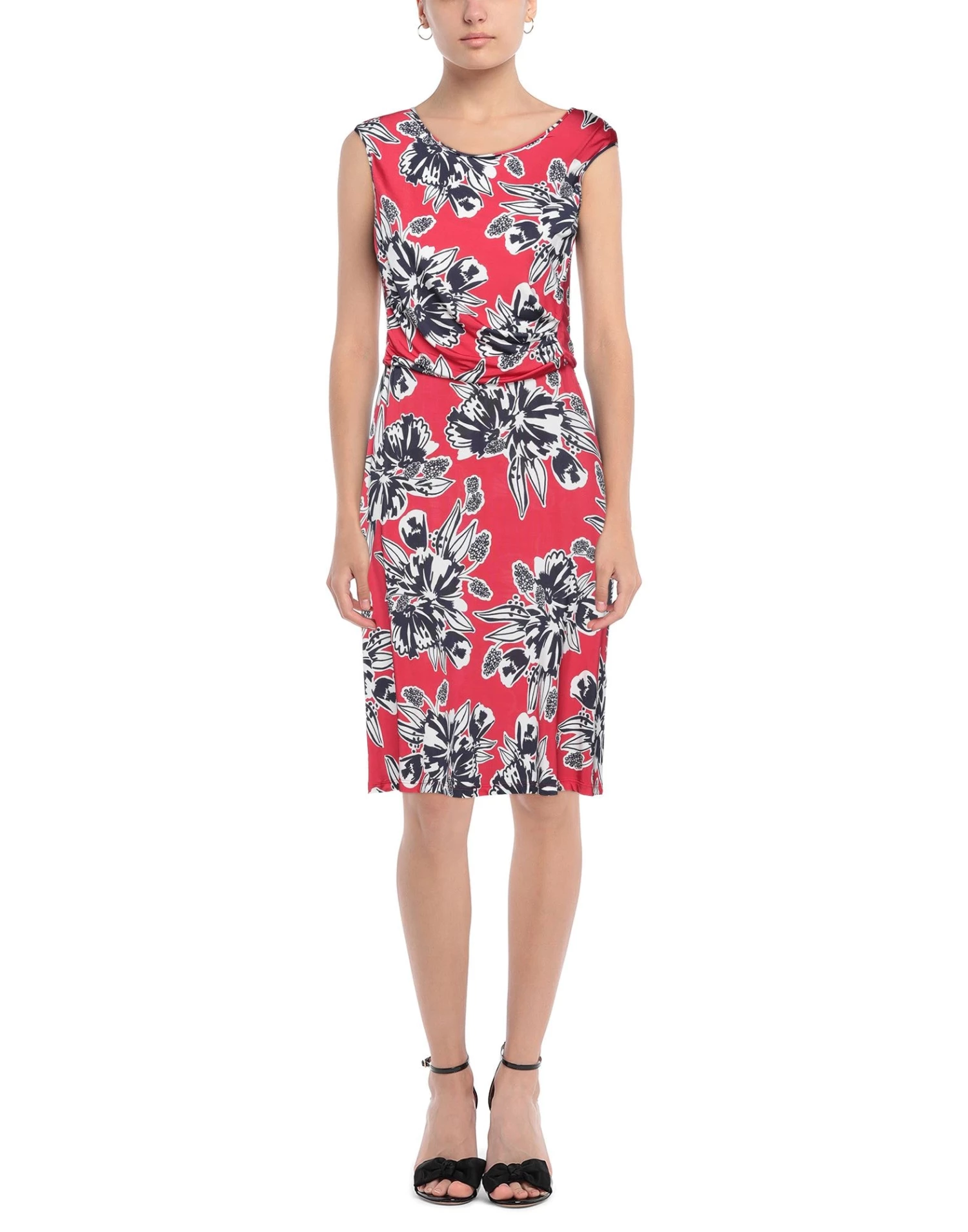 jersey, draped detailing, floral design, round collar, sleeveless, partially lined interior, no pockets, stretch