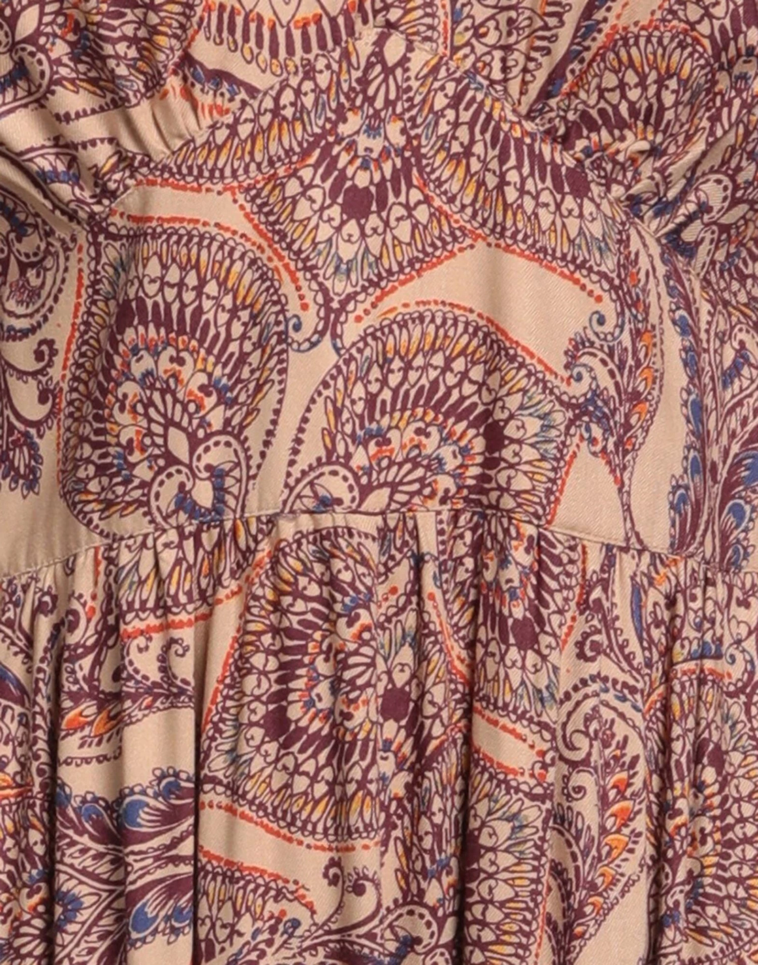 plain weave, folds, paisley-print, bow collar, long sleeves, buttoned cuffs, unlined, zipper closure, no pockets