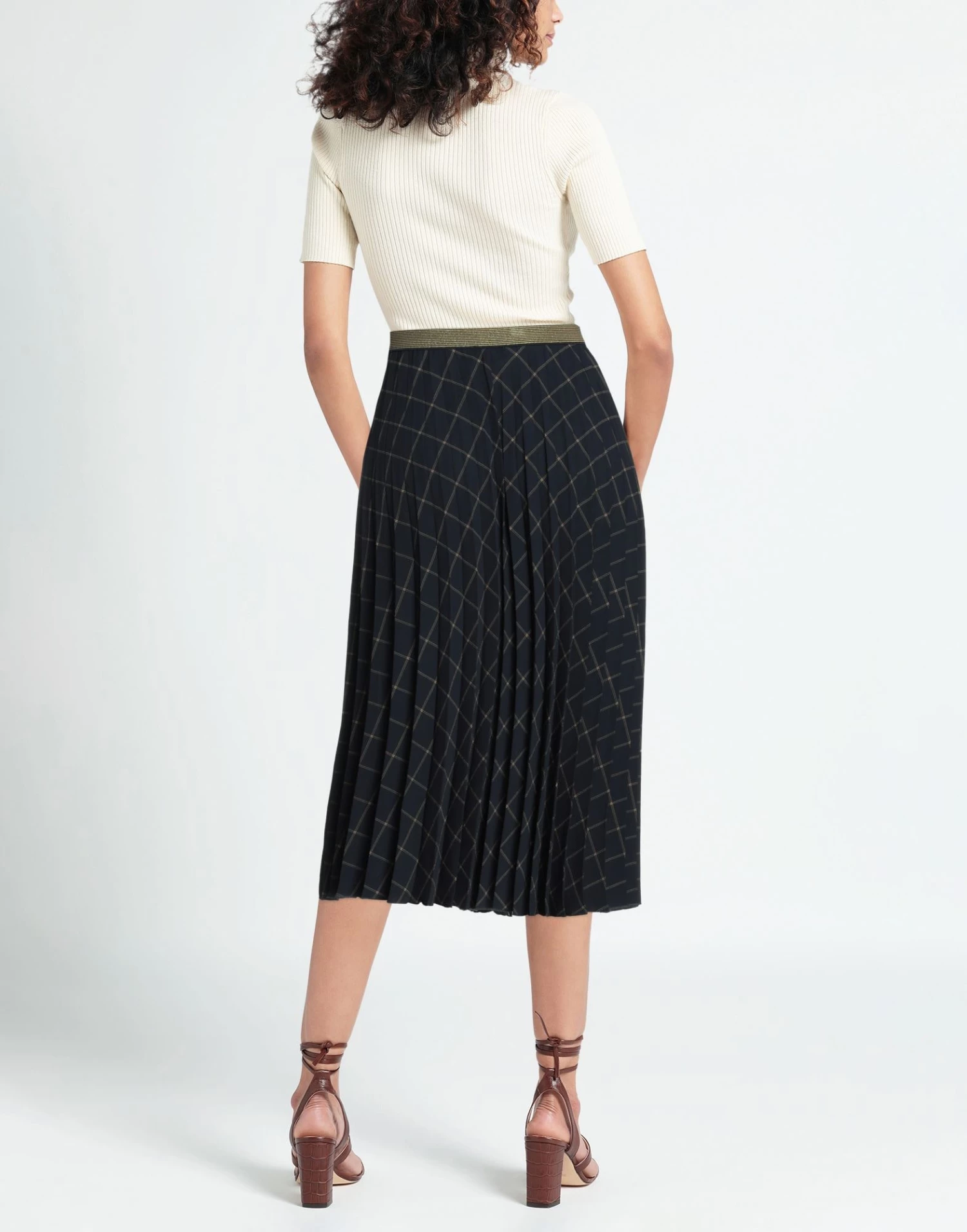 crepe, lamé, no appliqués, geometric design, elasticized waist, unlined, no pockets, stretch