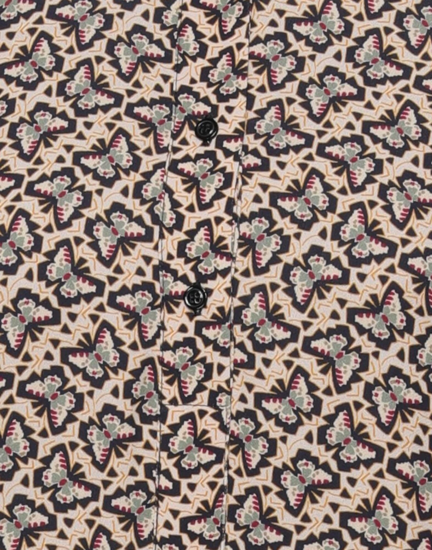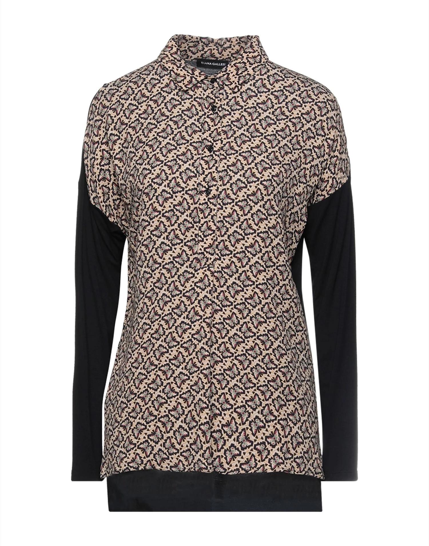 crepe, jersey, no appliqués, multicolor pattern, classic neckline, long sleeves, button closing, no pockets, side slit, stretch
