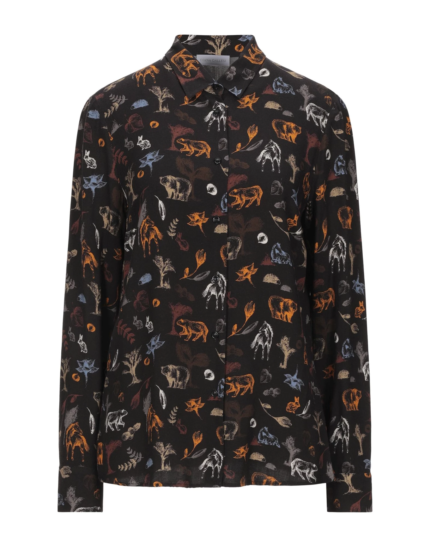 plain weave, no appliqués, multicolor pattern, front closure, button closing, long sleeves, classic neckline, no pockets