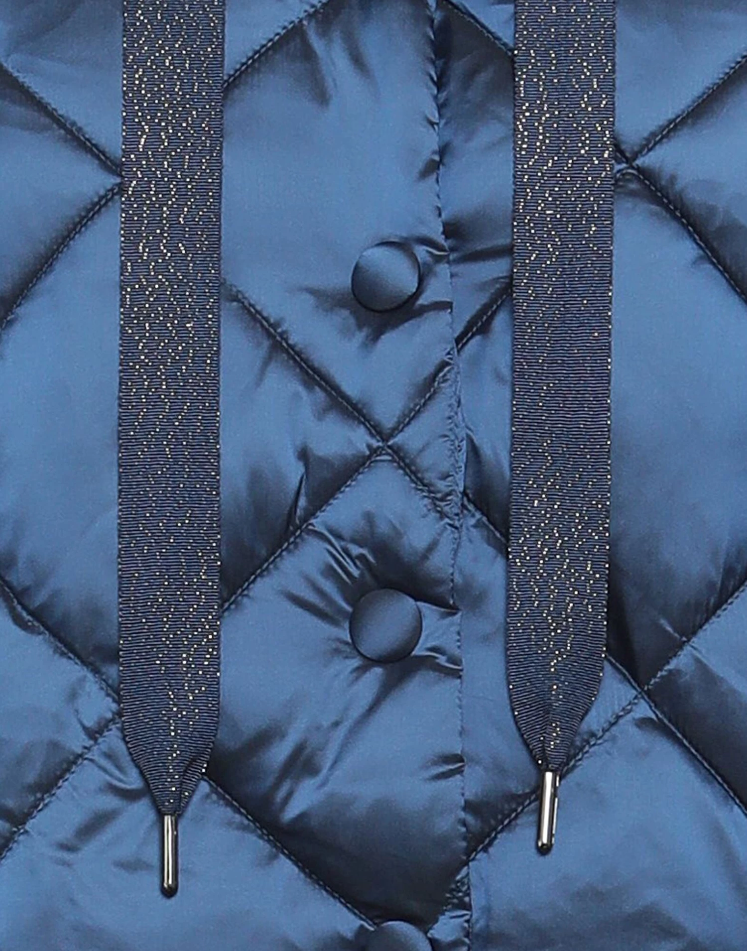 grosgrain, techno fabric, no appliqués, solid color, hooded collar, single-breasted , long sleeves, internal padding, snap buttons fastening, multipockets, pocket with zipper, lamé