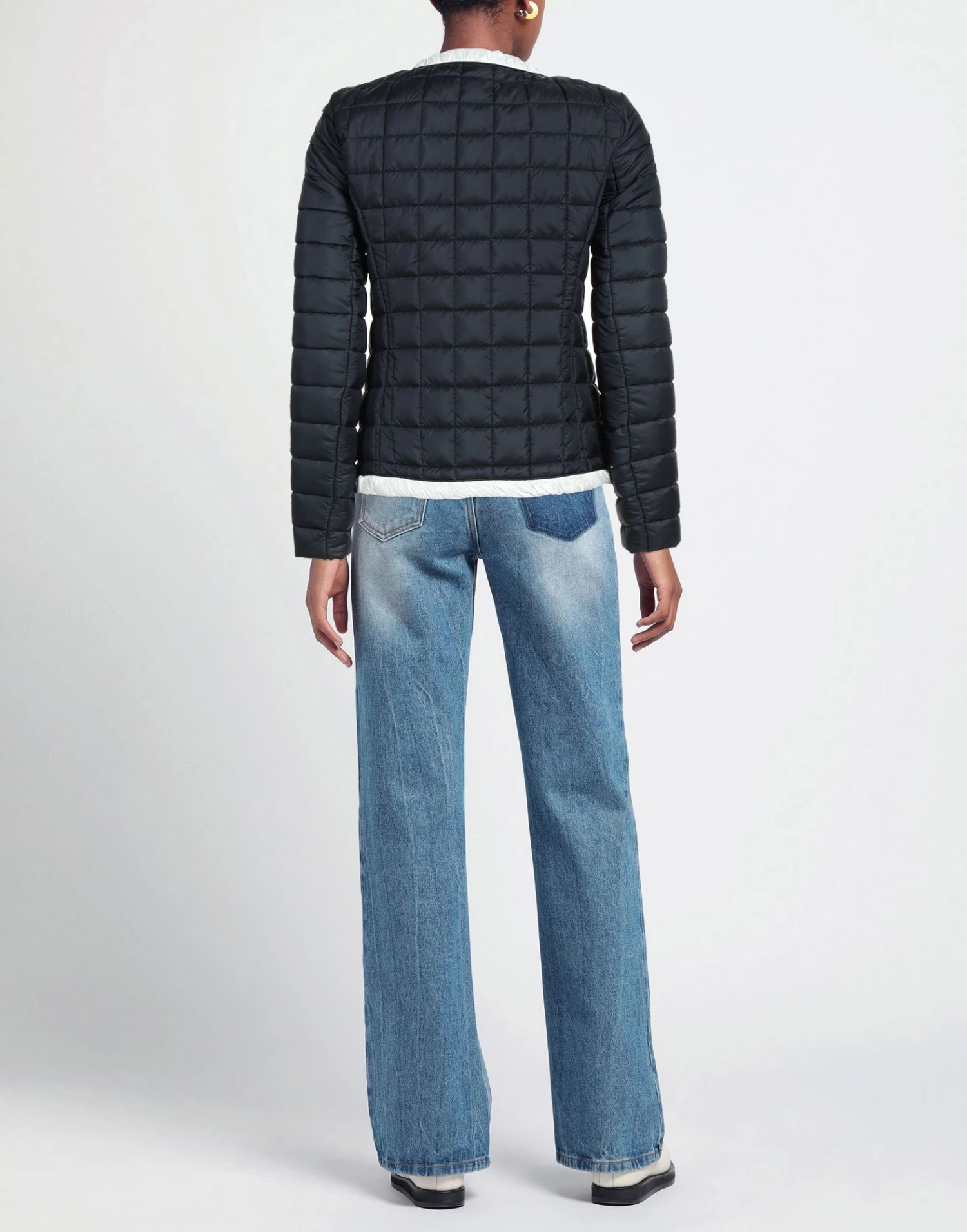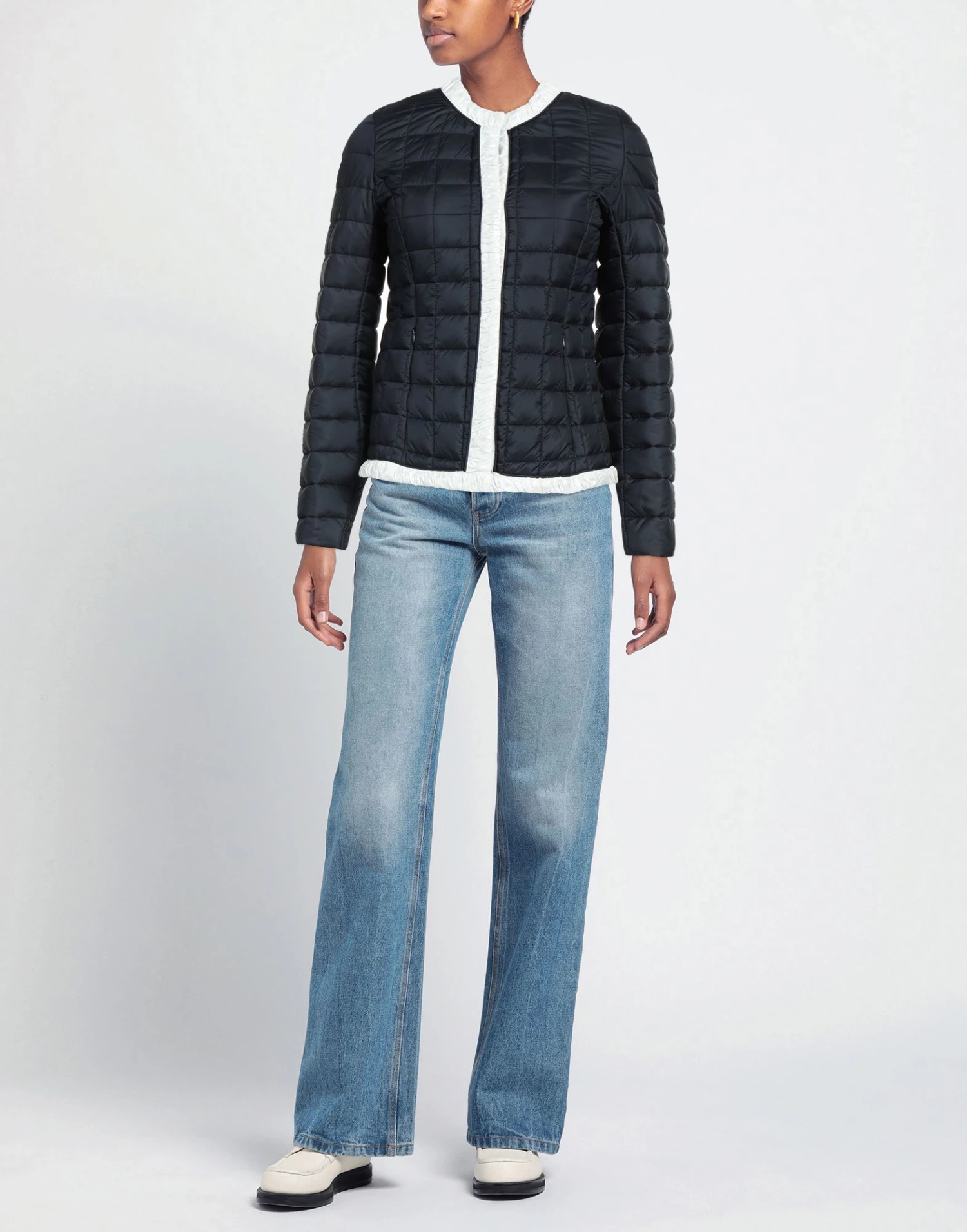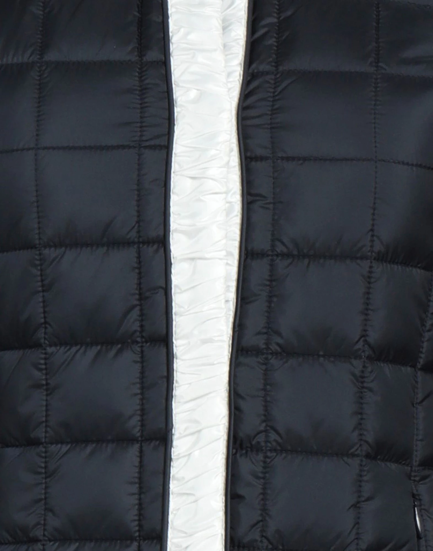 techno fabric, no appliqués, two-tone, quilted, round collar, single-breasted , long sleeves, internal padding, snap buttons fastening, multipockets, pocket with zipper, single-breasted jacket