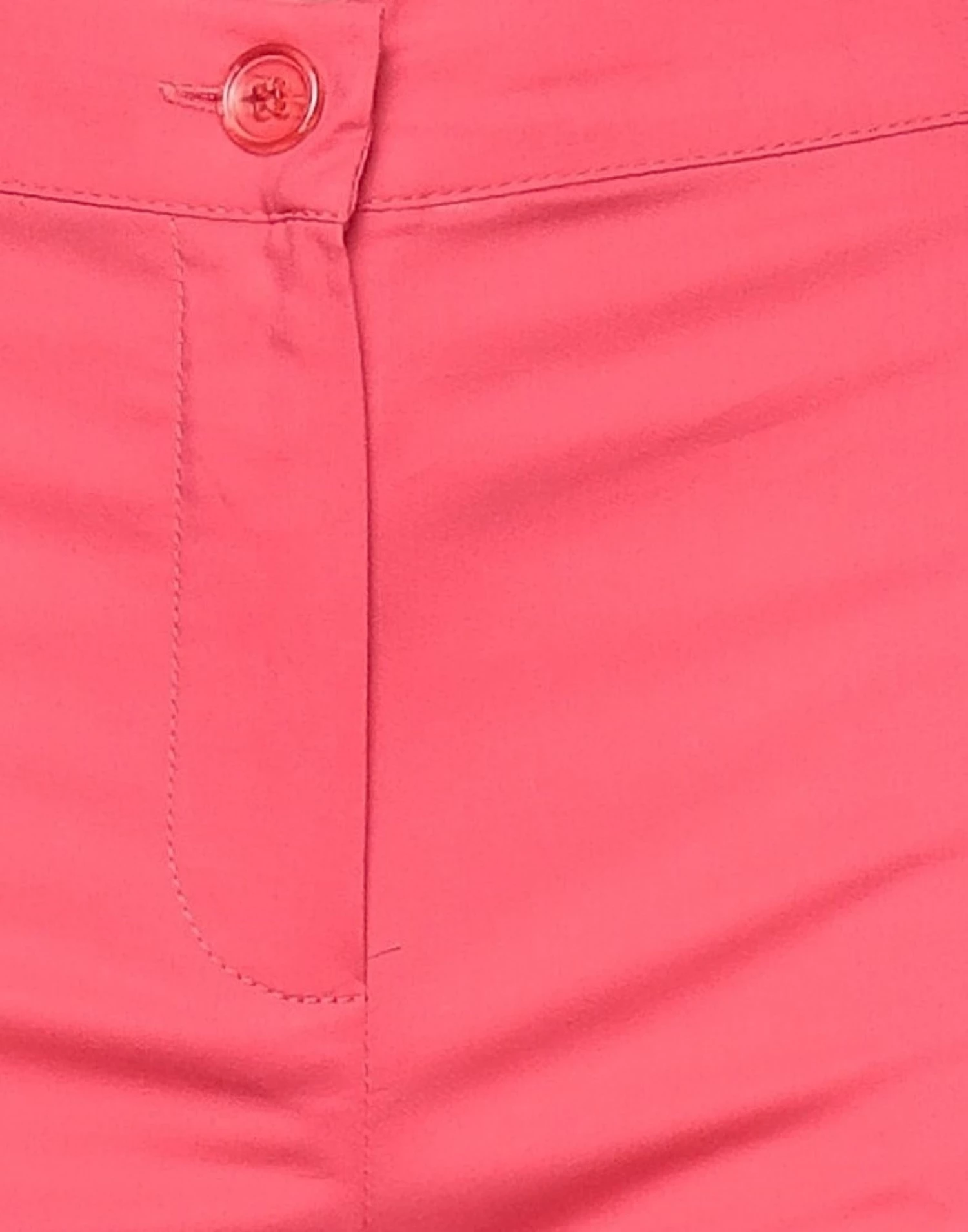 plain weave, no appliqués, solid color, mid rise, 1 button, zipper closure, multipockets, stretch
