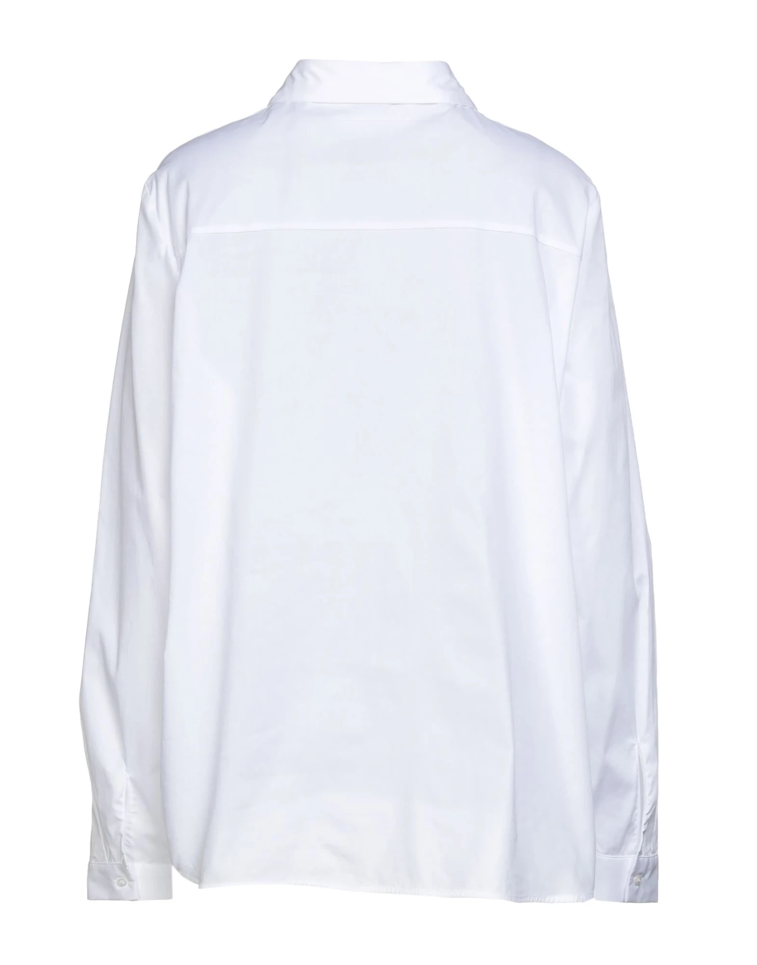 plain weave, ruffles, long sleeves, buttoned cuffs, button closing, classic neckline, solid color, no pockets, stretch