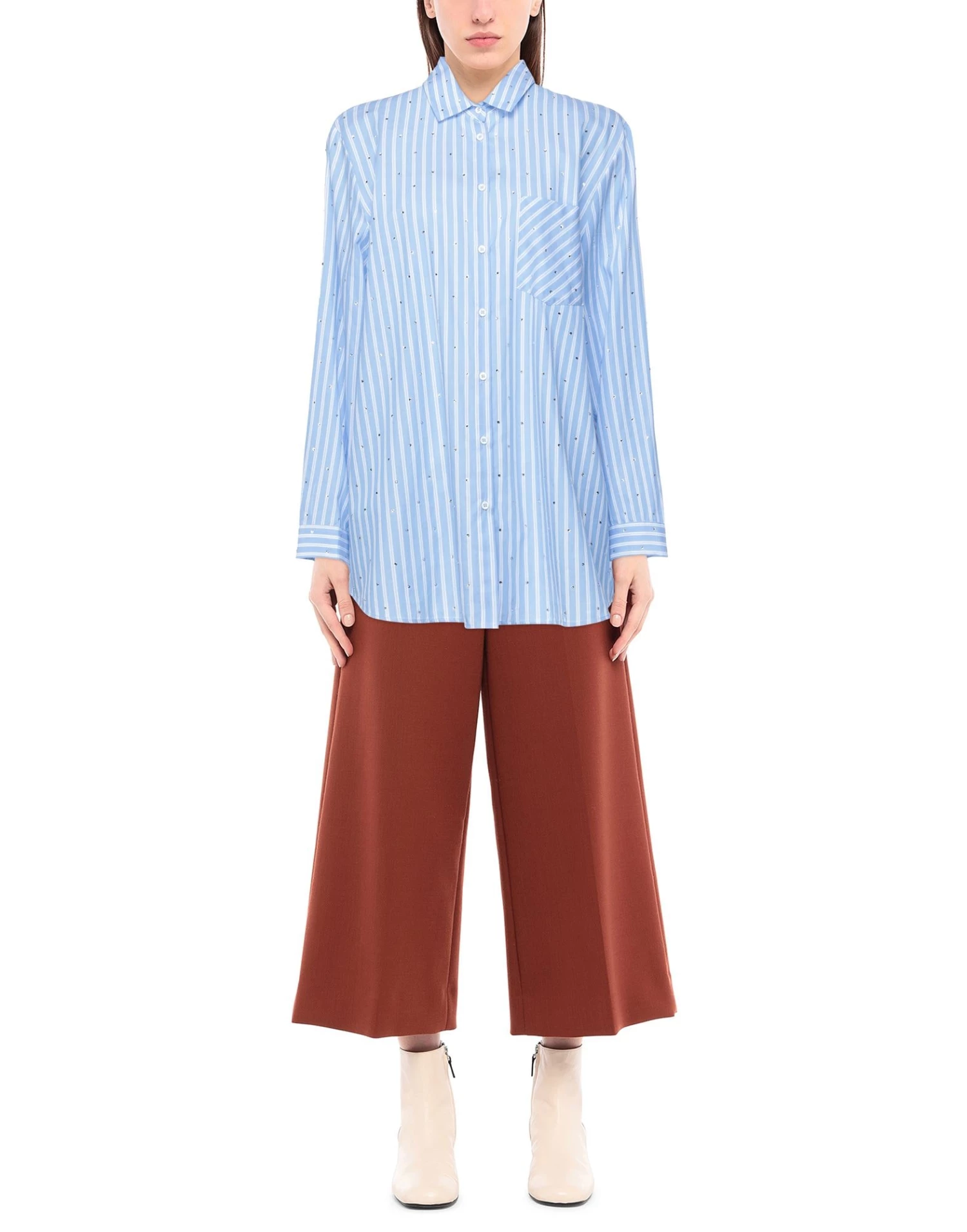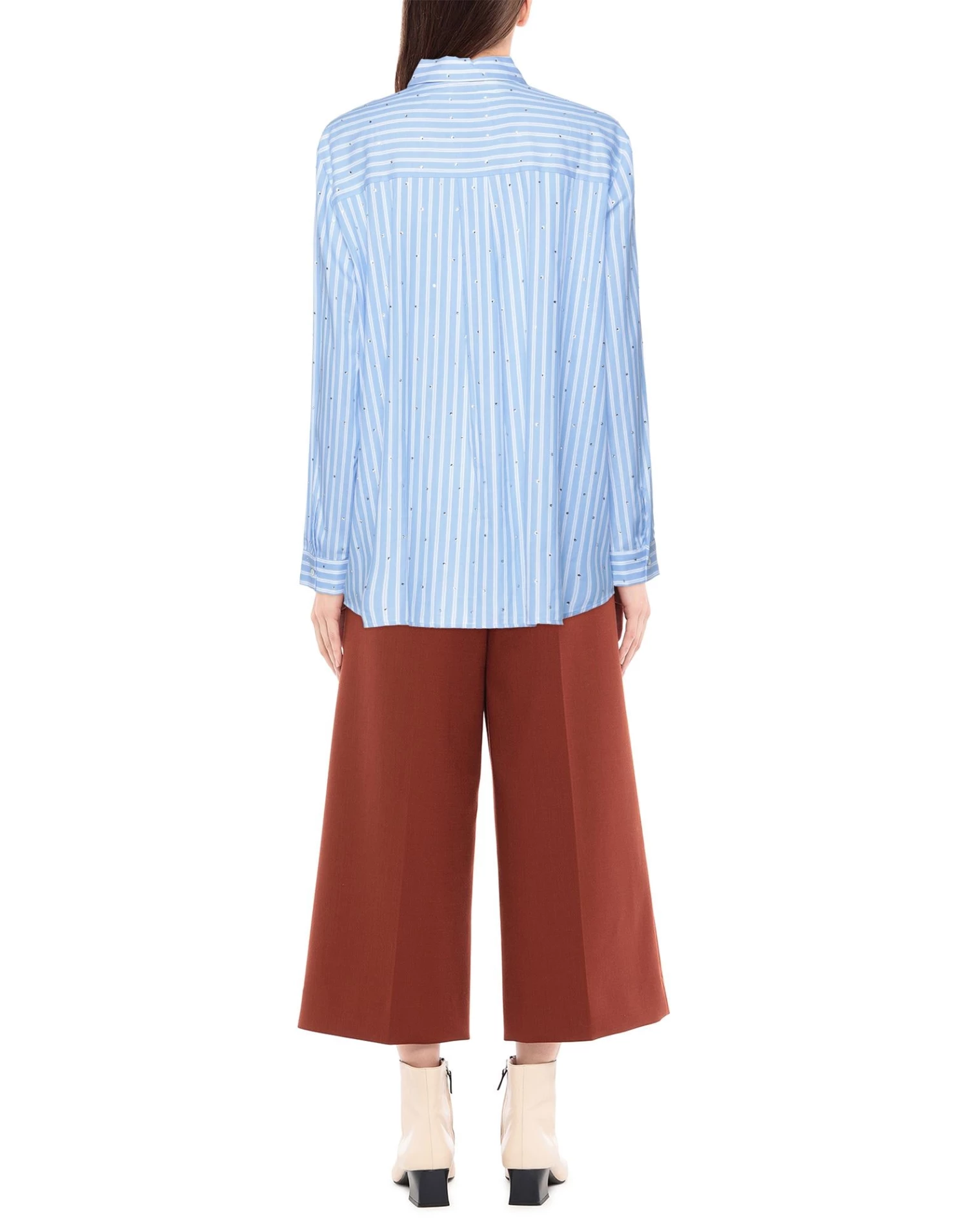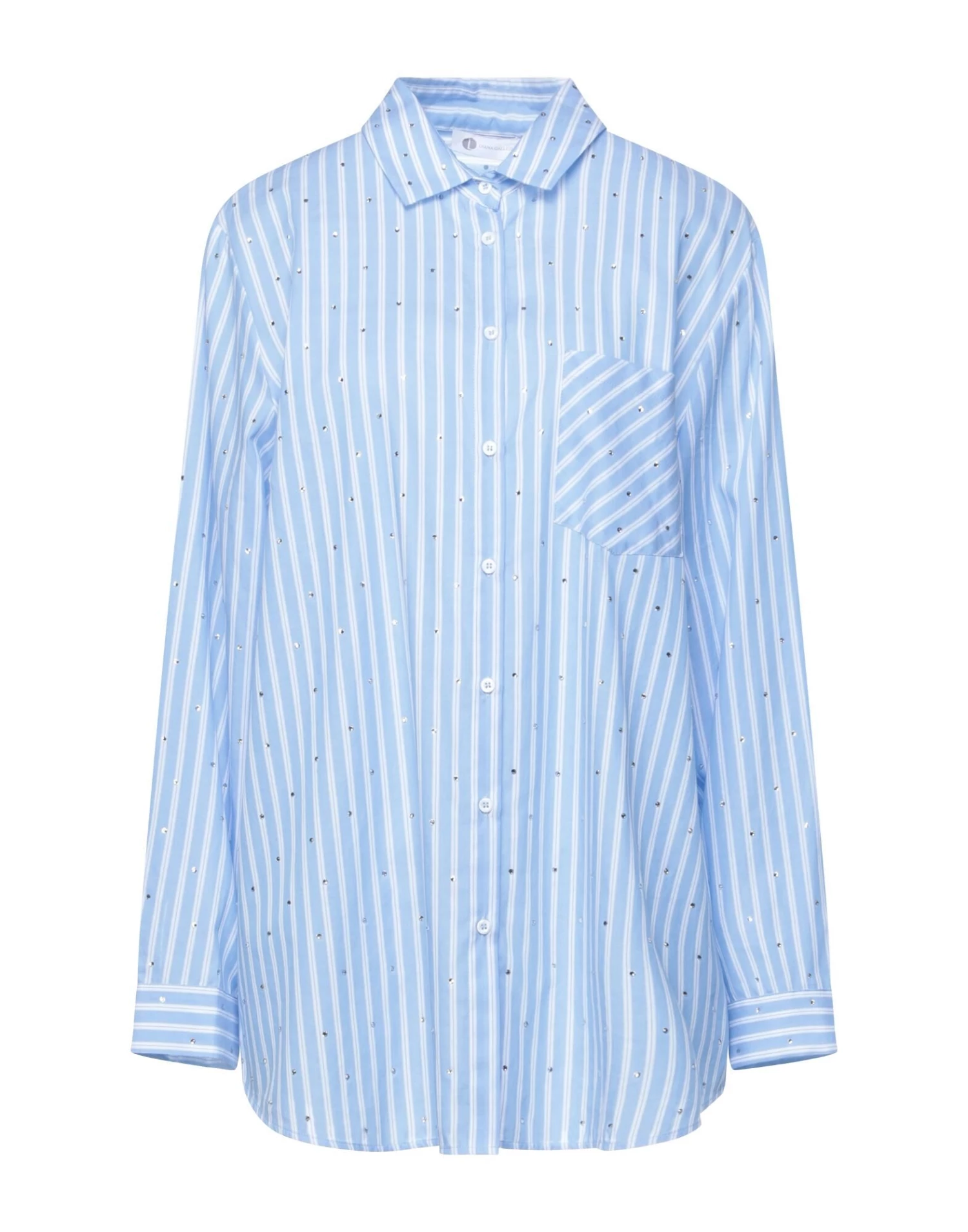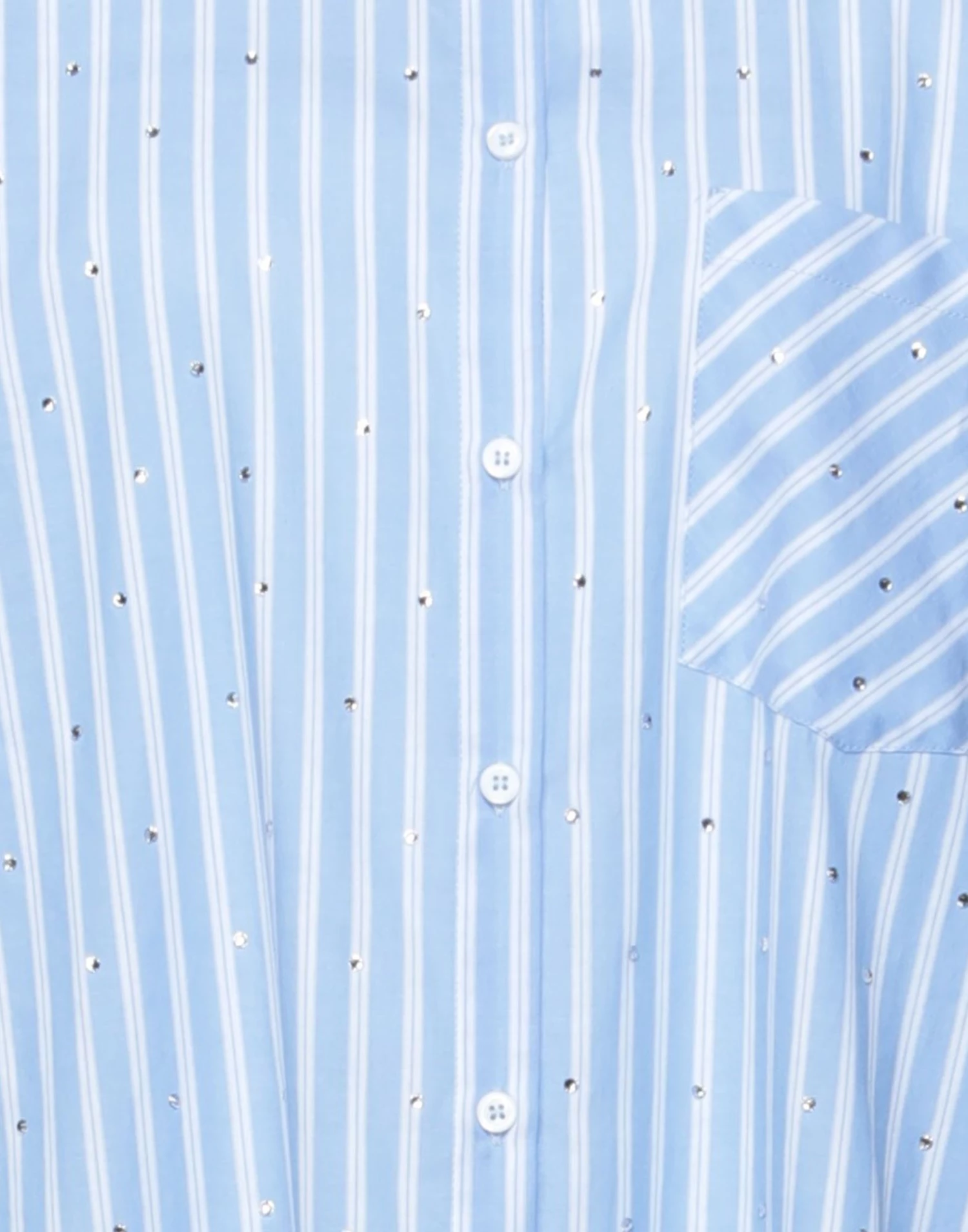 plain weave, rhinestones, stripes, classic neckline, long sleeves, buttoned cuffs, button closing, single chest pocket