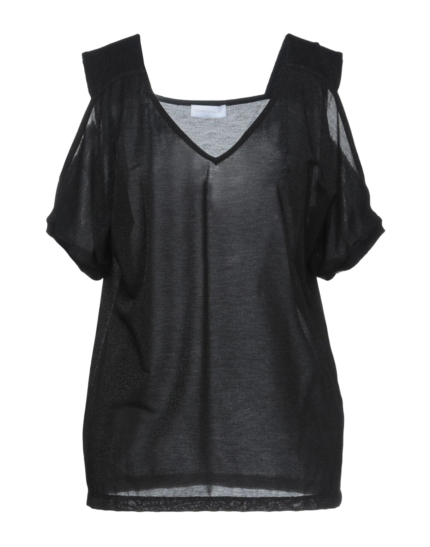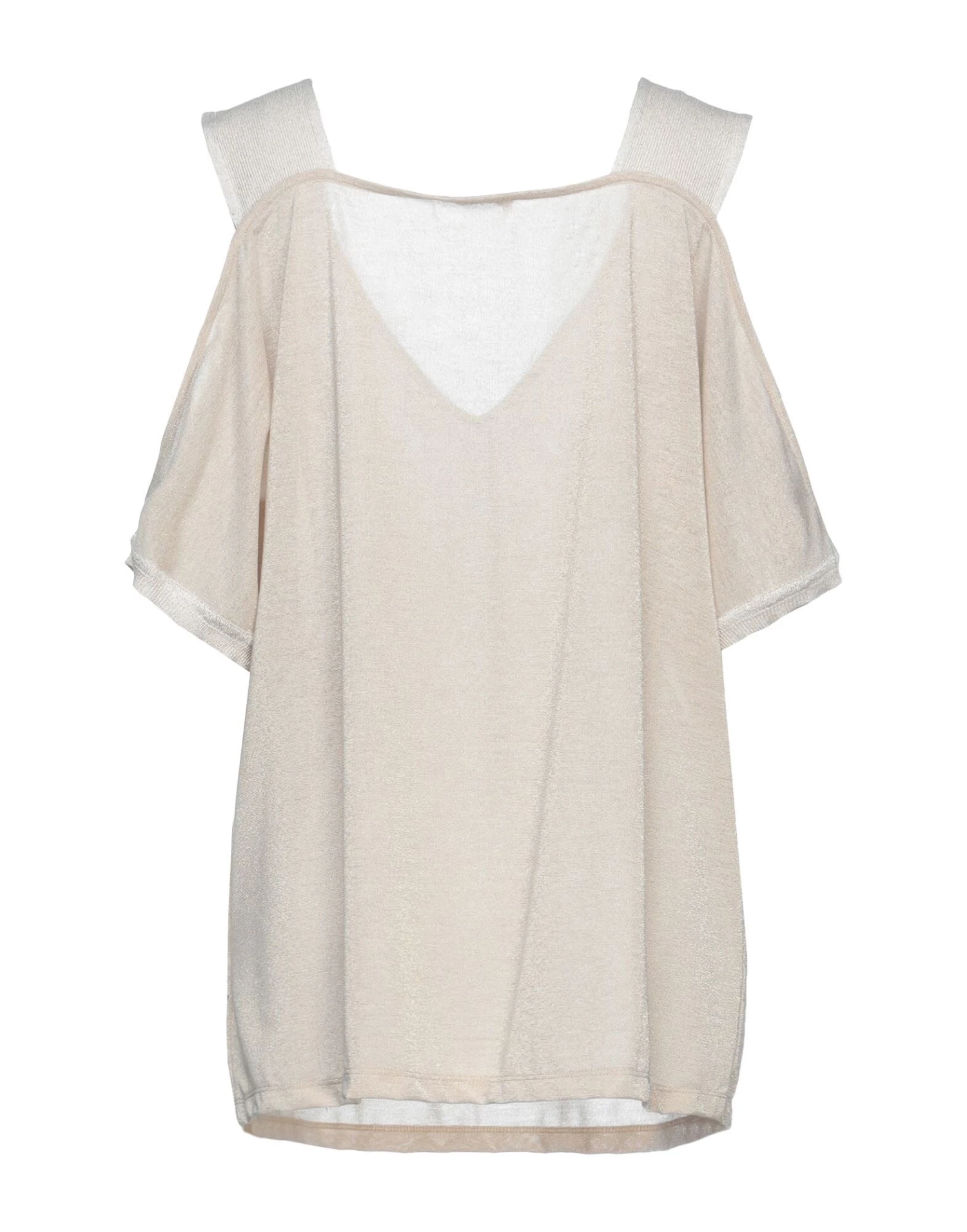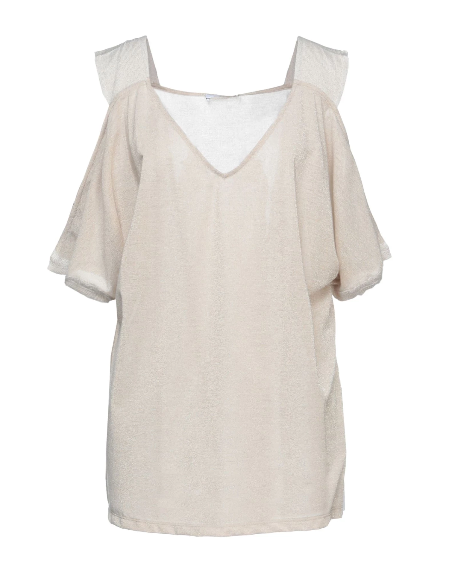knitted, lamé, no appliqués, solid color, v-neck, short sleeves, no pockets, stretch, lightweight knit