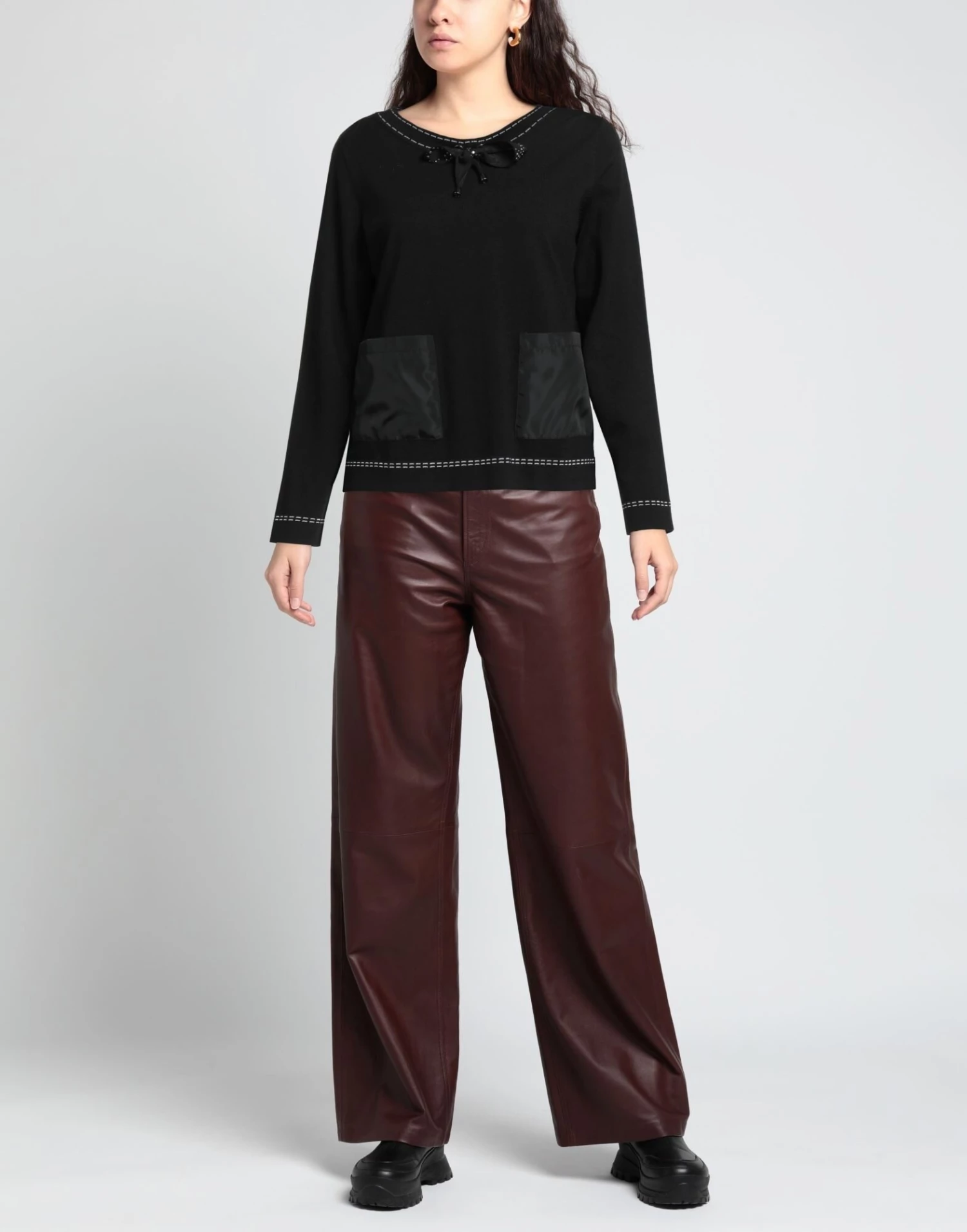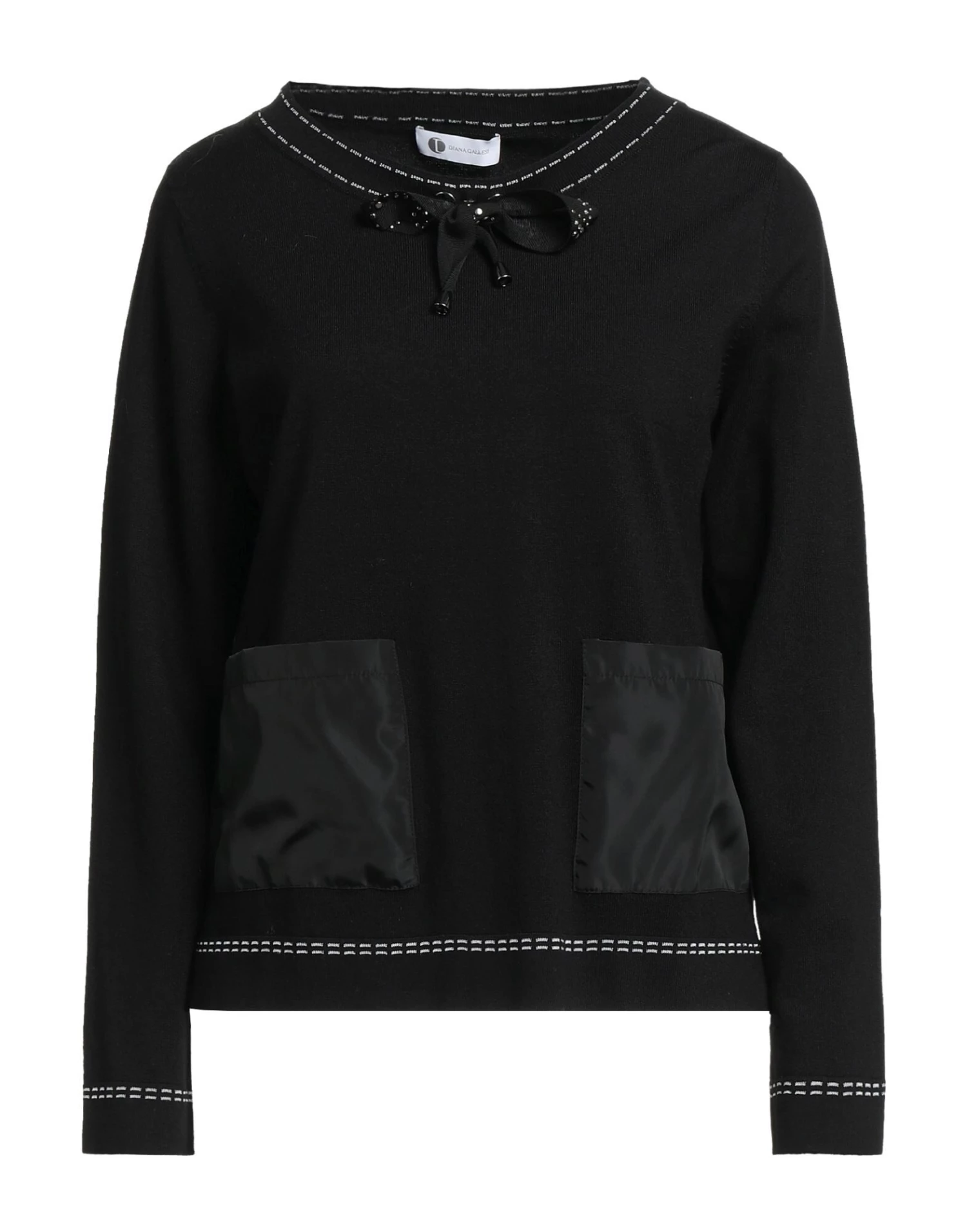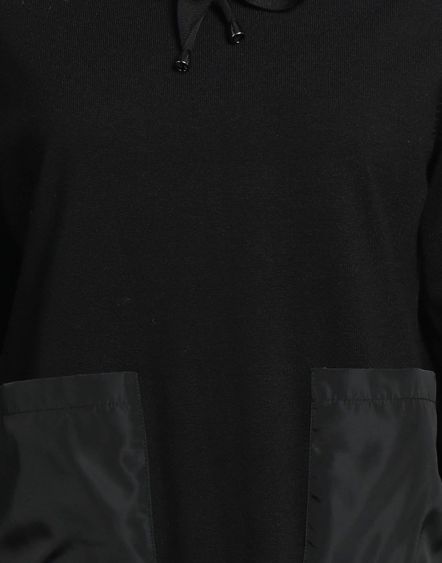 techno fabric, knitted, lightweight knit, rhinestones, laces, two-tone, round collar, long sleeves, multipockets